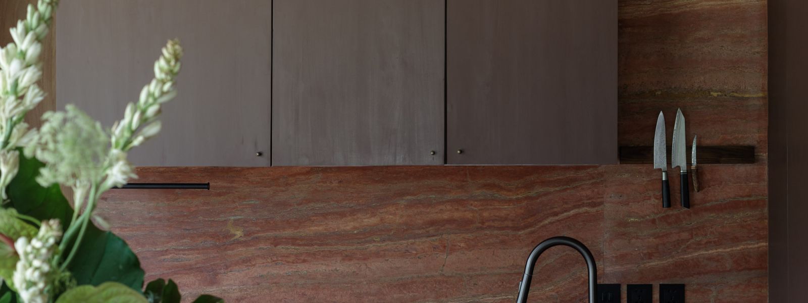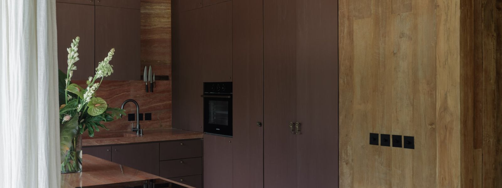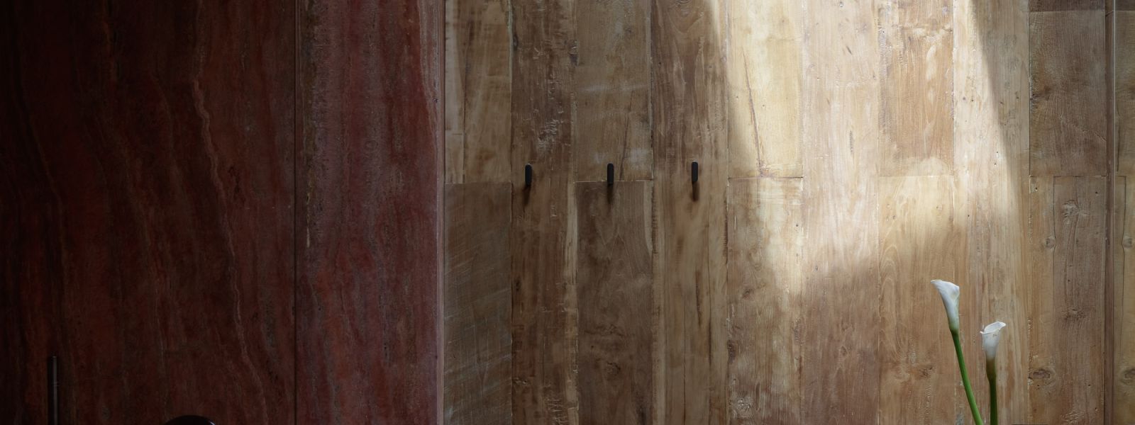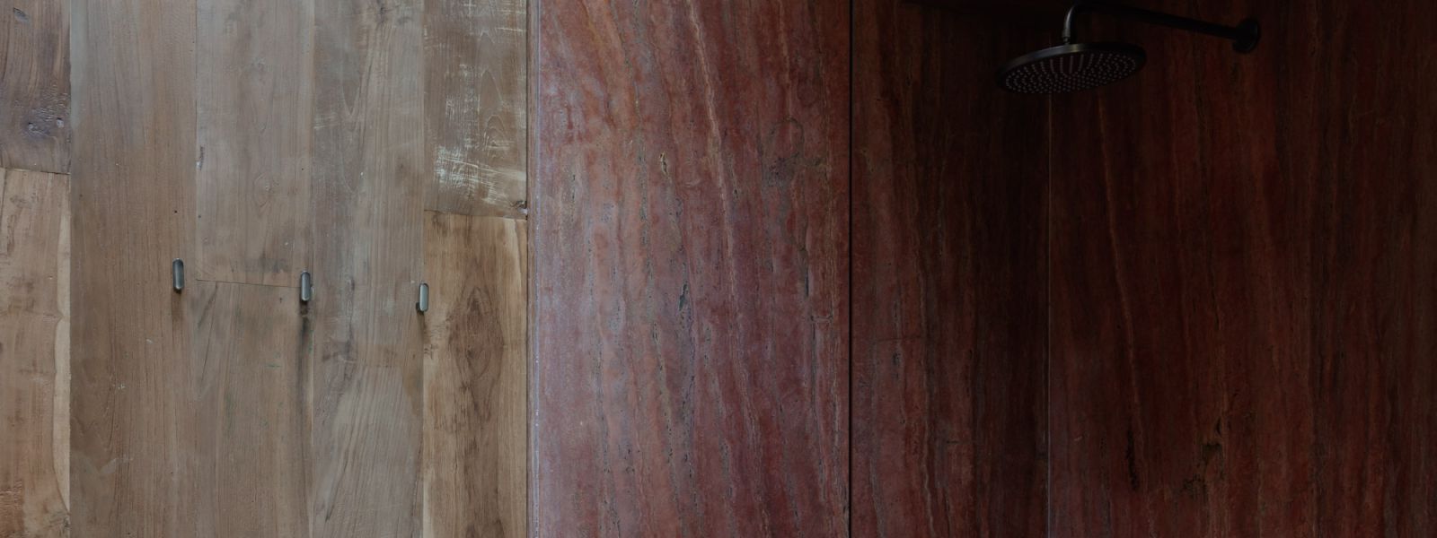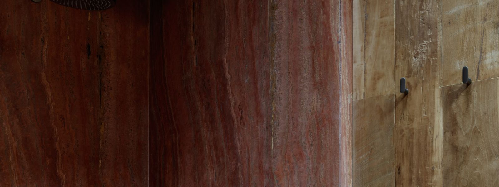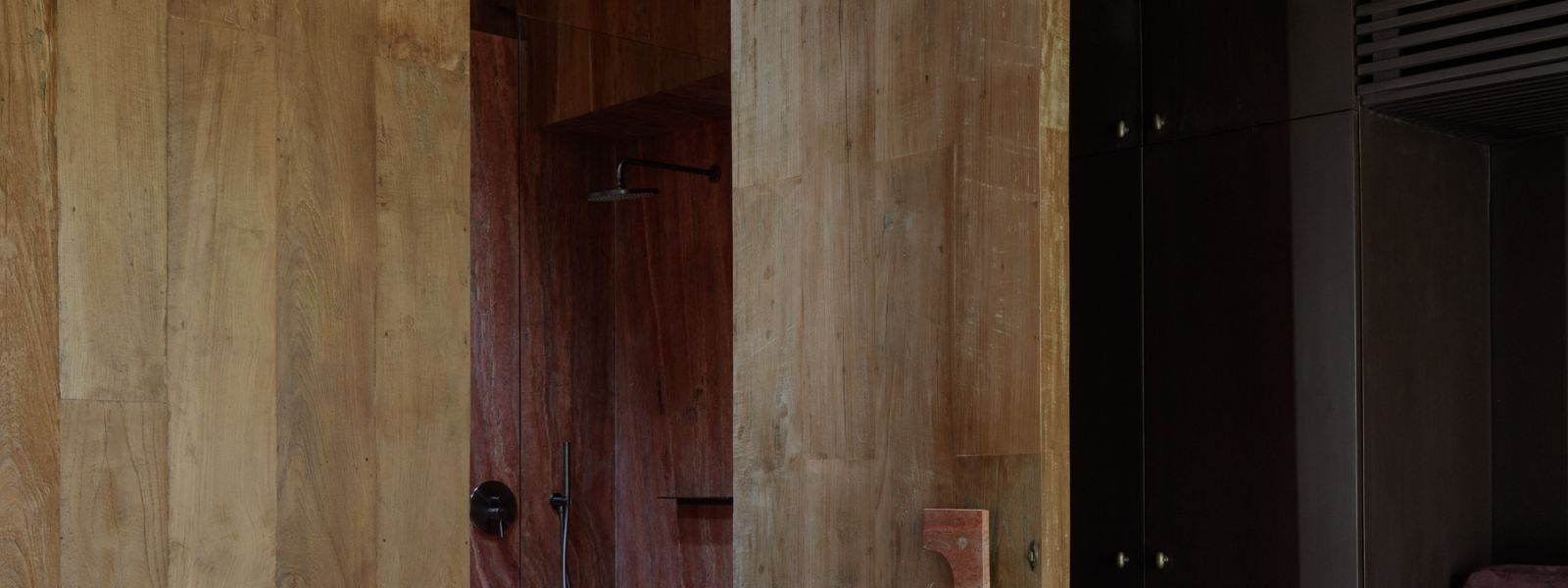 Joglo is a traditional Indonesian house that embodies the philosophy of openness and harmony with nature. Its architecture, with soaring ceilings and a distinctive roofline, symbolizes the unity of the spiritual and the material, while creating a sense of spaciousness and freedom. Inside, we combined rose travertine with the rich texture of aged wood, highlighting their natural beauty and contrast. The floor of local marble brings coolness and refinement, enhancing the sense of solidity and tranquility.