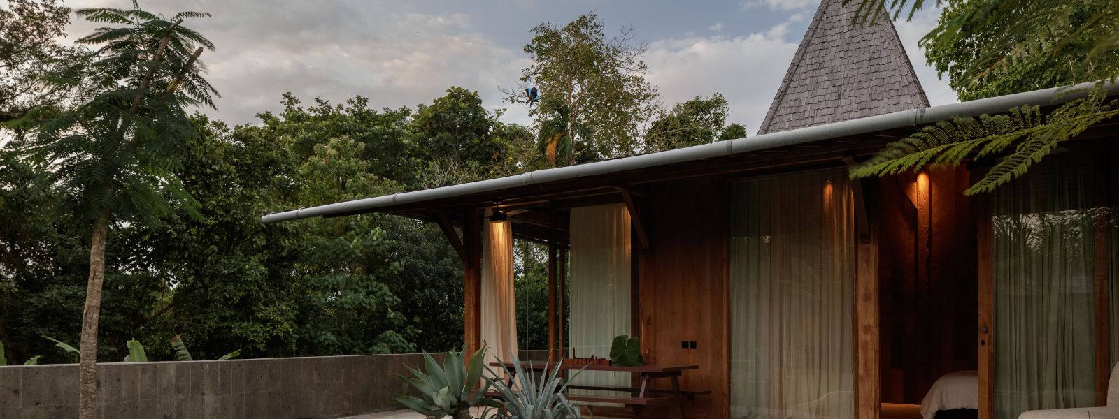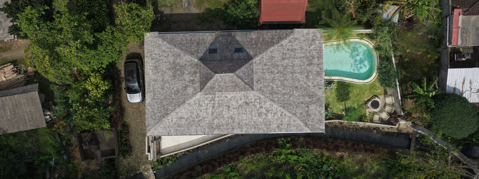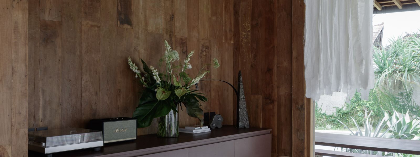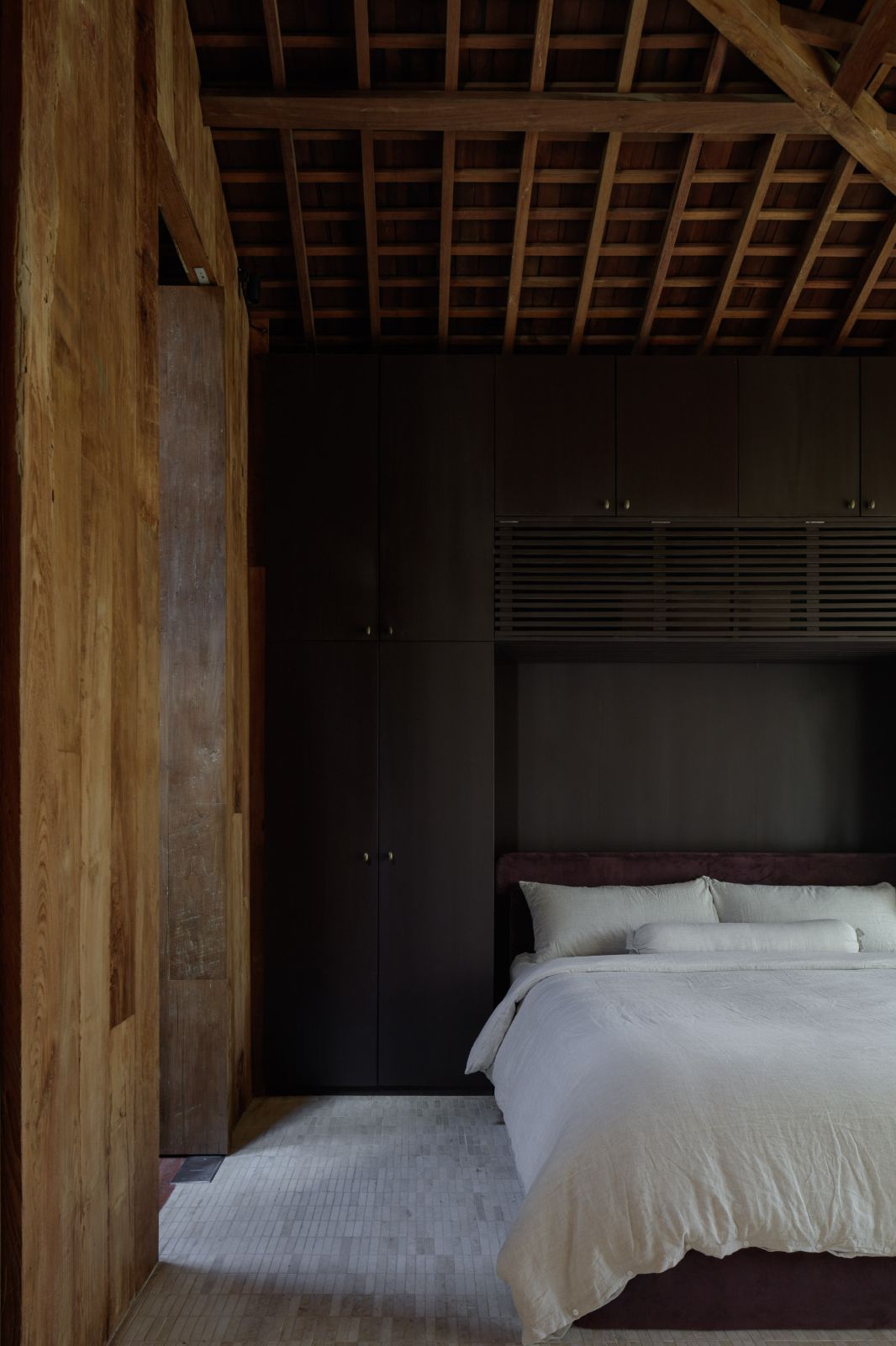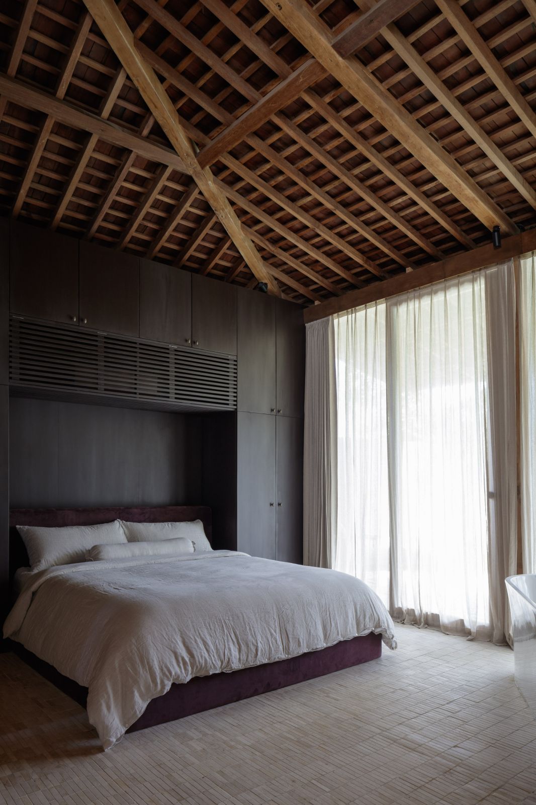 The house is built from recycled wood, carefully collected from several old joglo houses. These houses were dismantled in Java, and the wood was transported to Bali and assembled here. This choice of material is intentional: timber that has stood for decades is naturally protected from termites, exceptionally strong, and carries a noble, time-worn texture. It holds within it the history and energy of the past, giving the house depth and character.