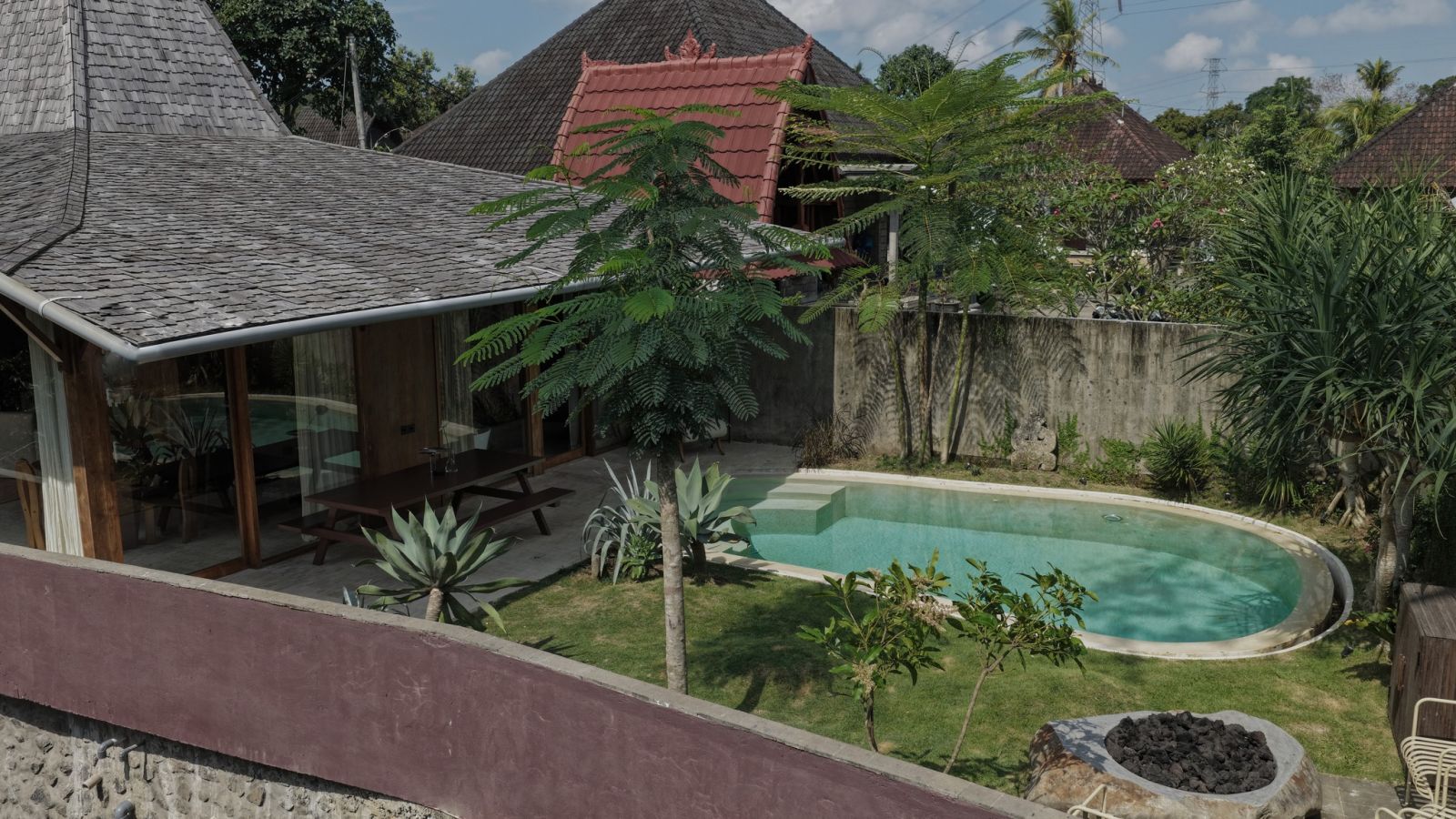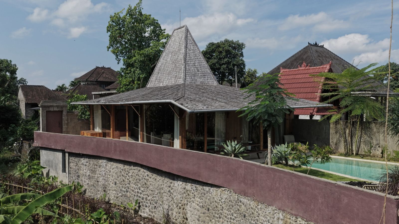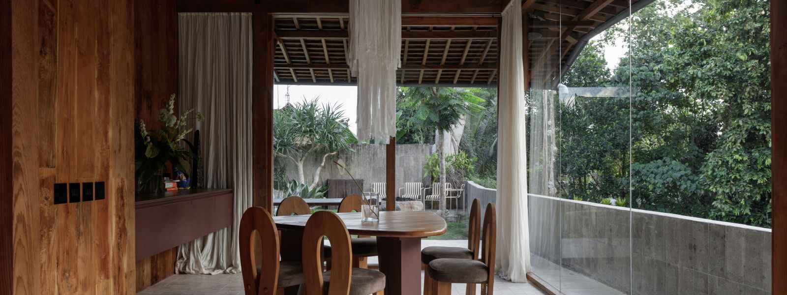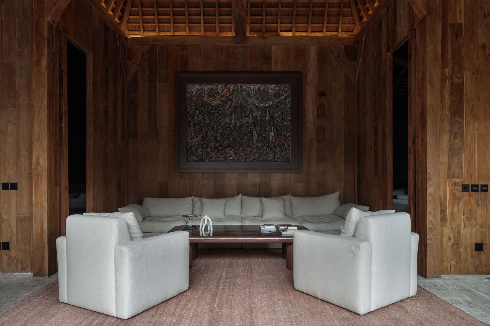 The house is built from recycled wood, carefully collected from several old joglo houses. These houses were dismantled in Java, and the wood was transported to Bali and assembled here. This choice of material is intentional: timber that has stood for decades is naturally protected from termites, exceptionally strong, and carries a noble, time-worn texture. It holds within it the history and energy of the past, giving the house depth and character.