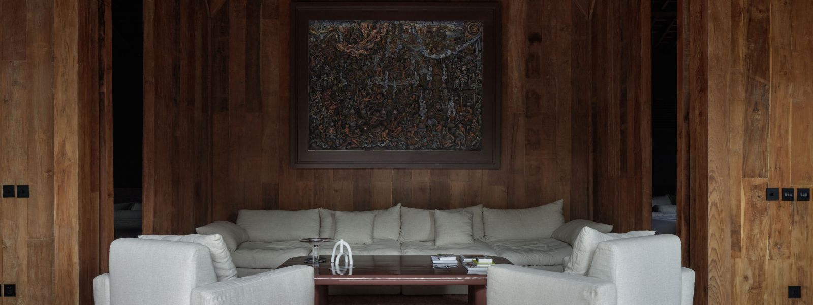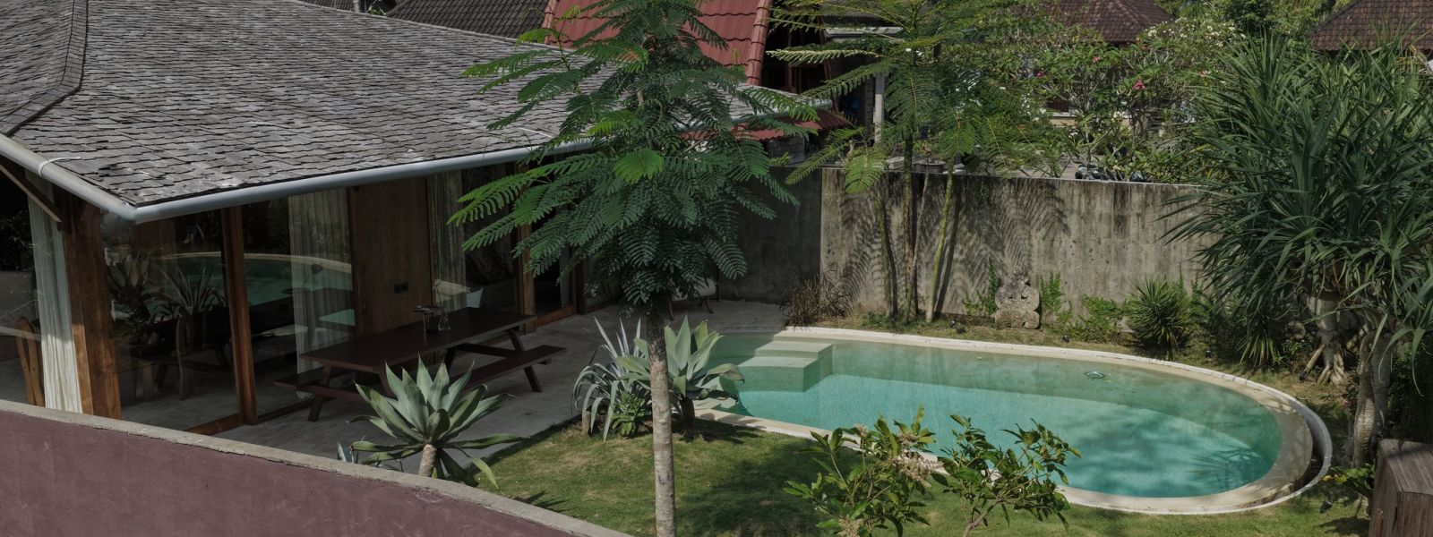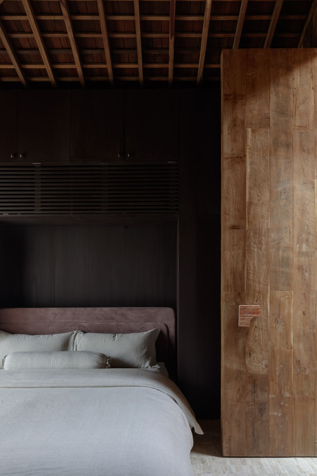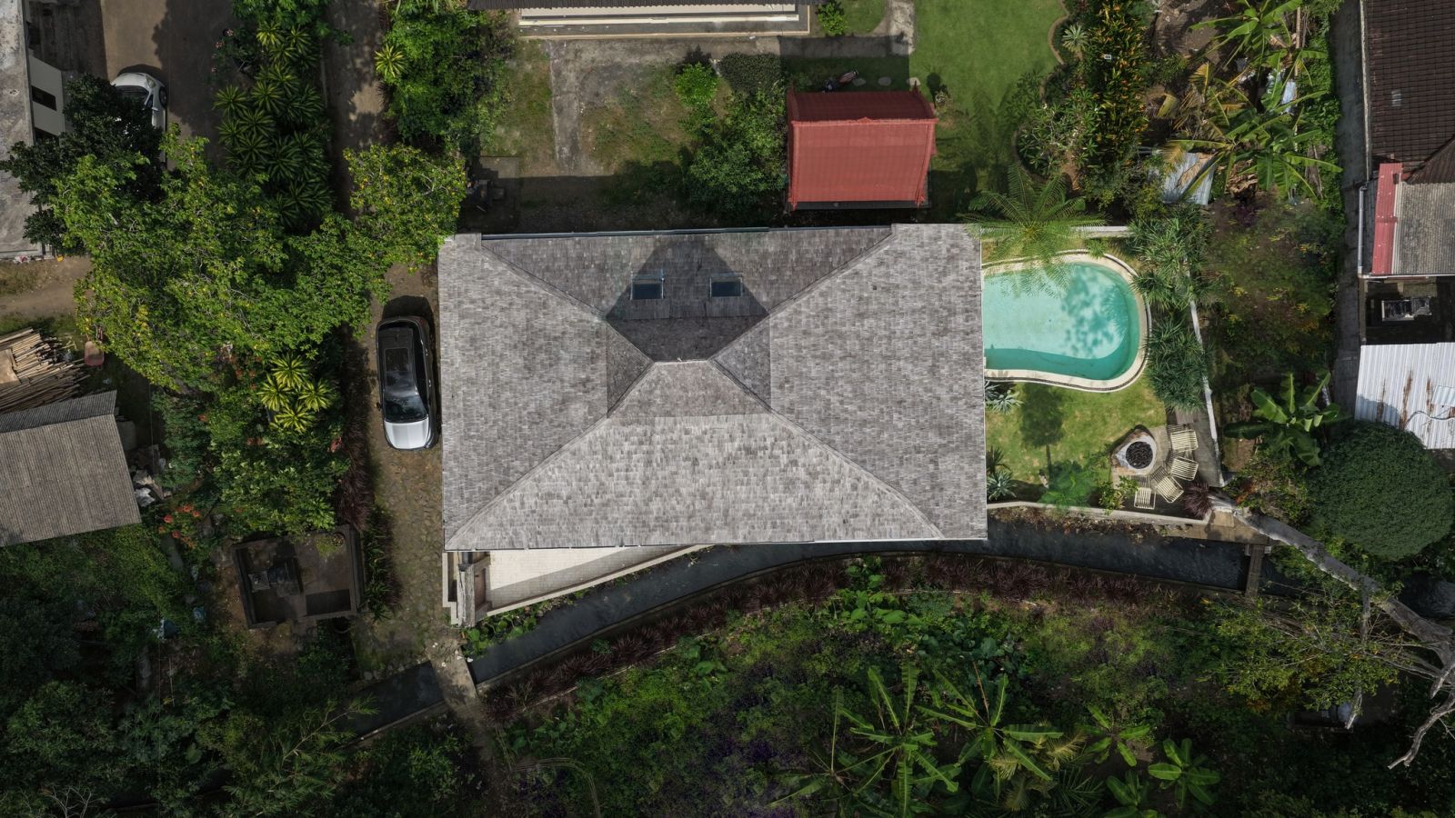 The house is built from recycled wood, carefully collected from several old joglo houses. These houses were dismantled in Java, and the wood was transported to Bali and assembled here. This choice of material is intentional: timber that has stood for decades is naturally protected from termites, exceptionally strong, and carries a noble, time-worn texture. It holds within it the history and energy of the past, giving the house depth and character.