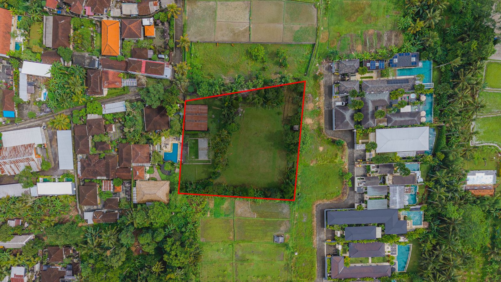 The land is ideal for the development of a single luxury villa or multiple residential homes, catering to buyers seeking a quiet residential setting in one of Ubud’s established neighborhoods. Its size, shape, and zoning provide flexibility for various residential development concepts.