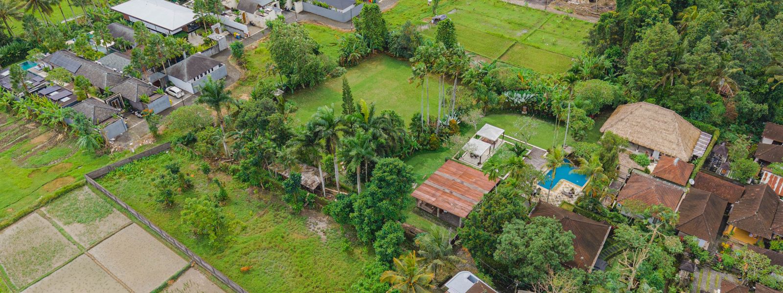 The plot is ready to build and benefits from a peaceful environment, surrounded by mature trees along all boundaries. It is accessed via a shared access road and the immediate surroundings consist of one existing villa and rice fields, offering privacy and an open outlook while maintaining convenient access to Ubud’s amenities.