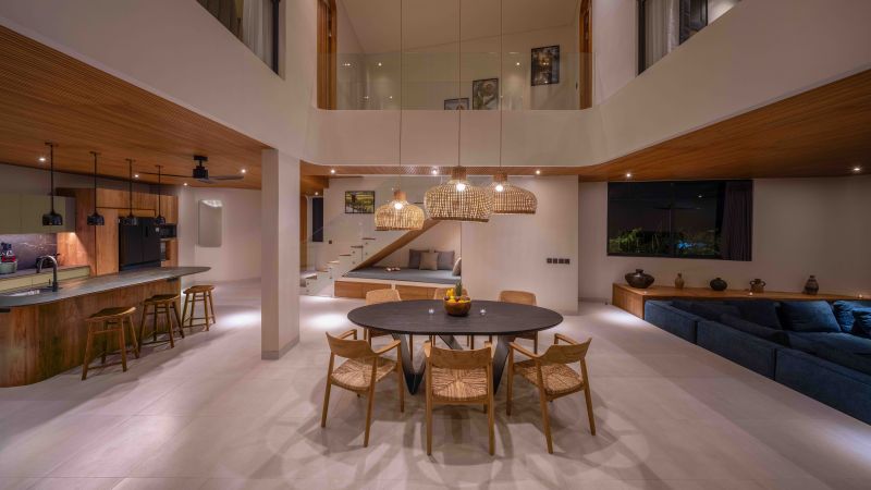Furthermore, to complement your daily activities and those of your family, the fully equipped kitchen features Electrolux appliances, including a coffee maker, blender, slow juicer, and toaster. In the living room, a 65-inch OLED TV is perfect for relaxing.