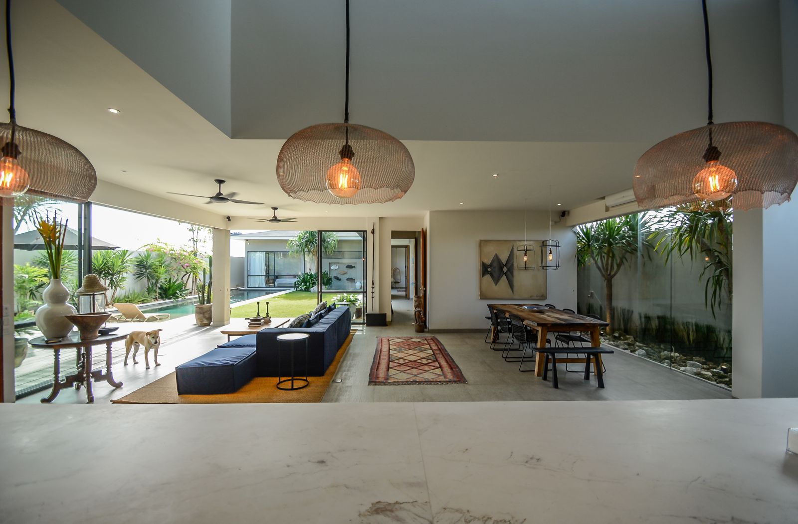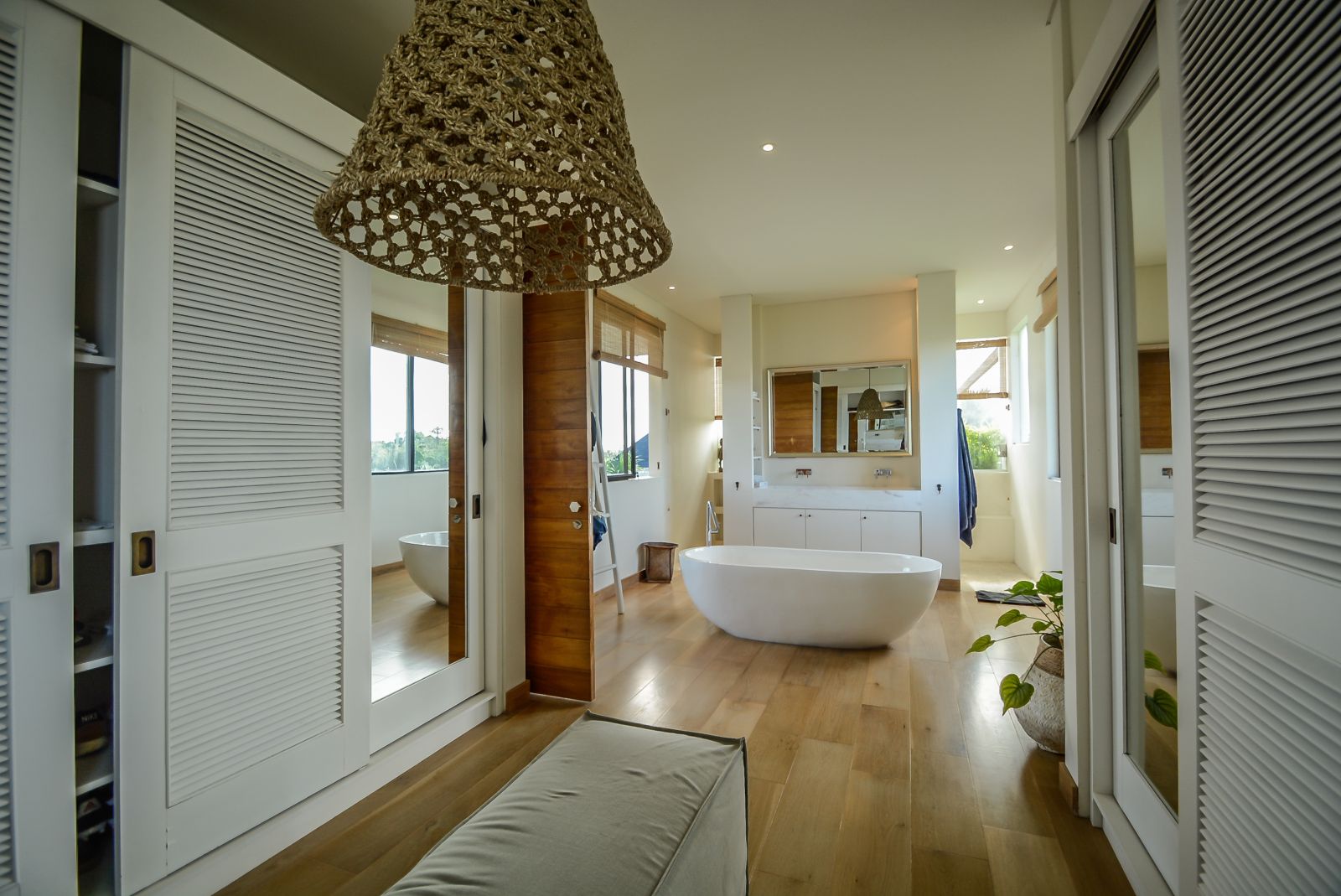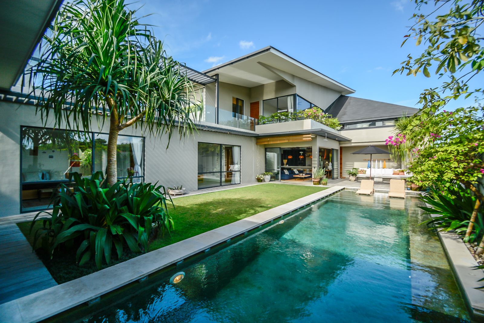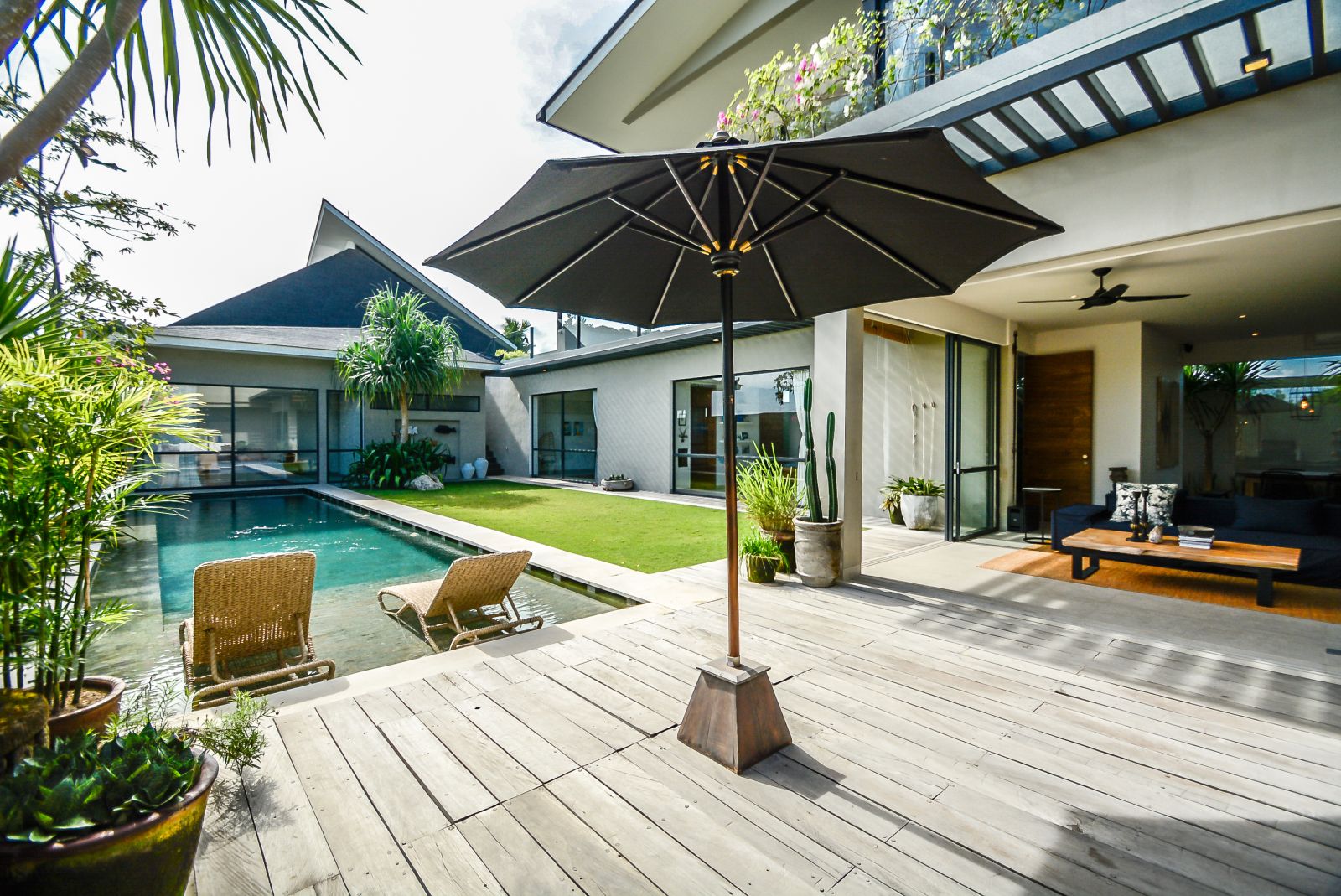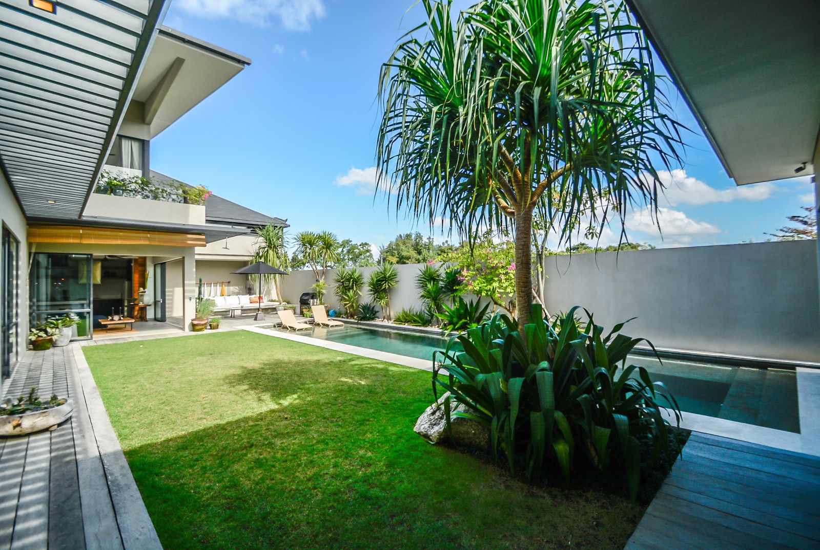 The villa’s grand proportions and dreamy design make it a true sanctuary, perfect for both relaxing and entertaining. A spacious swimming pool sits at the heart of the home, surrounded by lush greenery and thoughtfully designed social spaces.
