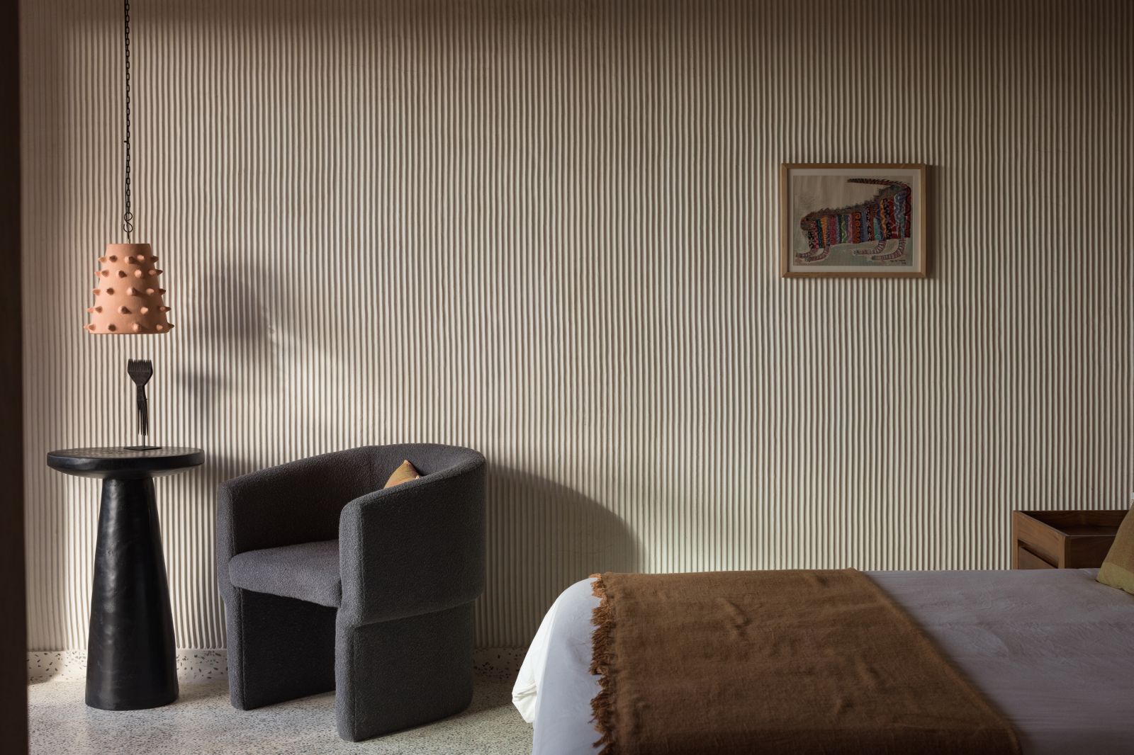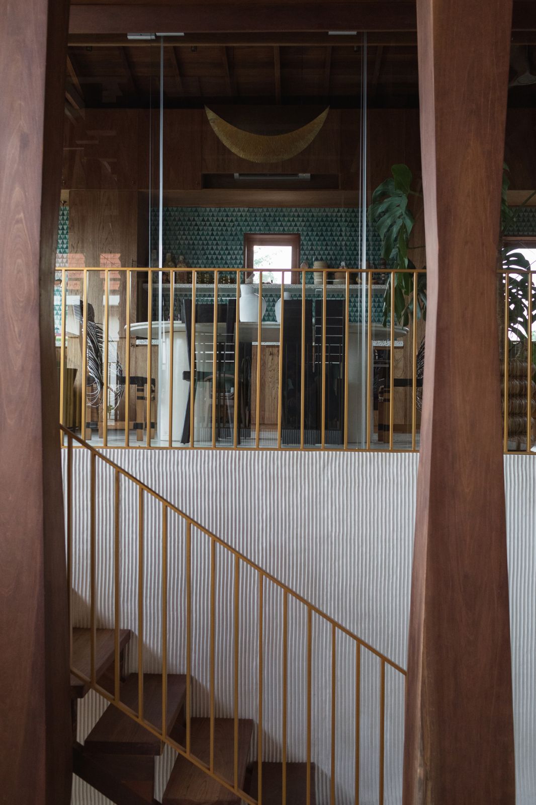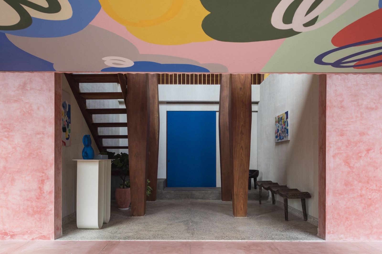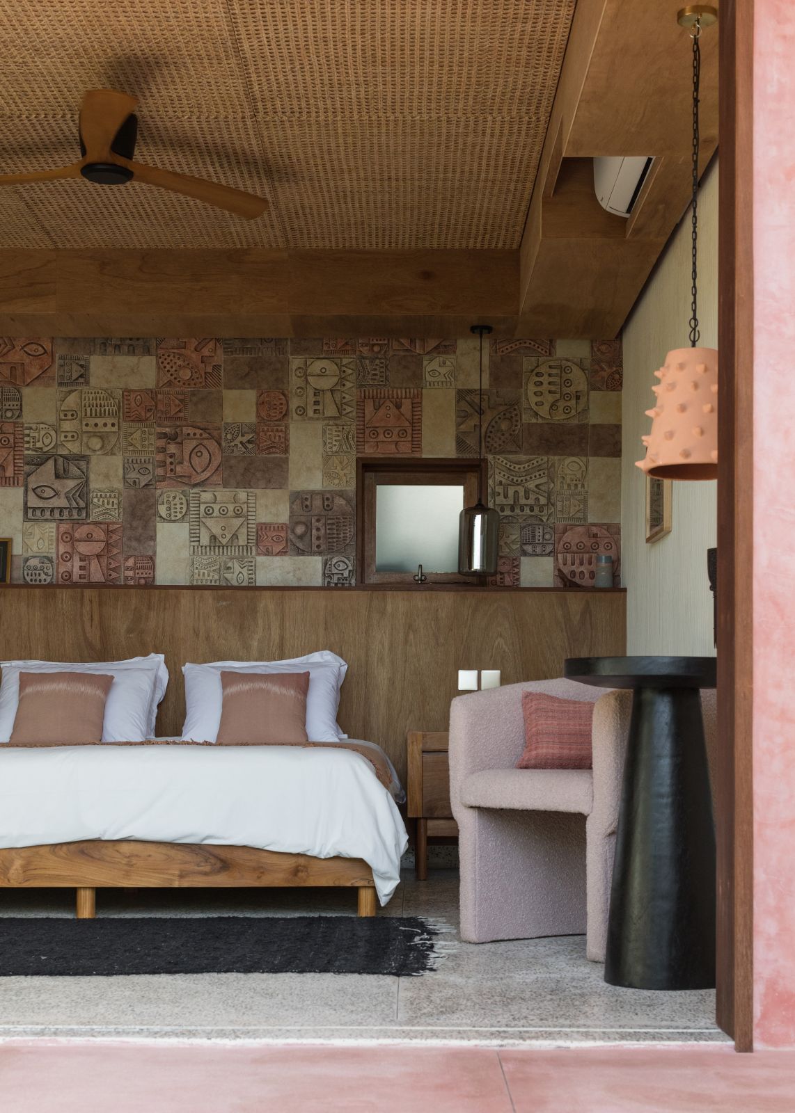 Art and craft are woven throughout, from a hand-painted ceiling mural by Los Angeles artist Ryan Tyler Martinez to handcrafted Balinese tiles by Philip Lakeman. Layered textures, playful forms, and curated artworks bring warmth and personality to the timber structure, resulting in a design-forward sanctuary defined by originality, soul, and architectural integrity in Bali.