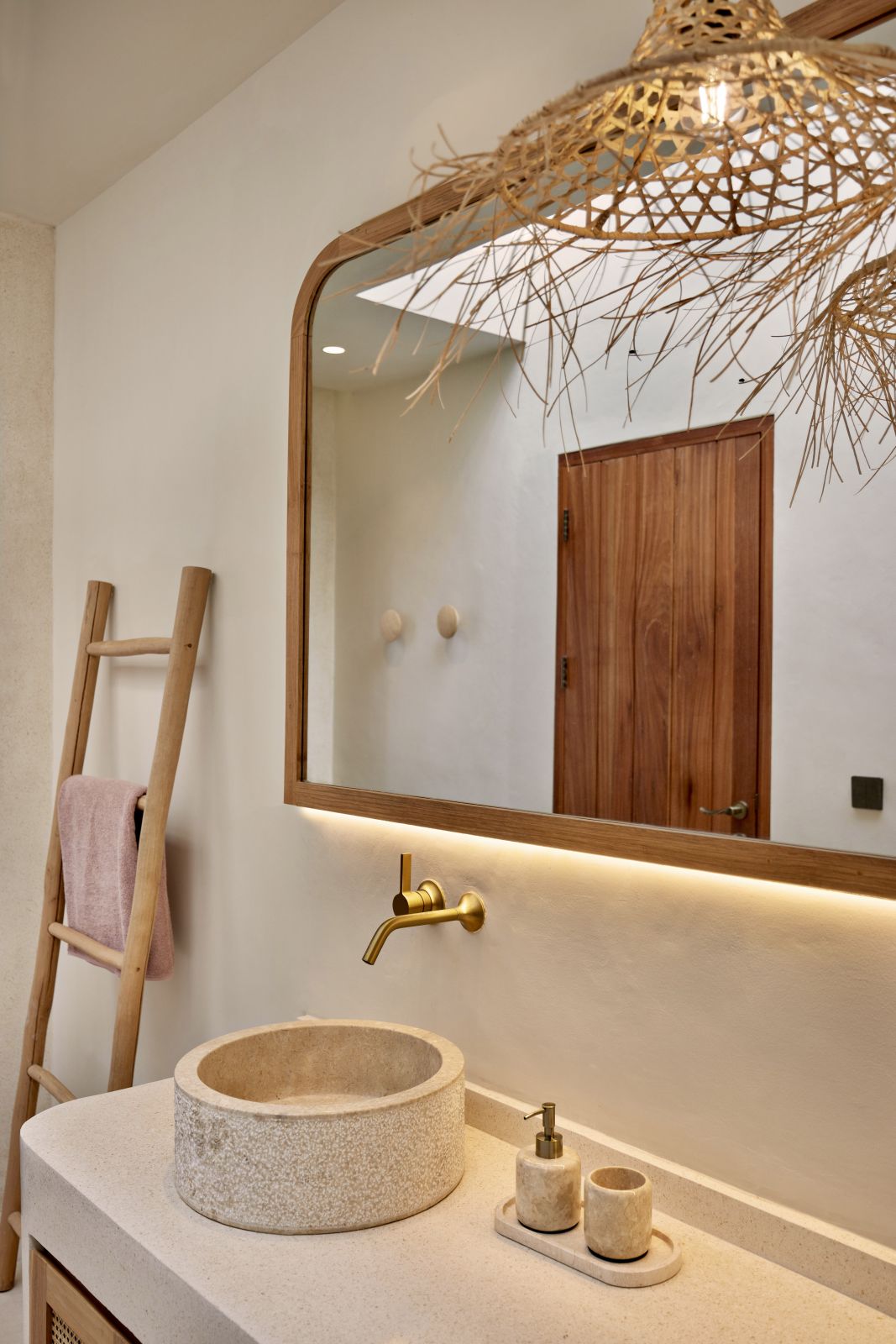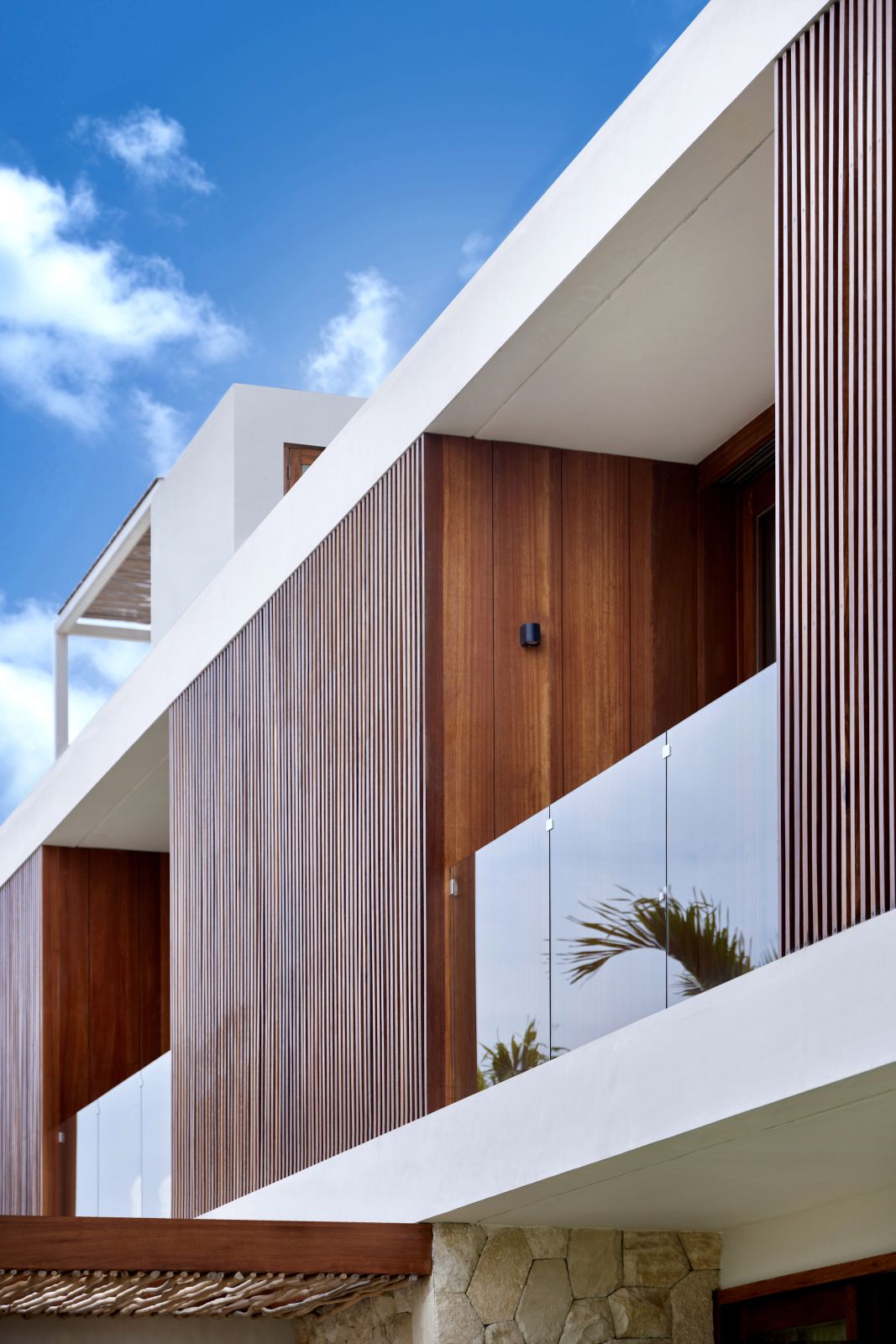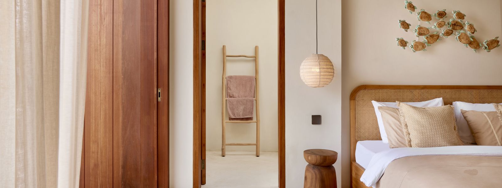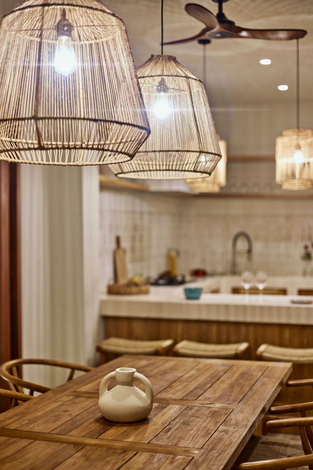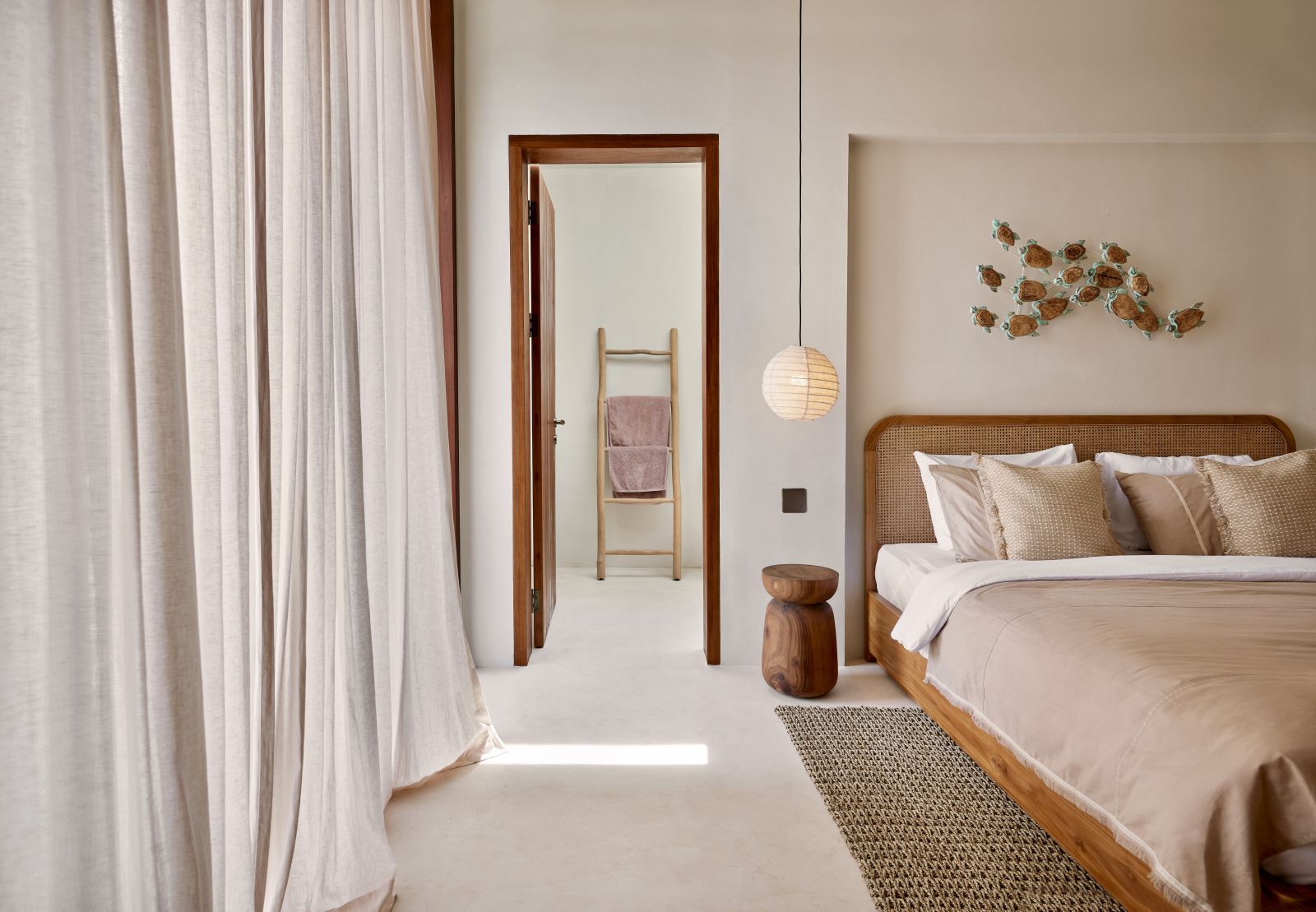Thoughtfully designed with generous proportions and soft, natural tones, the villa features limestone-clad exterior walls and wooden façade screens. Inside, ivory-toned polished cement floors flow seamlessly into matching walls, creating a calm, cohesive aesthetic throughout the living spaces.