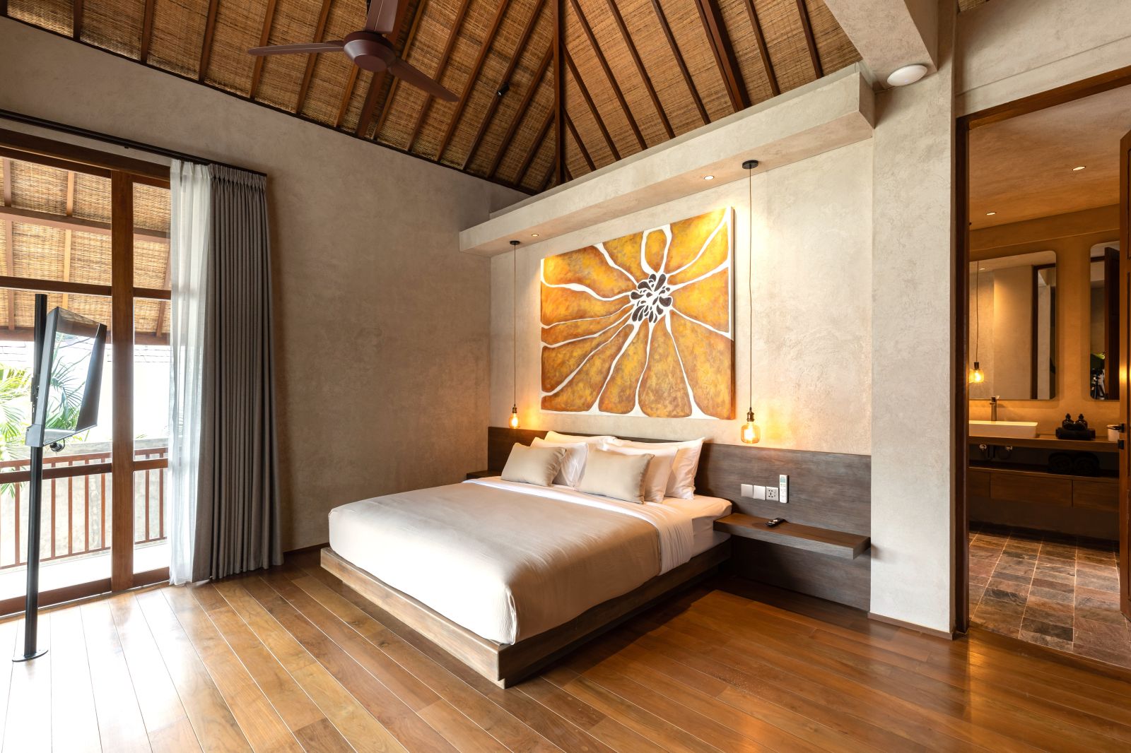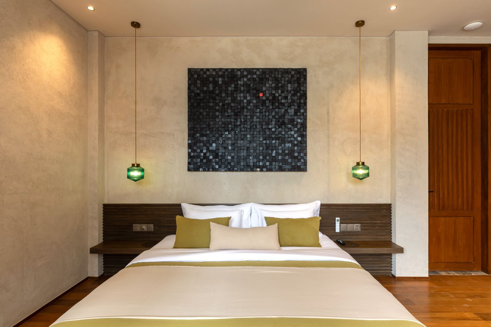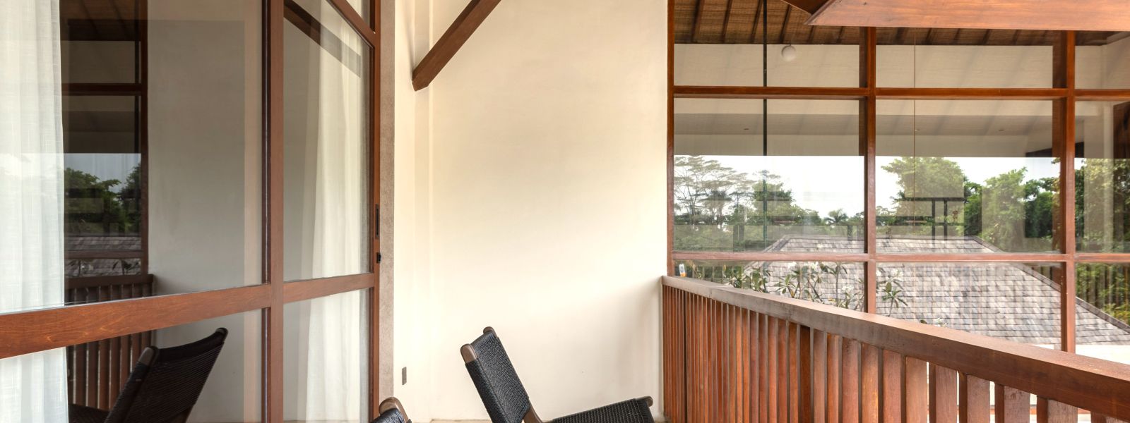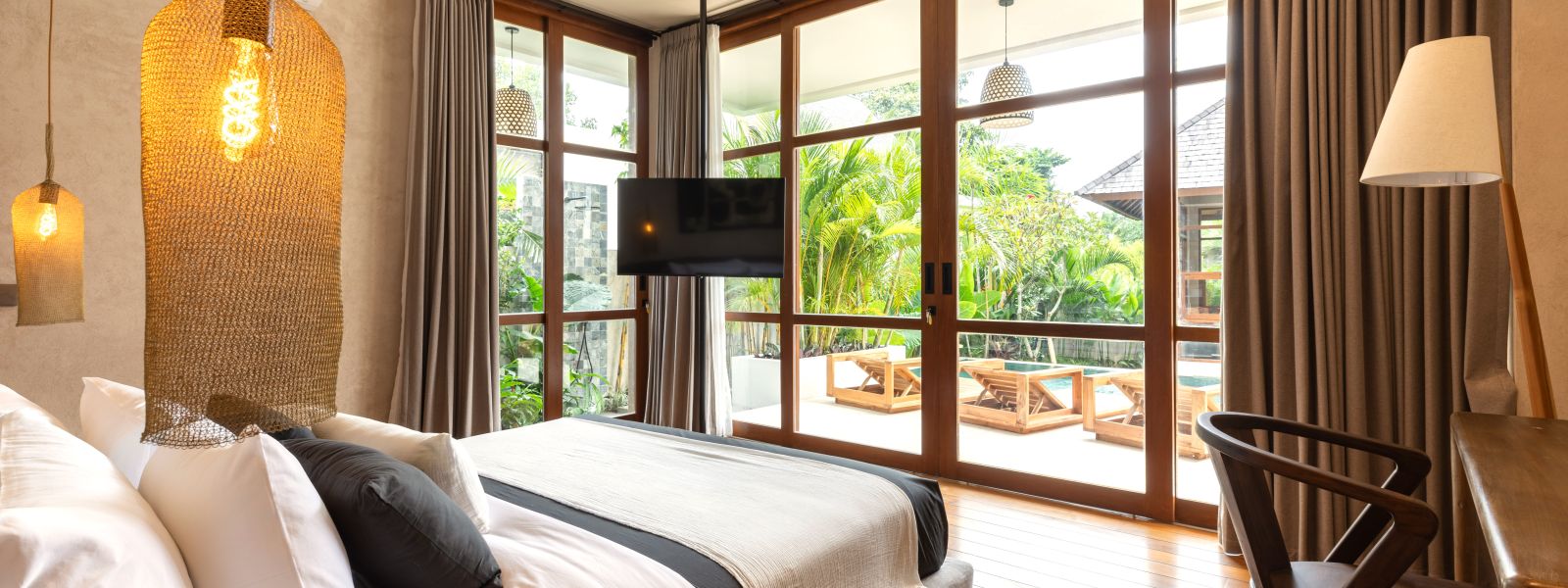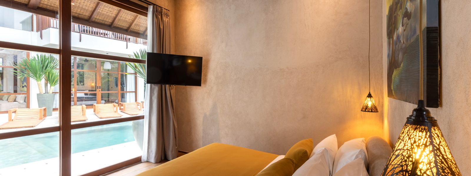 Set within a private compound of three villas in a lush natural environment, this six-bedroom villa in Nyanyi presents a refined blend of contemporary architecture, modern Balinese influence, and tropical living. The design is organized around a central pool courtyard, establishing a seamless connection between indoor living areas, outdoor terraces, and surrounding greenery.