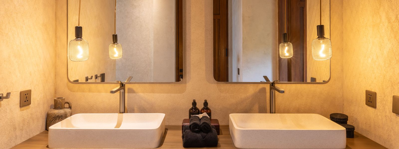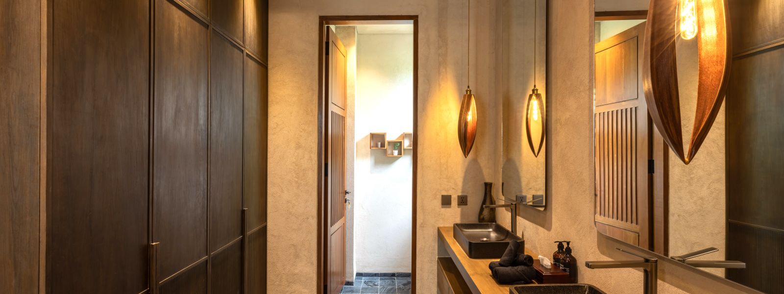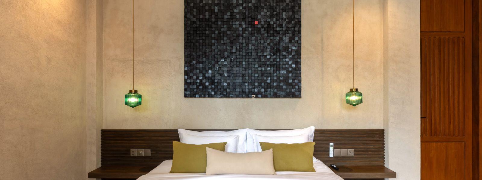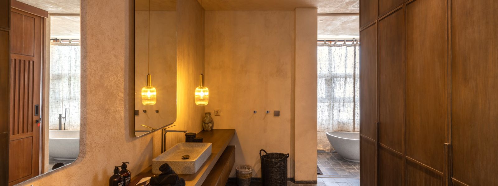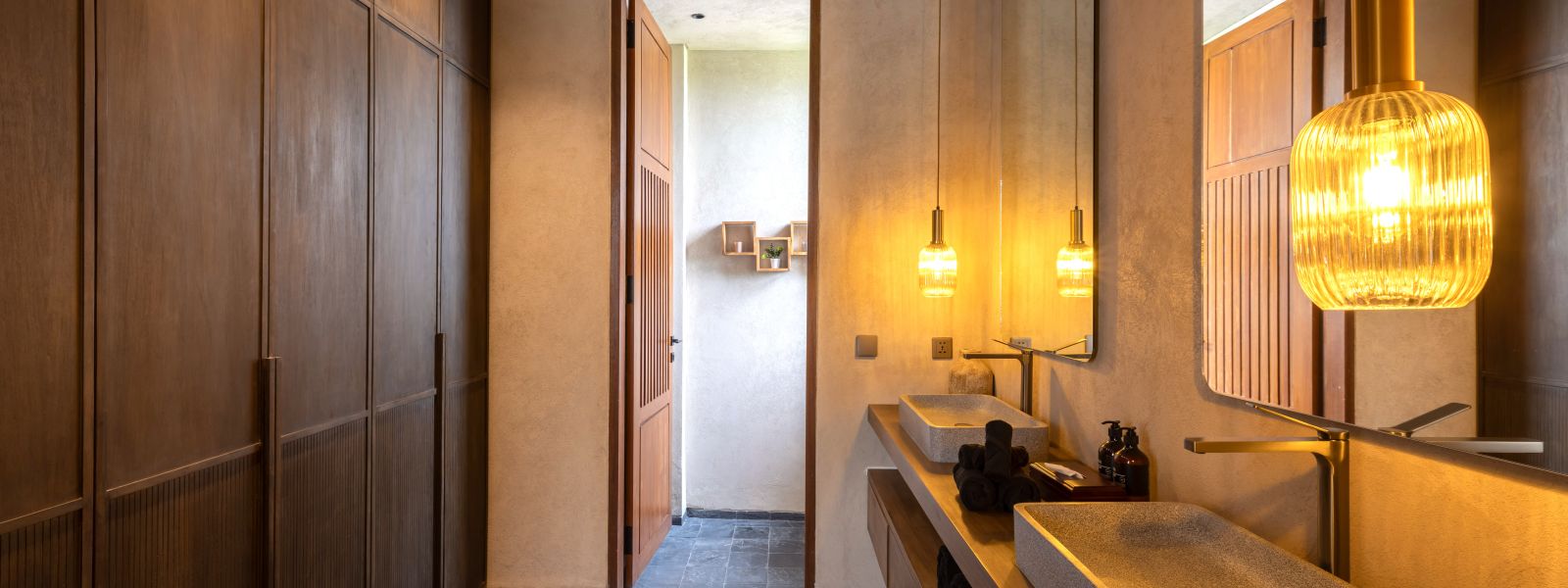 The open-plan living space integrates lounge and dining areas with clarity and flow, enhanced by carefully selected lighting and clean architectural lines. Each of the six bedrooms is conceived as a private retreat, offering generous proportions, garden or pool views, and a hotel-level sense of comfort. Upstairs, private balconies overlook the courtyard, reinforcing openness while maintaining privacy.