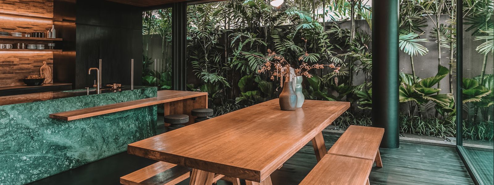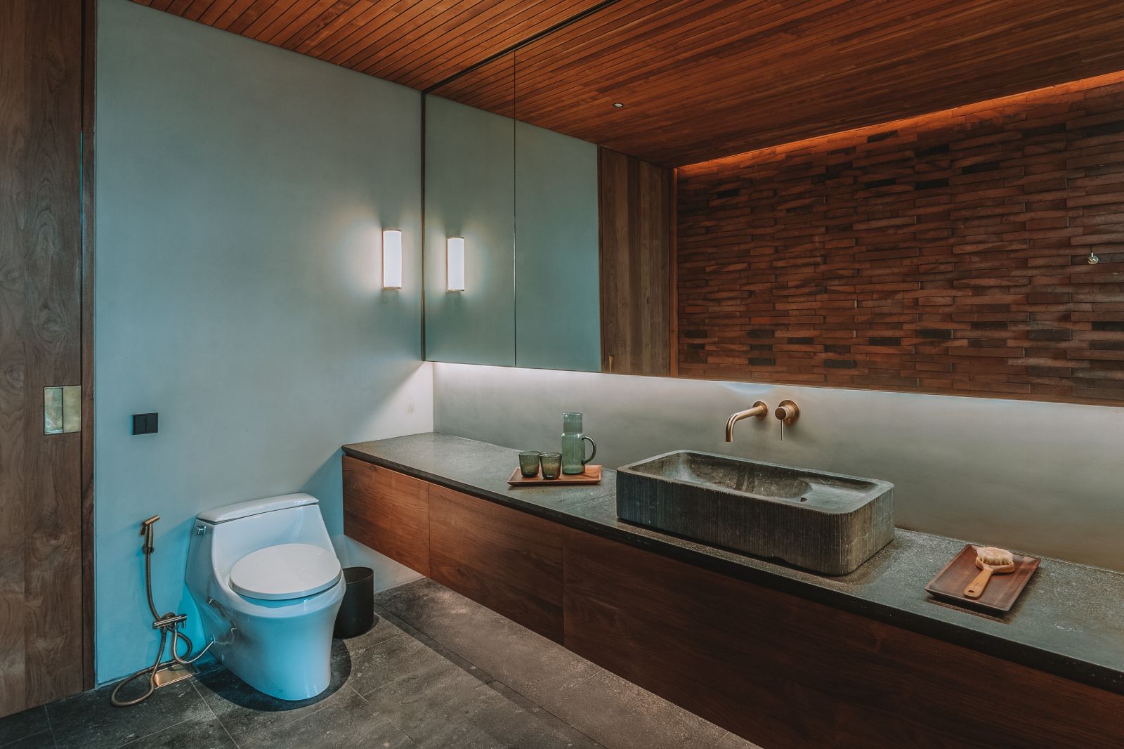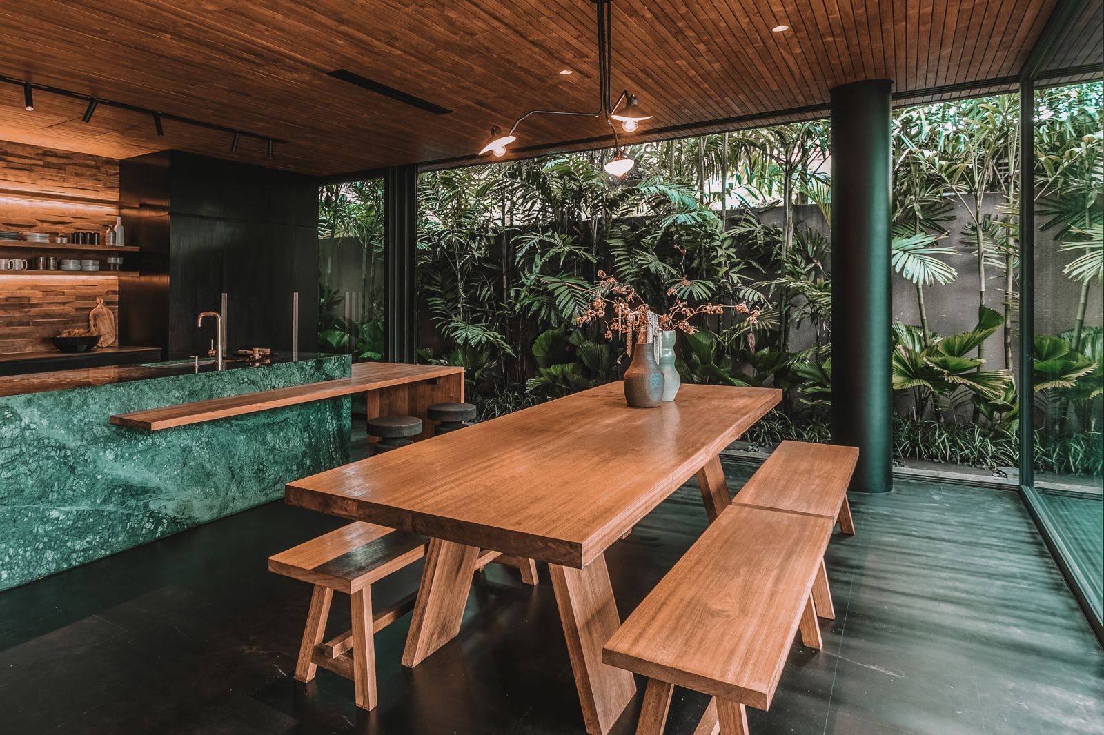The house pays respect to its original site being an old rice paddy, by adopting a split-level living layout mimicking the terraces and working with the site's natural contours.