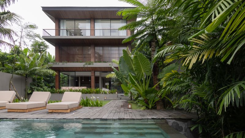 Tucked away at the very end of a quiet Umalas neighborhood, this architectural residence reveals itself slowly, an unexpected sanctuary wrapped in textured ...