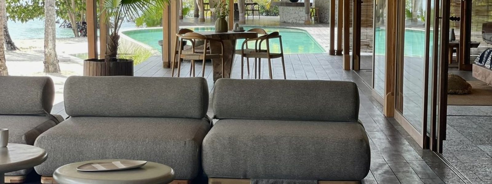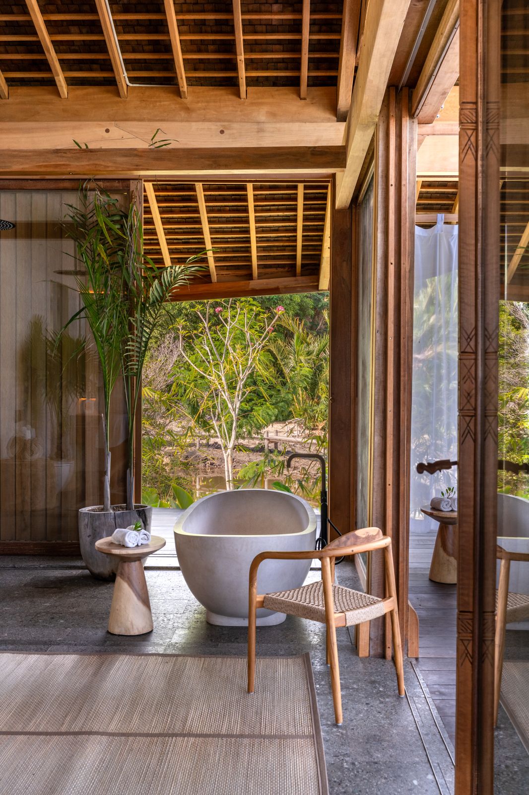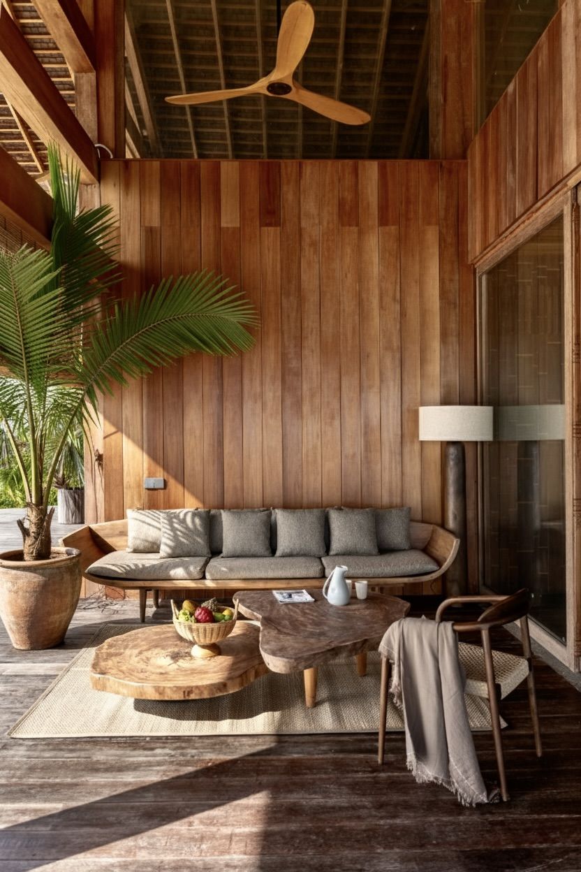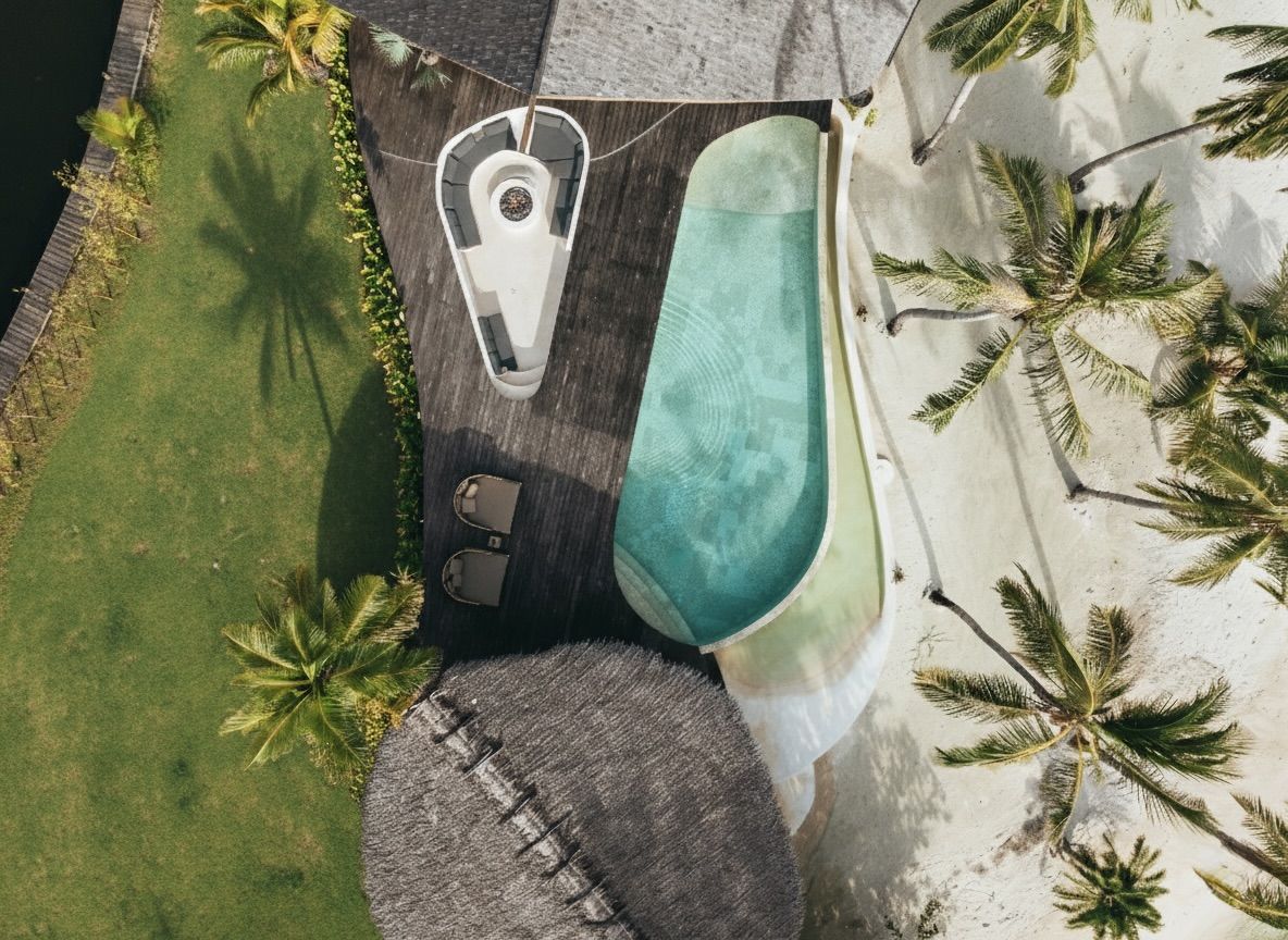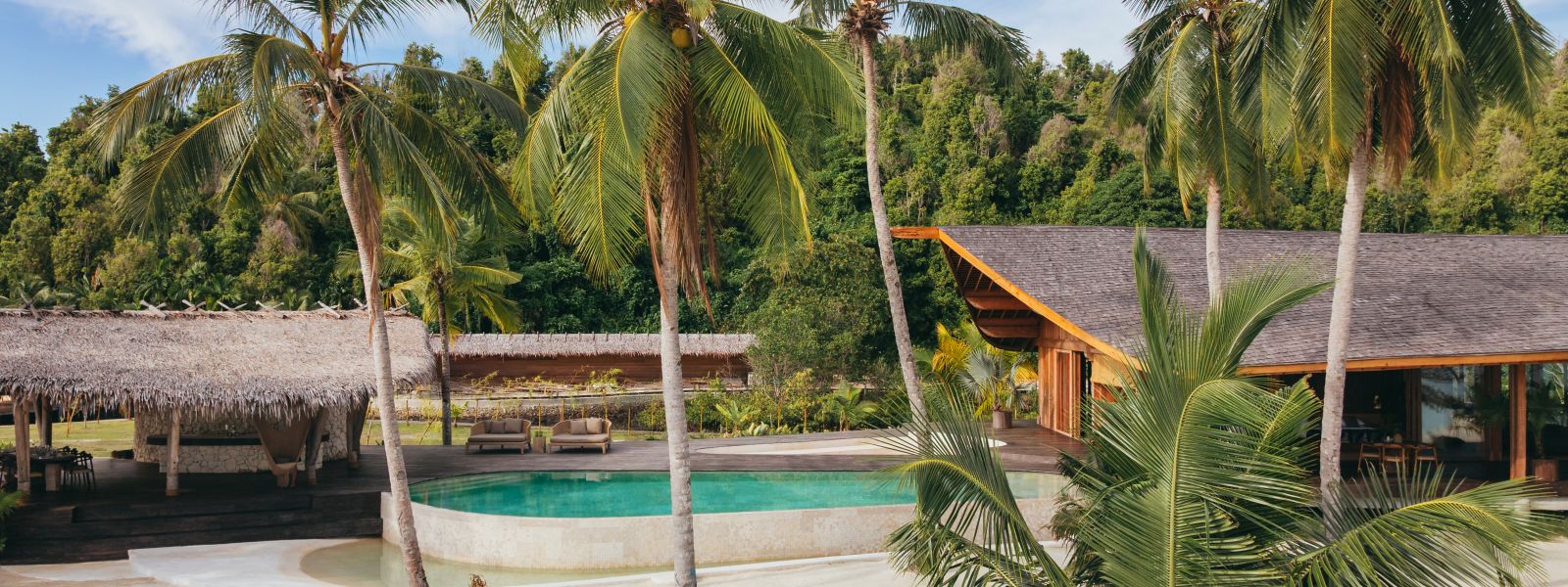 It showcases a unique design integrating Mentawai culture, featuring a distinctive roof miming traditional Mentawai boats. Crafted with the finest natural materials, including locally sourced stone, hardwoods, and an ironwood deck, this residence reflects a commitment to sustainability and elegance. The pool, adorned with exquisite marble mosaic, adds a touch of sophistication to the outdoor space.