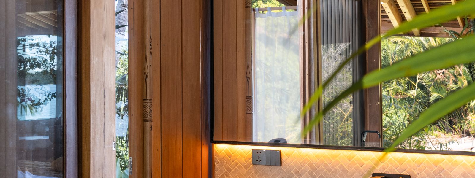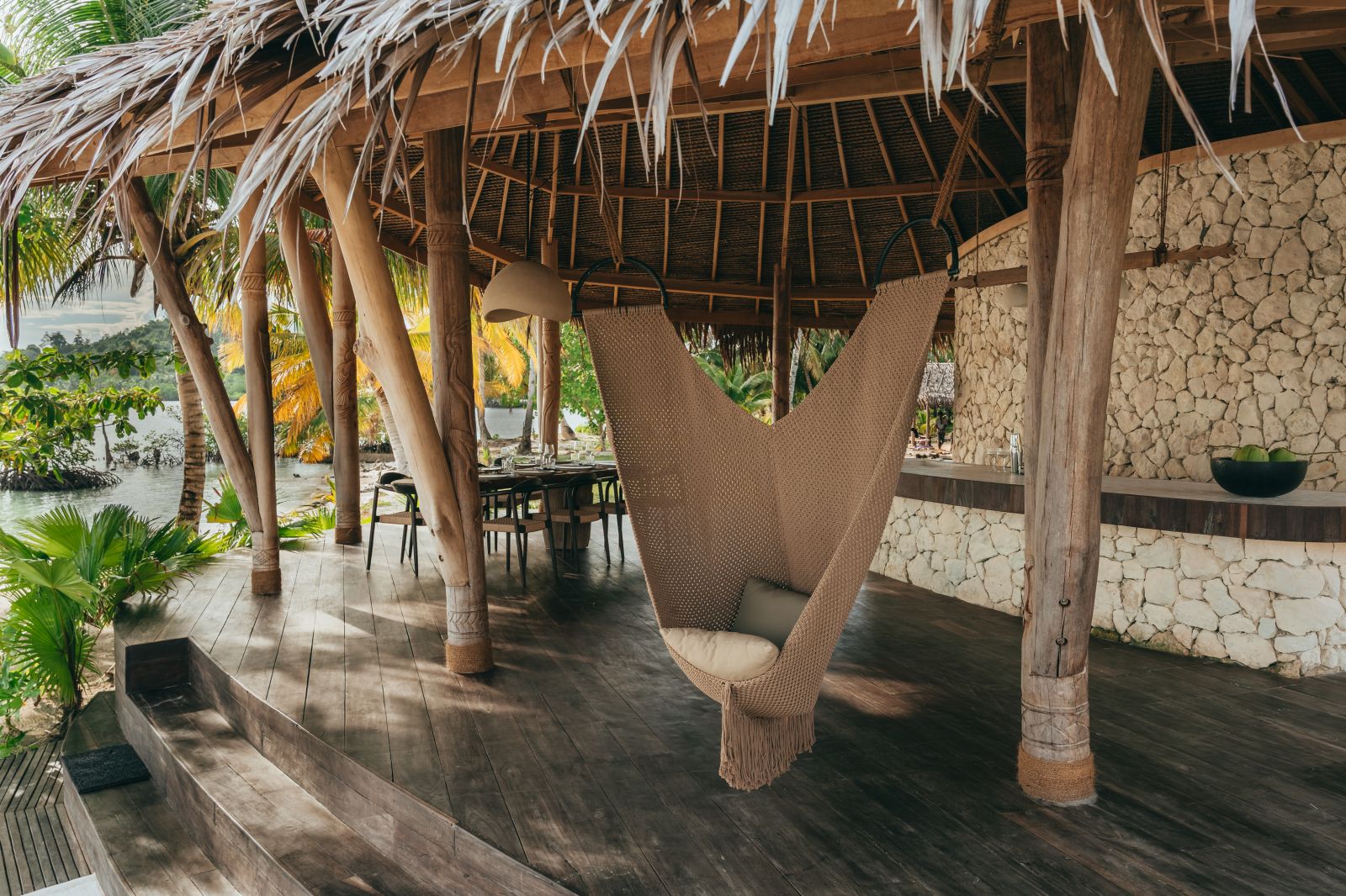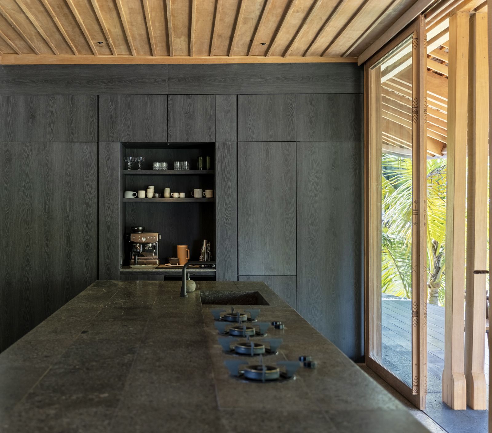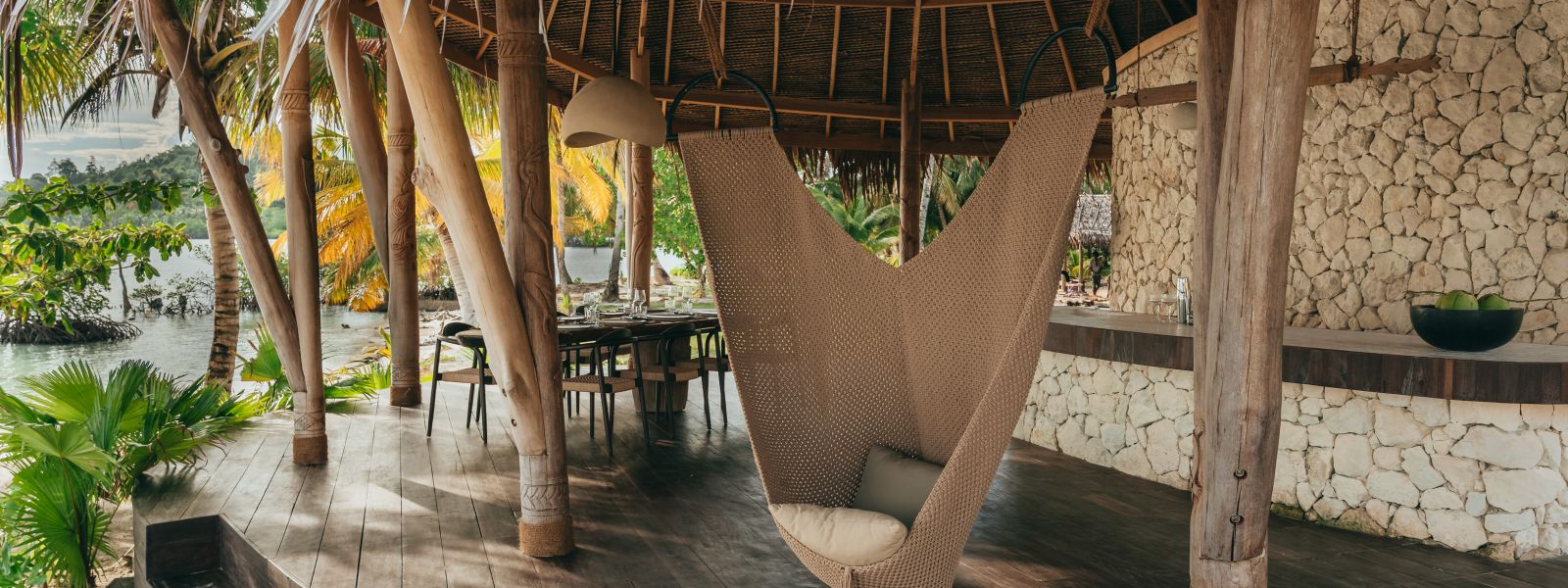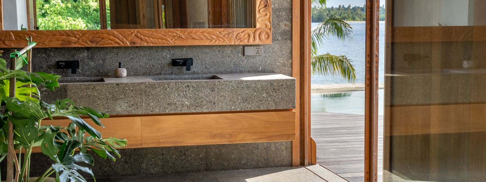 It showcases a unique design integrating Mentawai culture, featuring a distinctive roof miming traditional Mentawai boats. Crafted with the finest natural materials, including locally sourced stone, hardwoods, and an ironwood deck, this residence reflects a commitment to sustainability and elegance. The pool, adorned with exquisite marble mosaic, adds a touch of sophistication to the outdoor space.