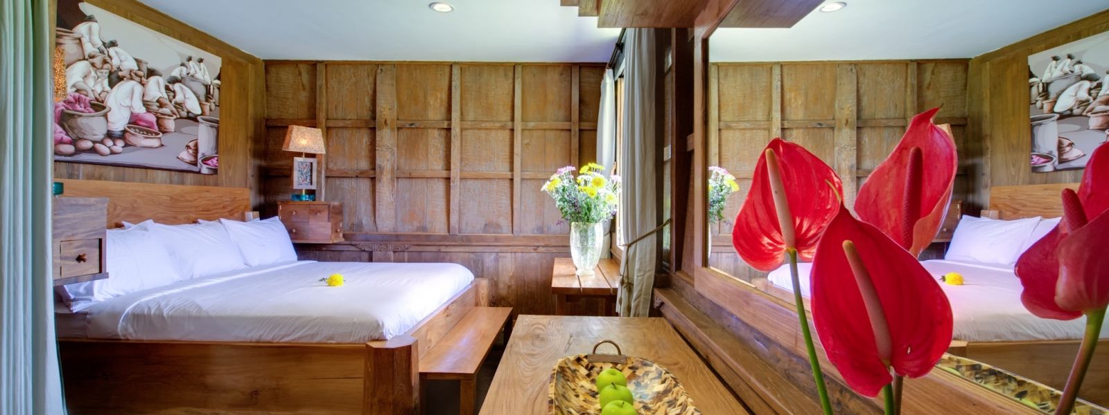 Adjacent to the tennis court, the Bungalow and Joglo are built from selected teak and each feature two bedrooms, a service kitchen, and ensuite bathrooms. The Joglo benefits from its own 12 x 3.5 m swimming pool. Thoughtfully designed for both private living and entertaining, this estate brings together generous living spaces and lush tropical gardens.