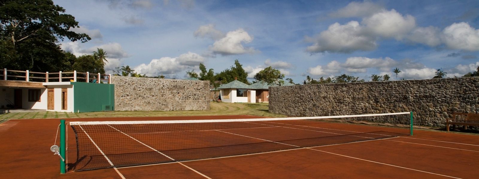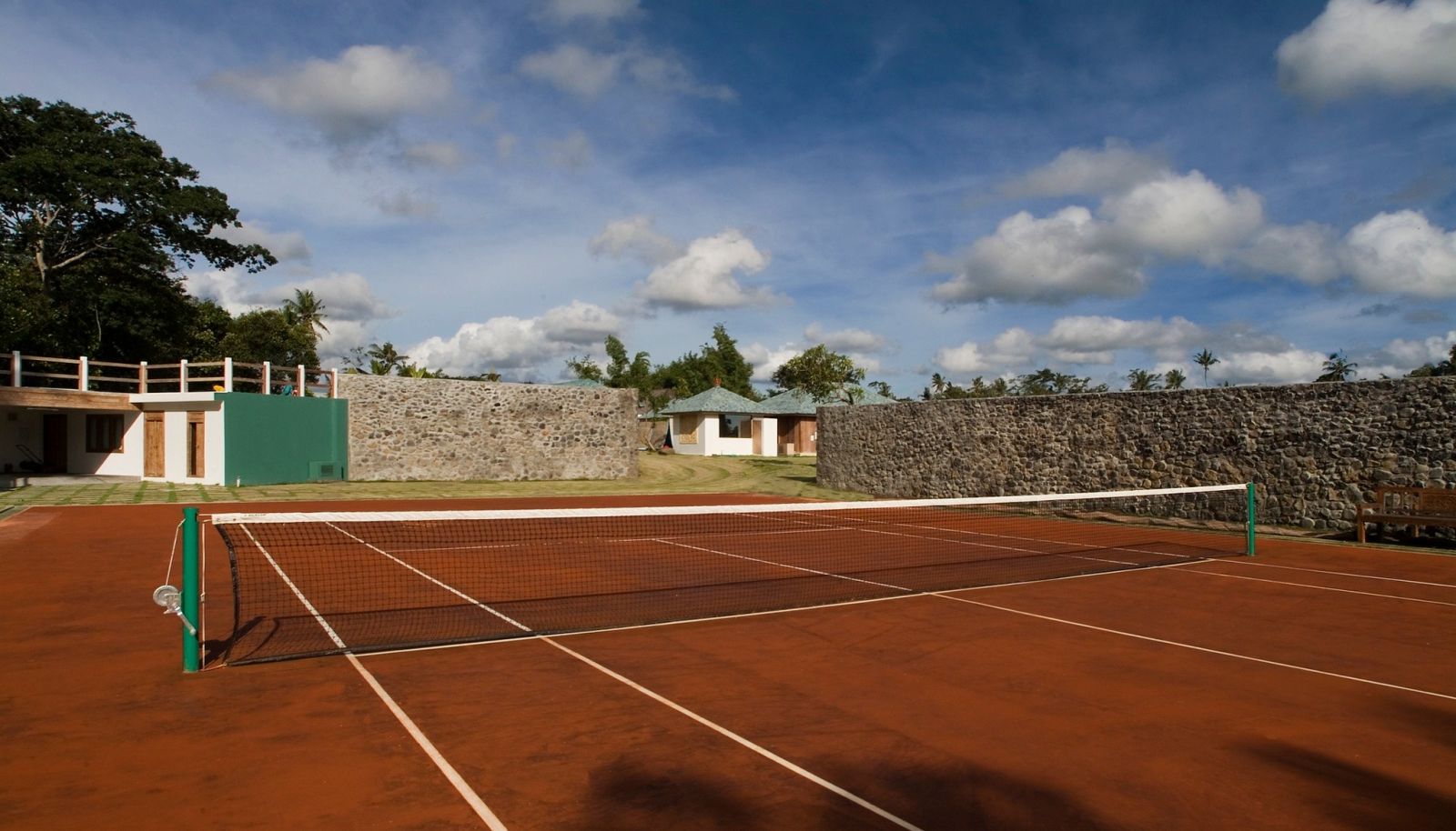 The property features a luxurious 7-bedroom main villa with two swimming pools, a 2-bedroom bungalow, and a 2-bedroom Joglo with a private pool. Lifestyle amenities include a clay tennis court, an under-pool fitness and spa area, a panoramic garden terrace with gazebo for receptions or dining, and spacious parking facilities.