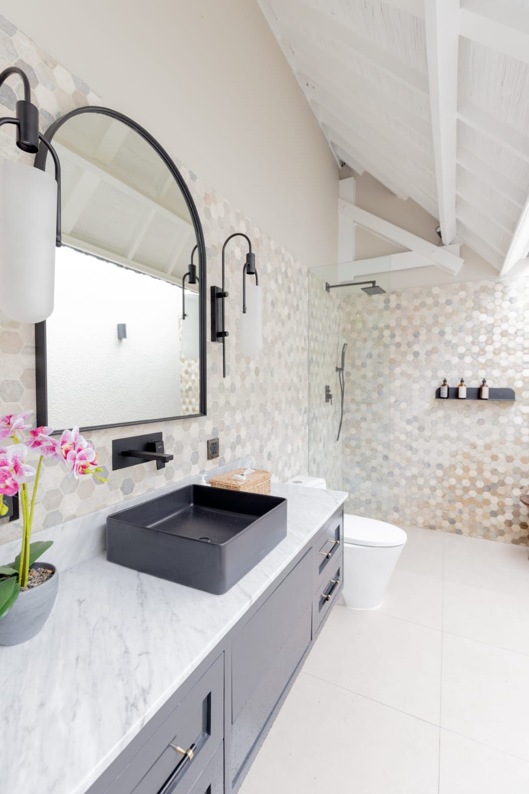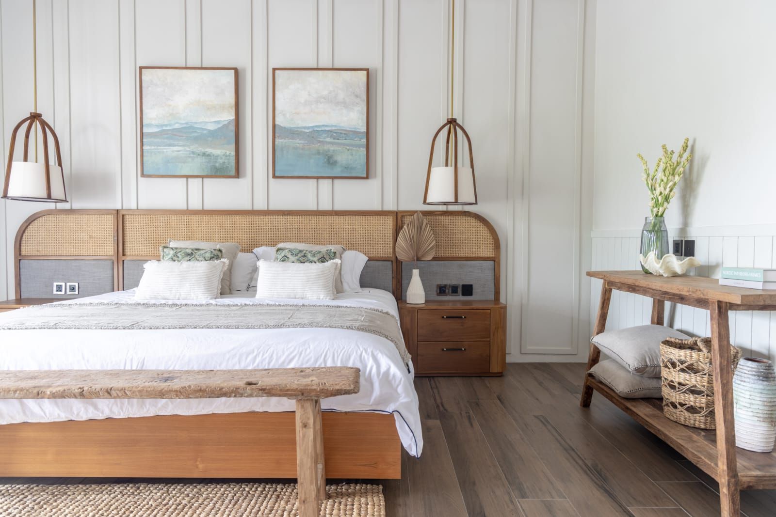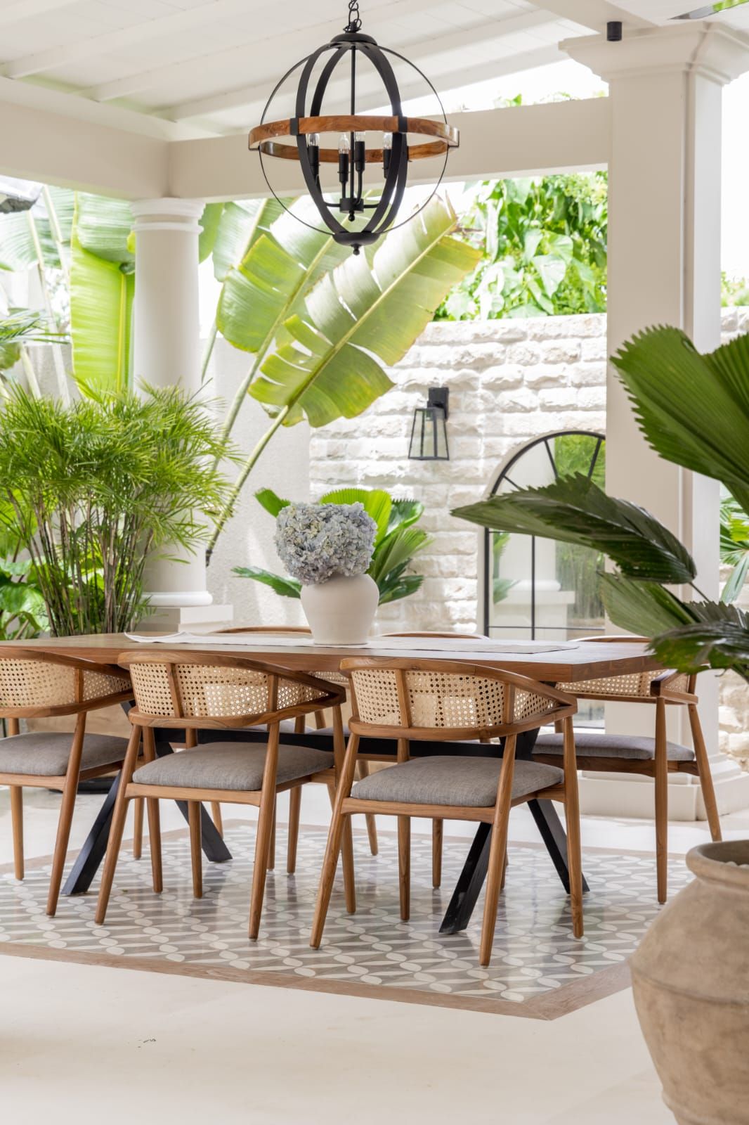 Upon entering, you'll find an open-air living area that connects you with nature. The air-conditioned kitchen and dining area are adjacent to the outdoor living. The design combines Coastal elements with modern comforts, allowing natural light to flow in. The enclosed living areas feature a fully-equipped kitchen, a rectangular dining table for 8, and a cozy entertainment area. Air conditioning and ceiling fans ensure comfort throughout. Outside, the pool area includes lounge seating and an alfresco living space with ceiling fans. The garden is small yet convenient, making this villa an ideal relaxing holiday retreat, including massages or yoga sessions outdoors.