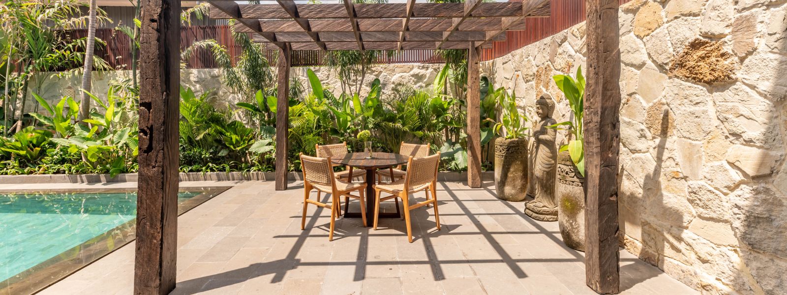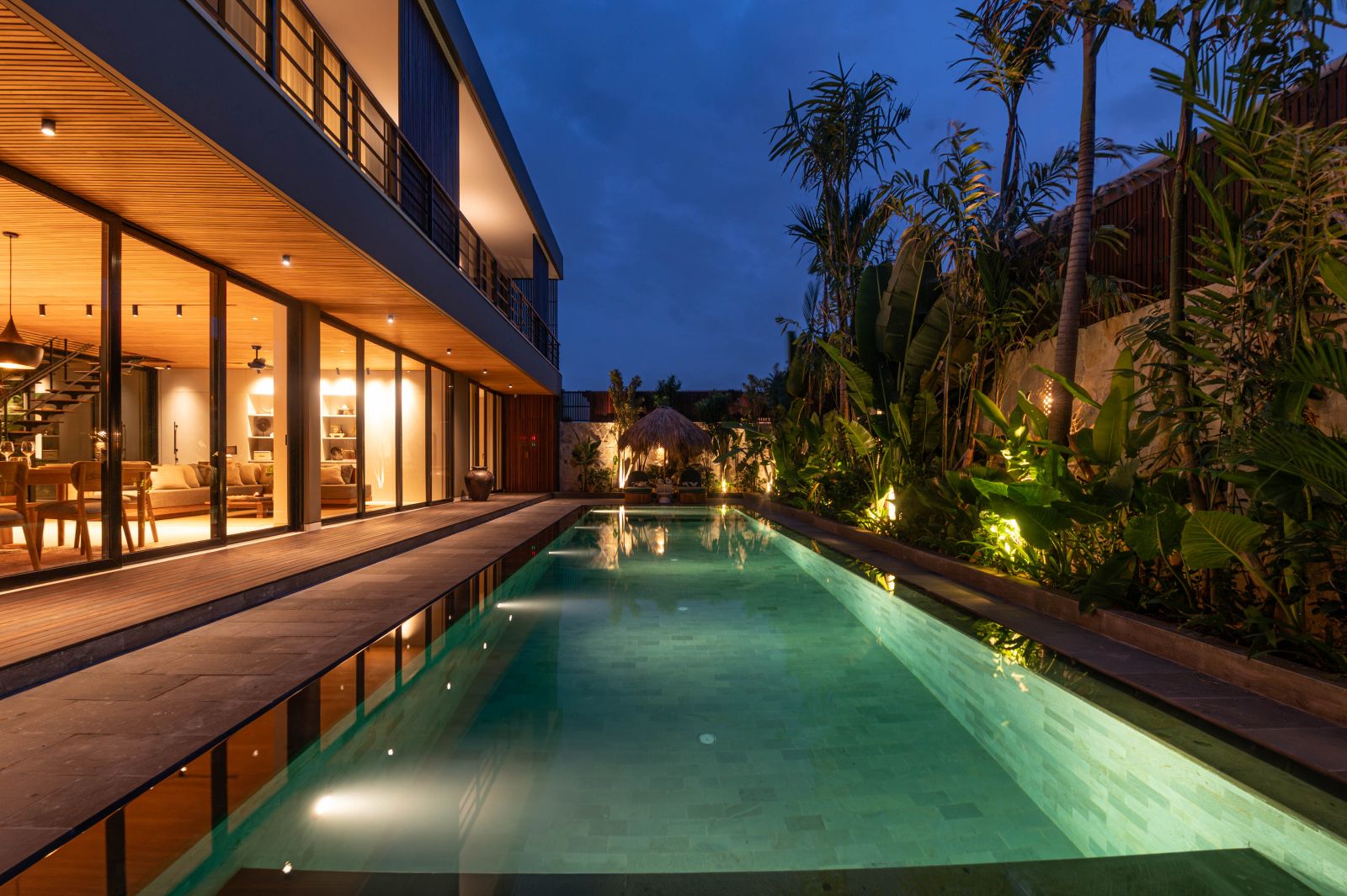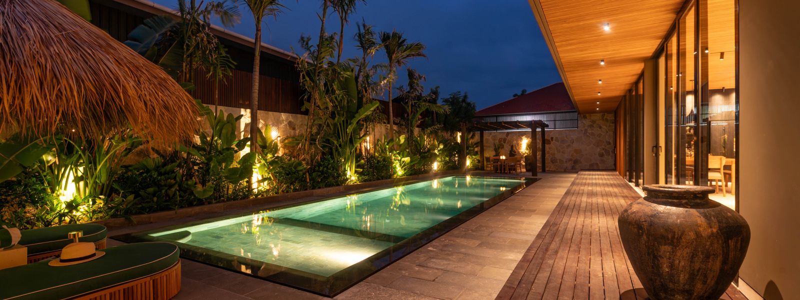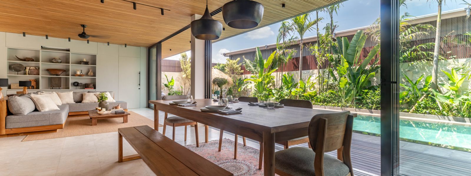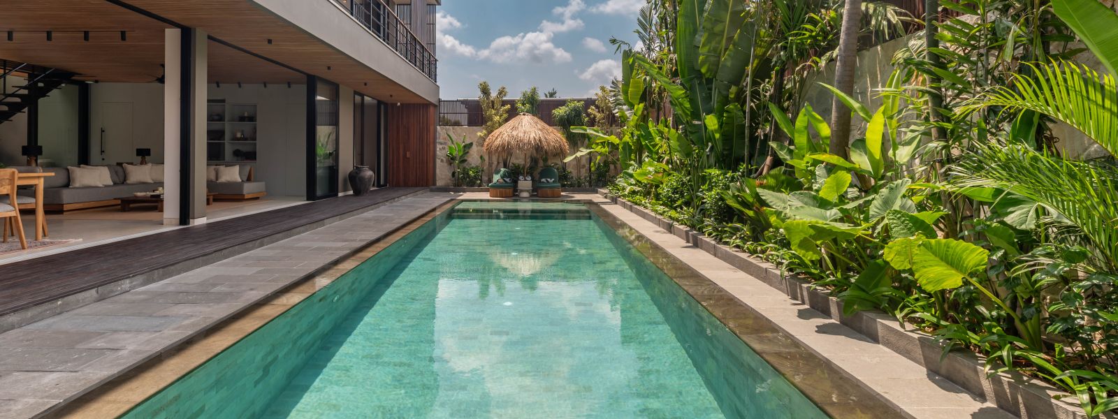 This brand new family villa is tucked away in the peaceful neighborhood of Babakan Canggu, just minutes from popular cafes and restaurants, and only 12 minutes from the beach.