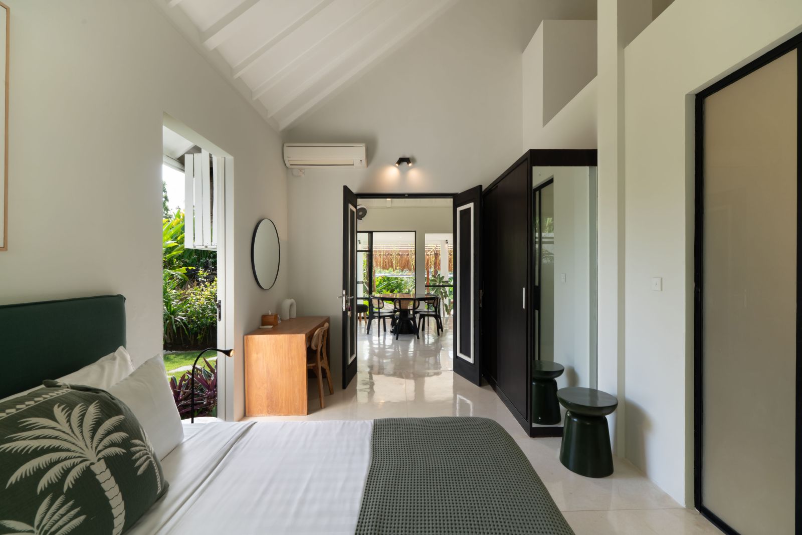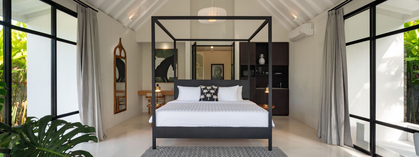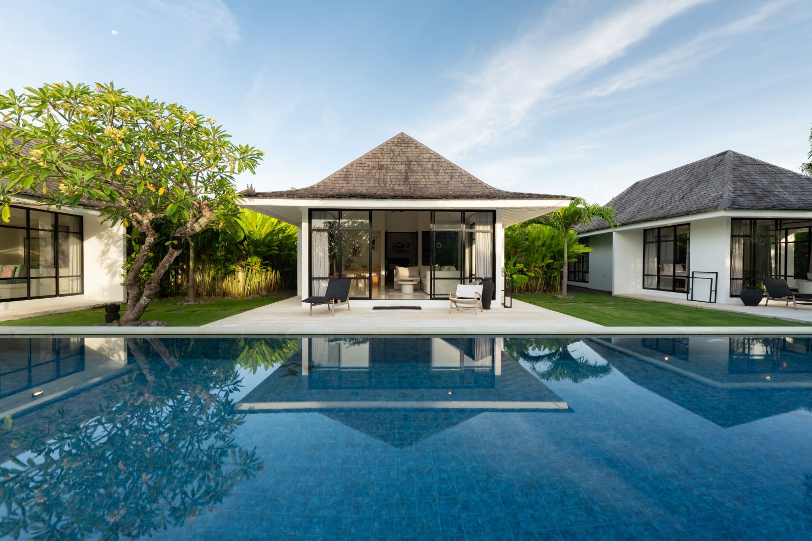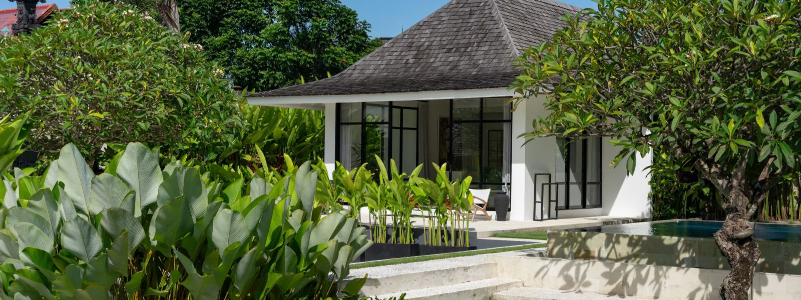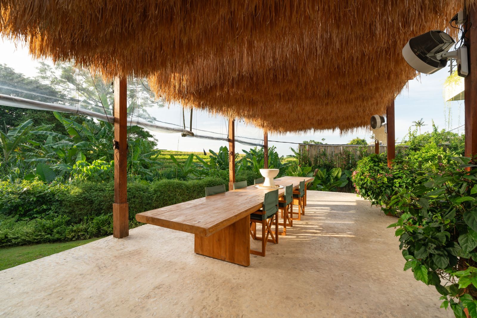 The property is thoughtfully composed with a main house featuring the living, dining, and kitchen areas, along with 2 bedrooms and a rooftop terrace designed to take in the lush surroundings and open views. Complementing the main residence are 3 expansive ensuite bedroom pavilions, each positioned independently to offer exceptional privacy and comfort, complete with a lounge area and mini bar or kitchenette, creating the feel of three private guest suites.