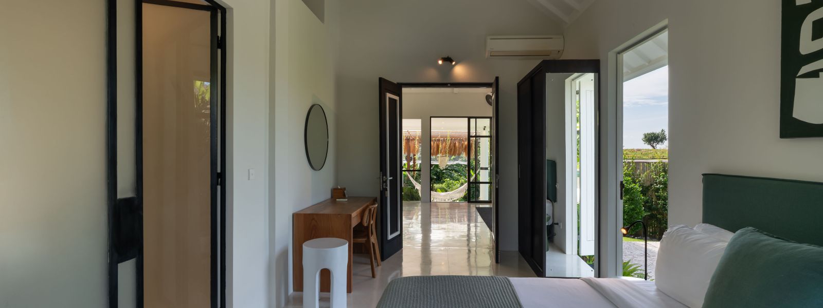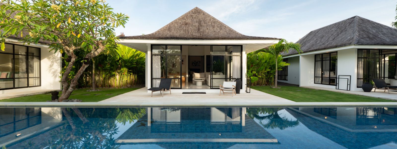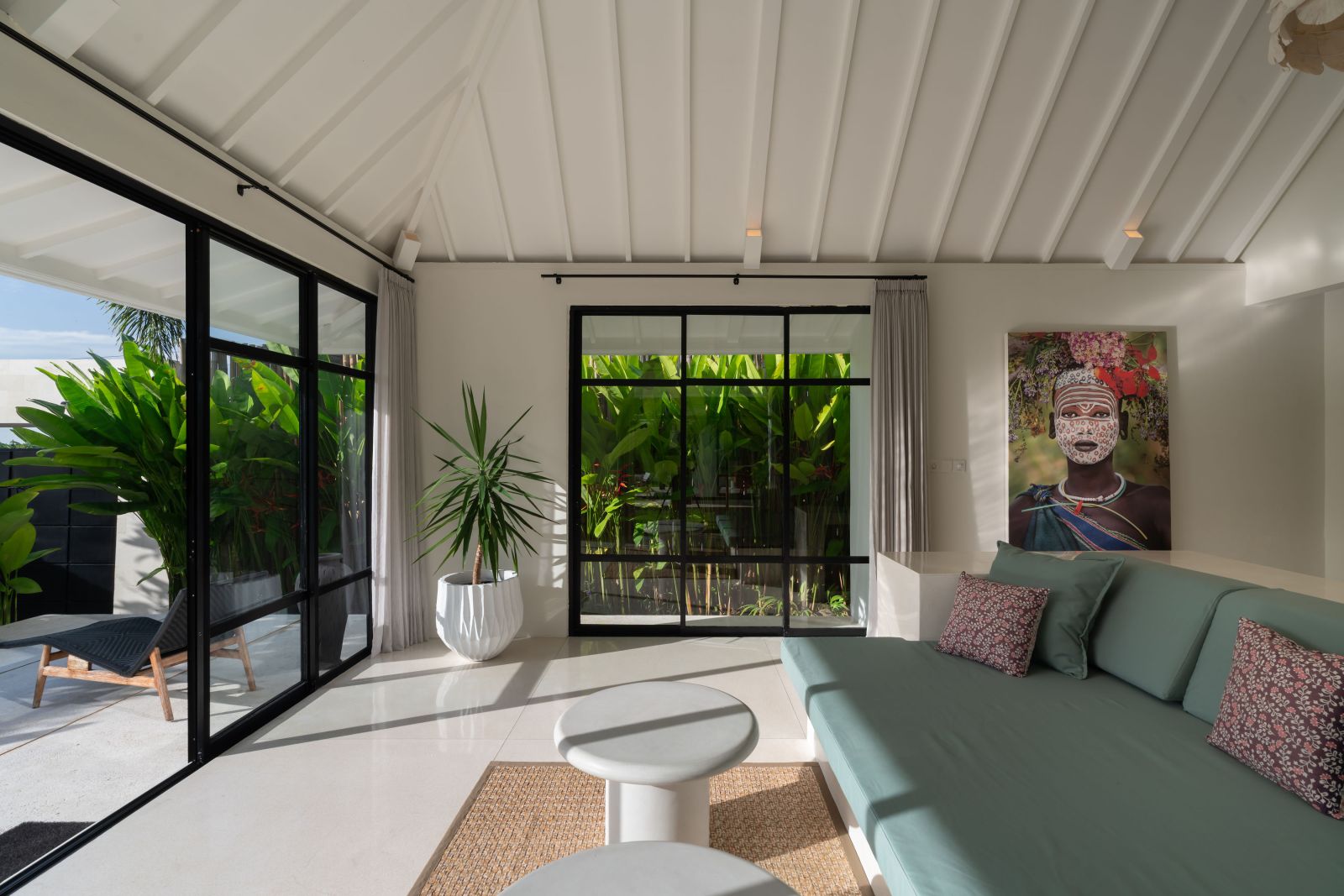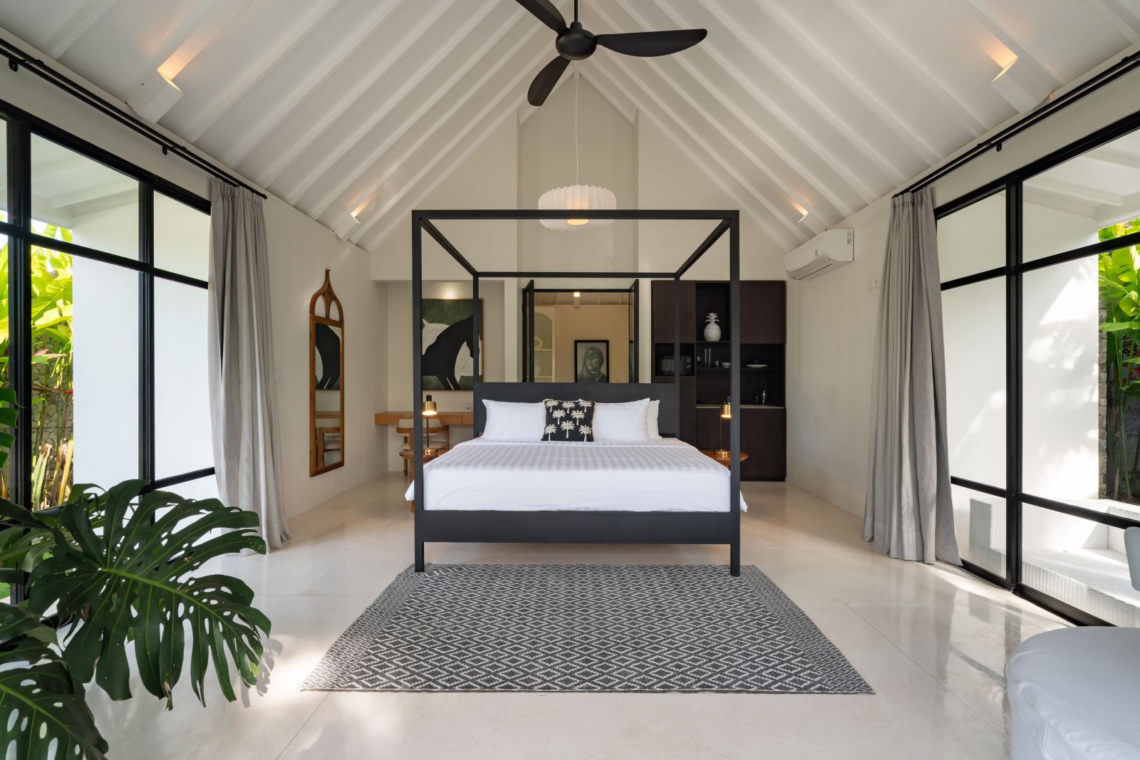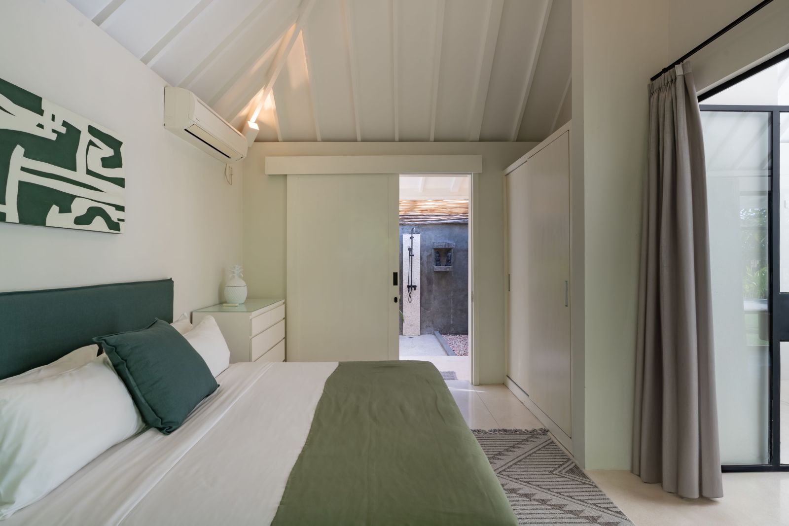 The property is thoughtfully composed with a main house featuring the living, dining, and kitchen areas, along with 2 bedrooms and a rooftop terrace designed to take in the lush surroundings and open views. Complementing the main residence are 3 expansive ensuite bedroom pavilions, each positioned independently to offer exceptional privacy and comfort, complete with a lounge area and mini bar or kitchenette, creating the feel of three private guest suites.