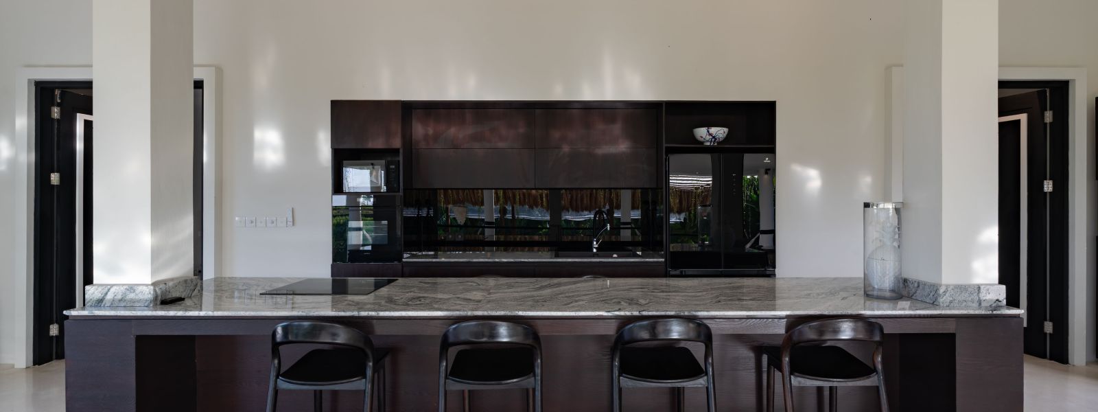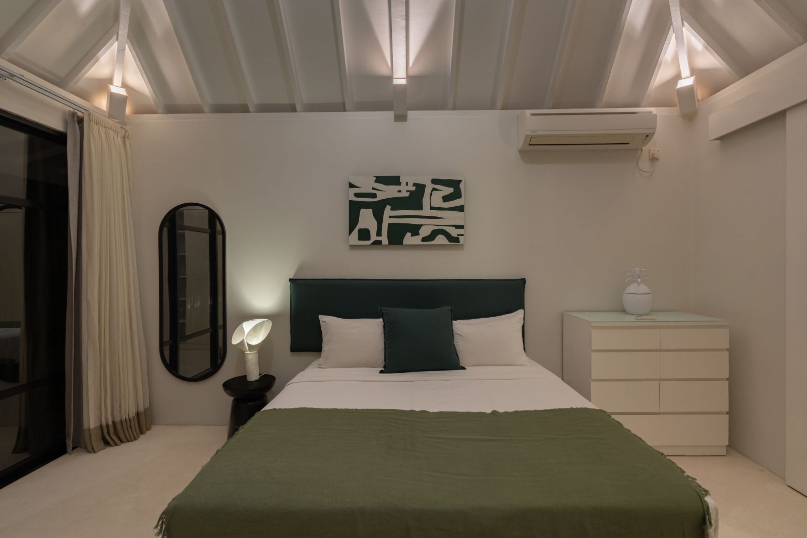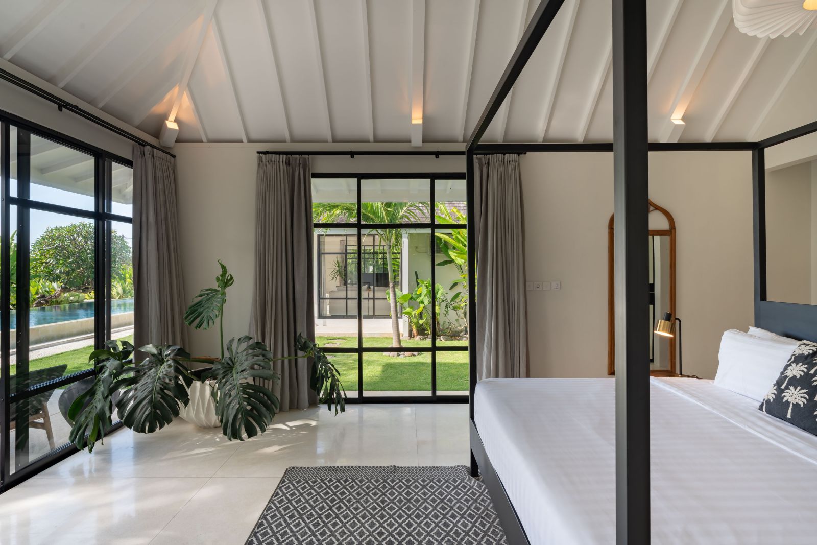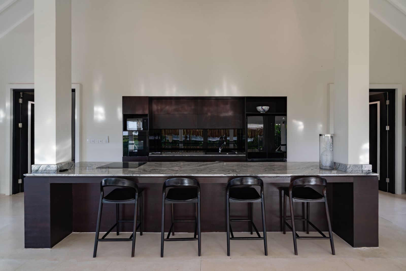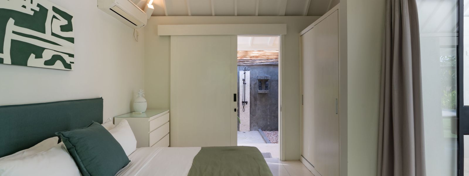 The property is thoughtfully composed with a main house featuring the living, dining, and kitchen areas, along with 2 bedrooms and a rooftop terrace designed to take in the lush surroundings and open views. Complementing the main residence are 3 expansive ensuite bedroom pavilions, each positioned independently to offer exceptional privacy and comfort, complete with a lounge area and mini bar or kitchenette, creating the feel of three private guest suites.