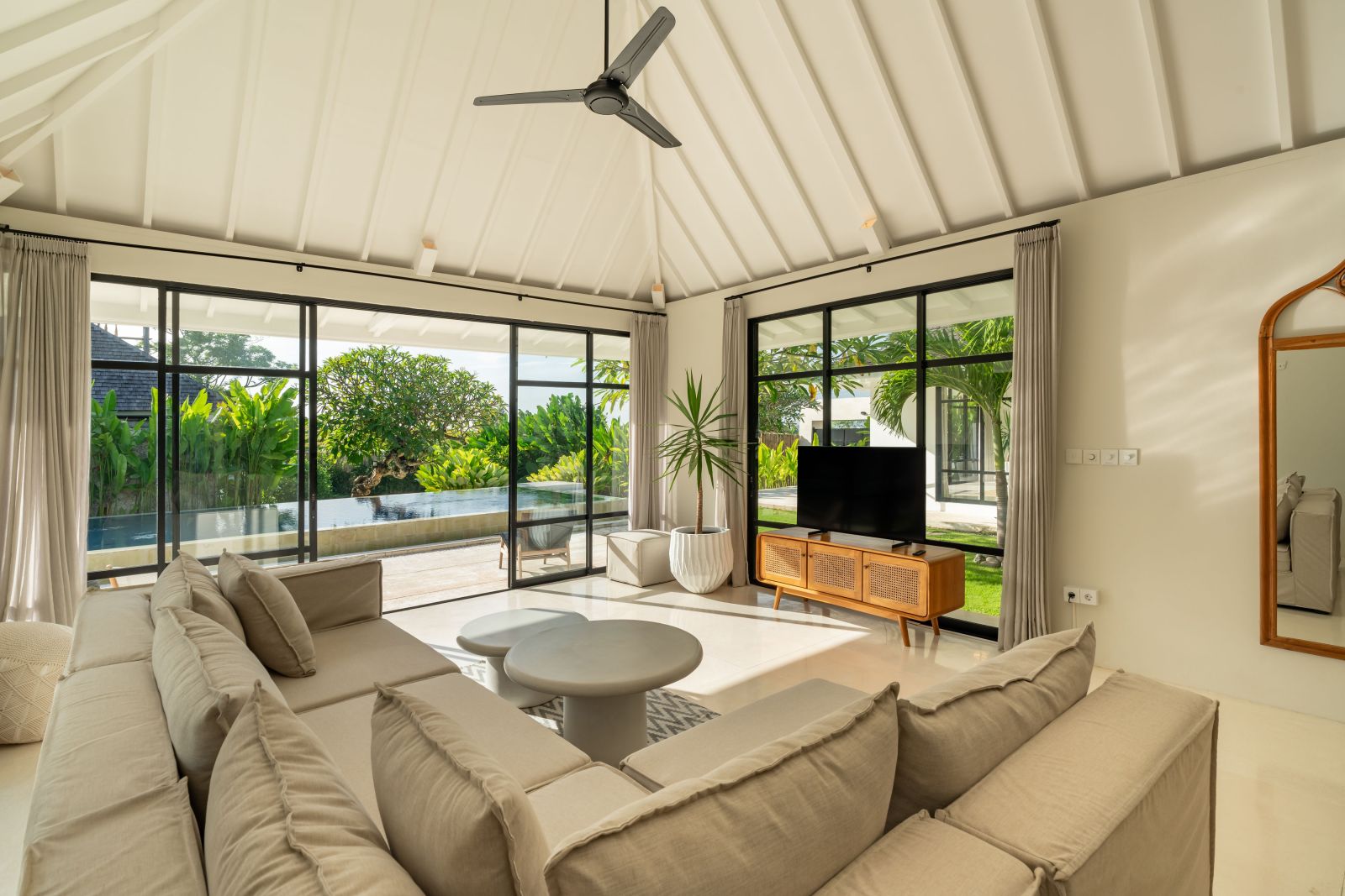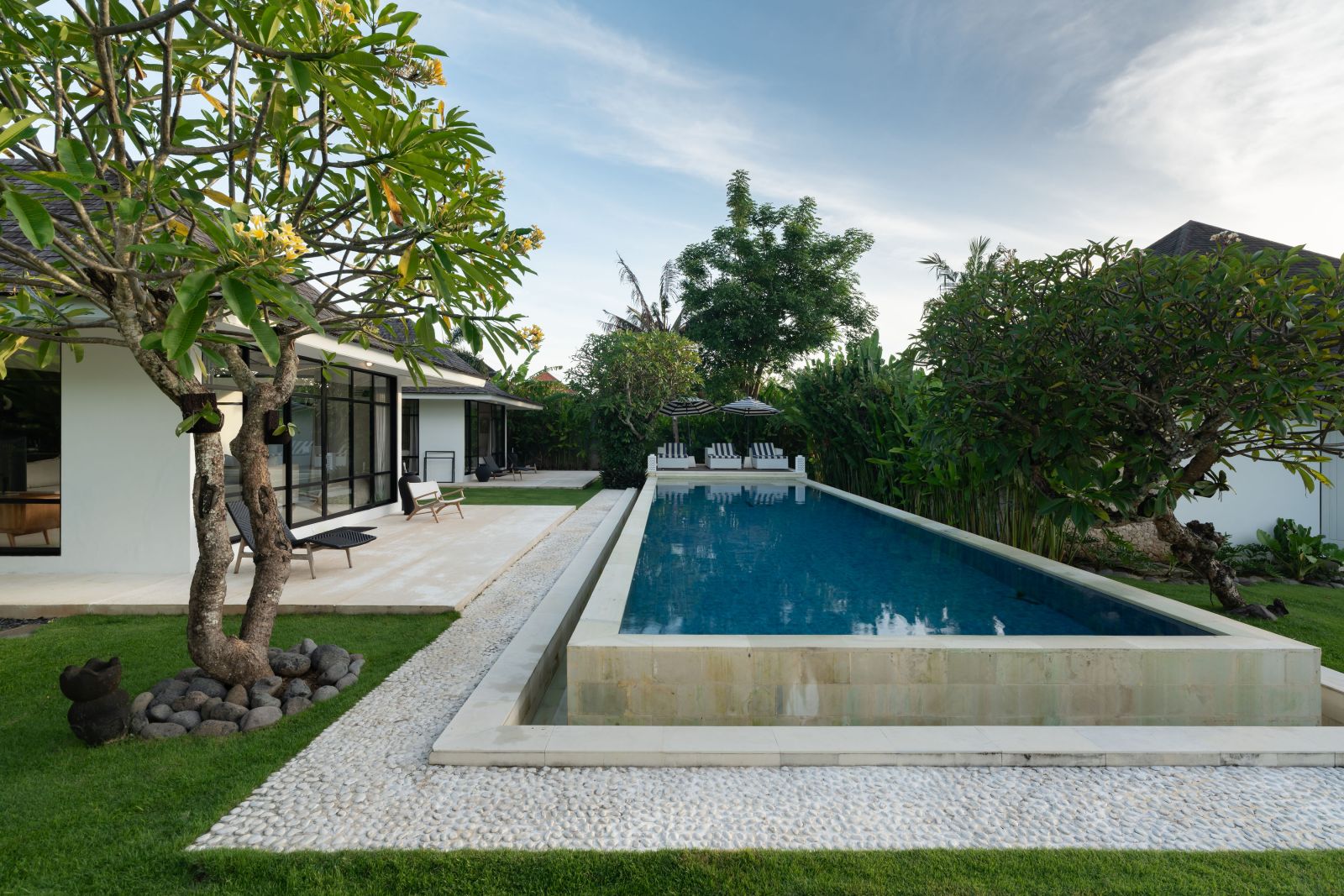 A beautifully crafted 5-bedroom tropical-colonial villa nestled in a peaceful setting, offering a generous landscaped garden and protected green outlooks over rice fields and mature trees, secured as part of the lease. Located just 2 km from Seseh Beach, this residence blends timeless design with a rare sense of privacy and tranquility.
