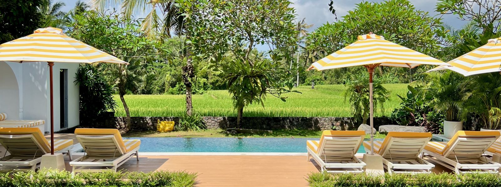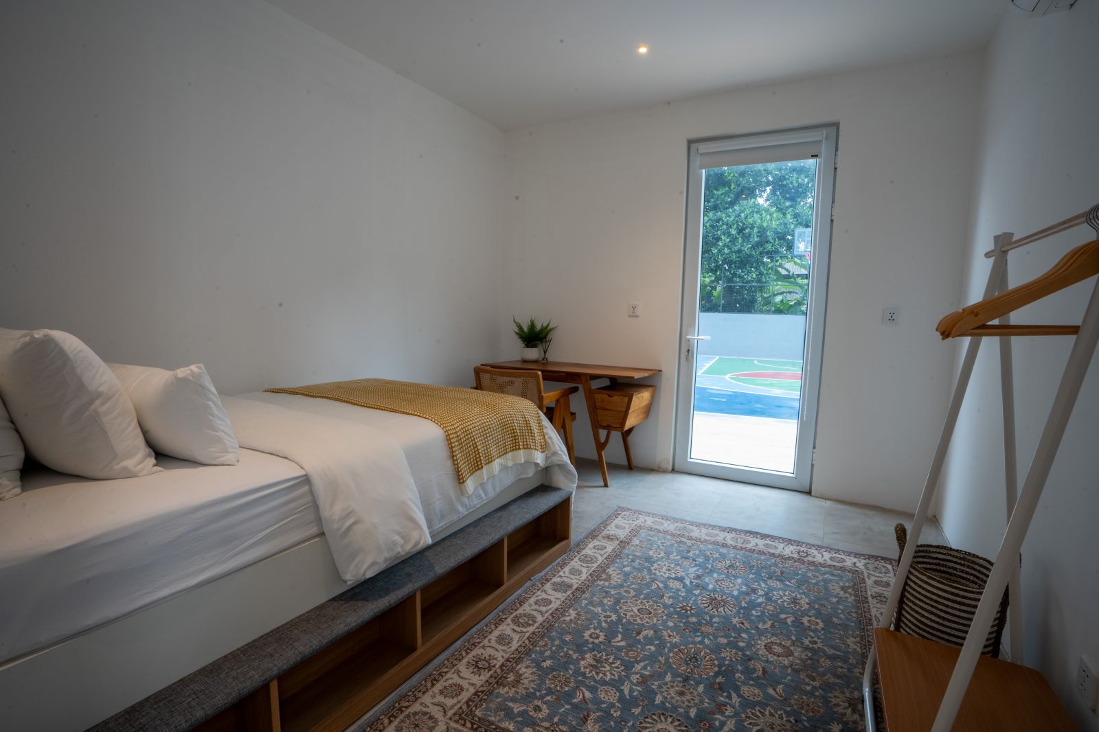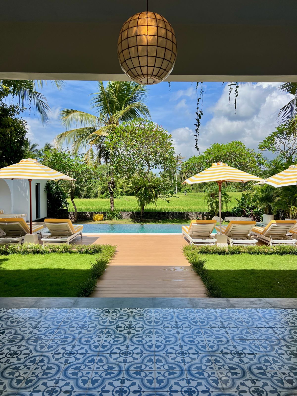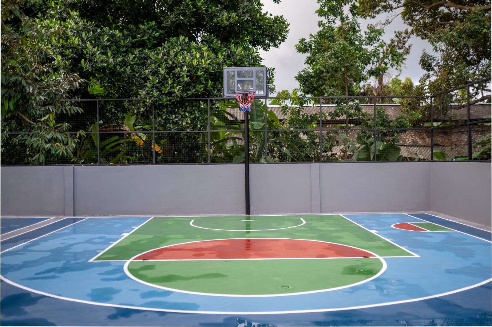 Designed for both comfort and entertaining, the villa includes an elegant living and dining area, a fully equipped kitchen, and two swimming pools, one family-friendly and one overlooking lush rice field views. Additional features such as a private spa room, gym, and basketball court complete the lifestyle experience.
