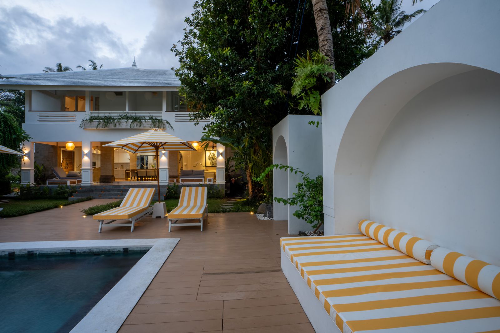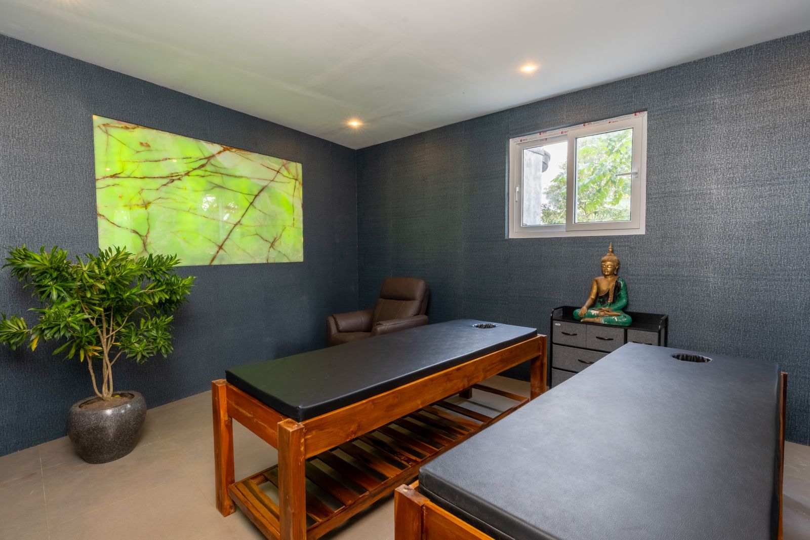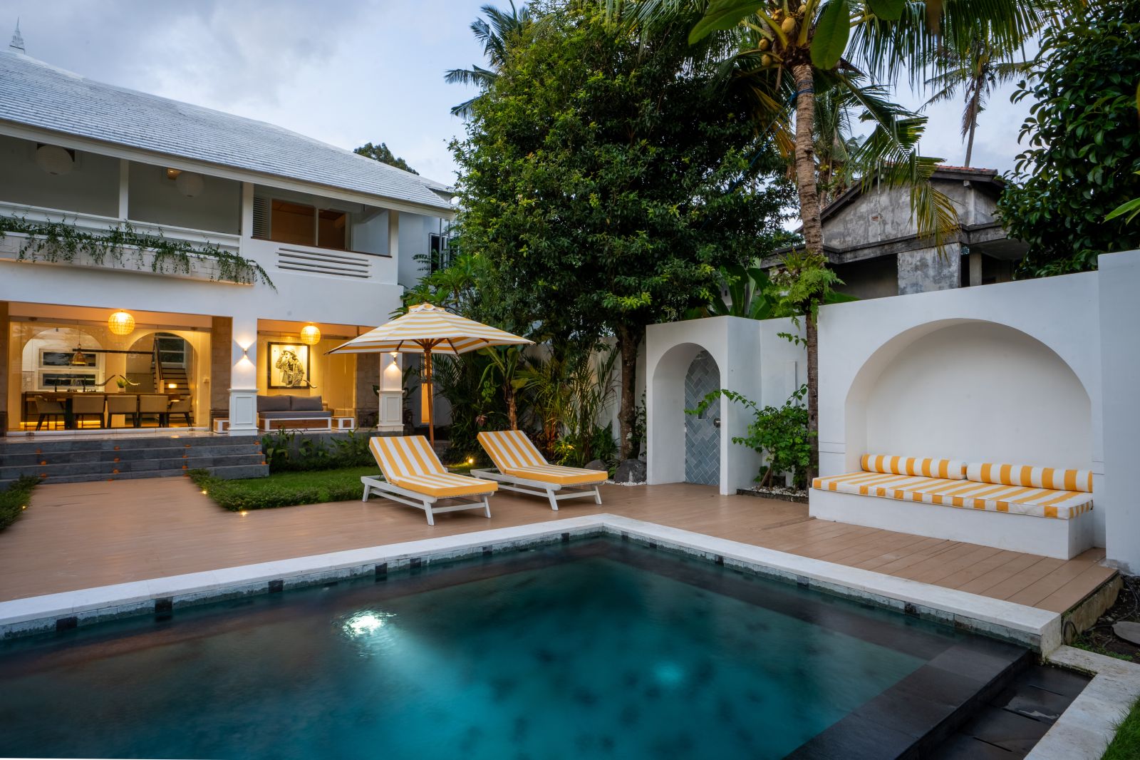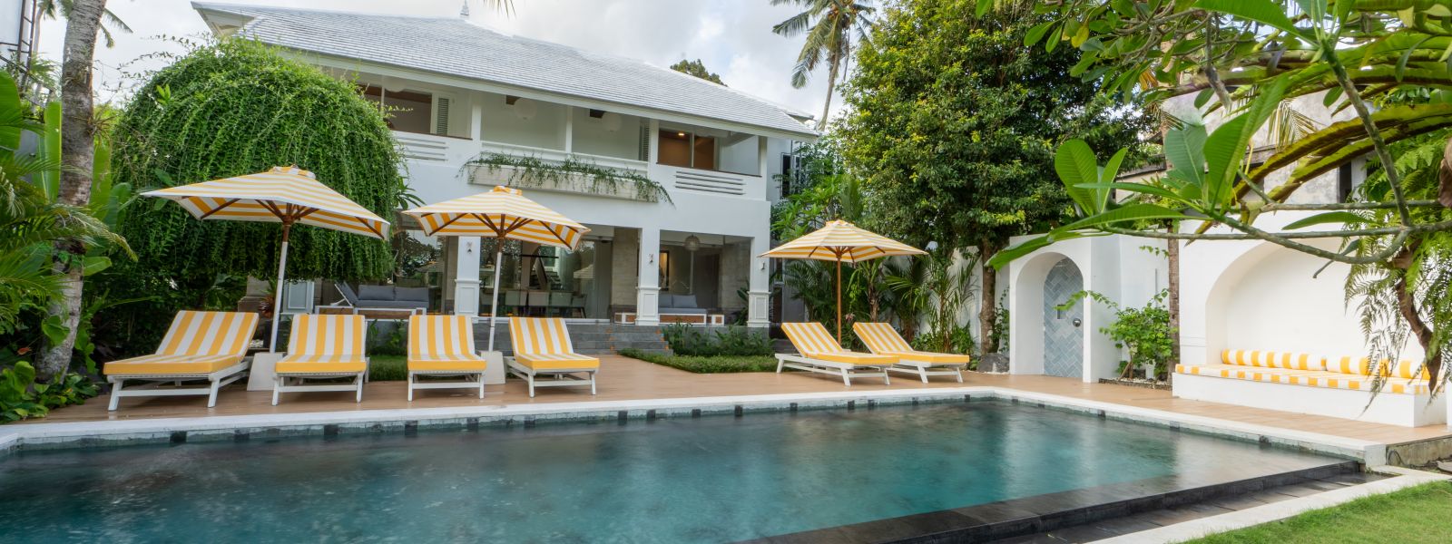 Designed for both comfort and entertaining, the villa includes an elegant living and dining area, a fully equipped kitchen, and two swimming pools, one family-friendly and one overlooking lush rice field views. Additional features such as a private spa room, gym, and basketball court complete the lifestyle experience.