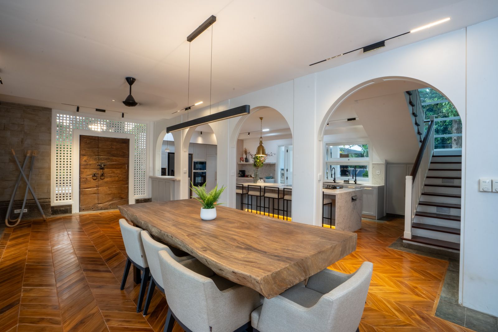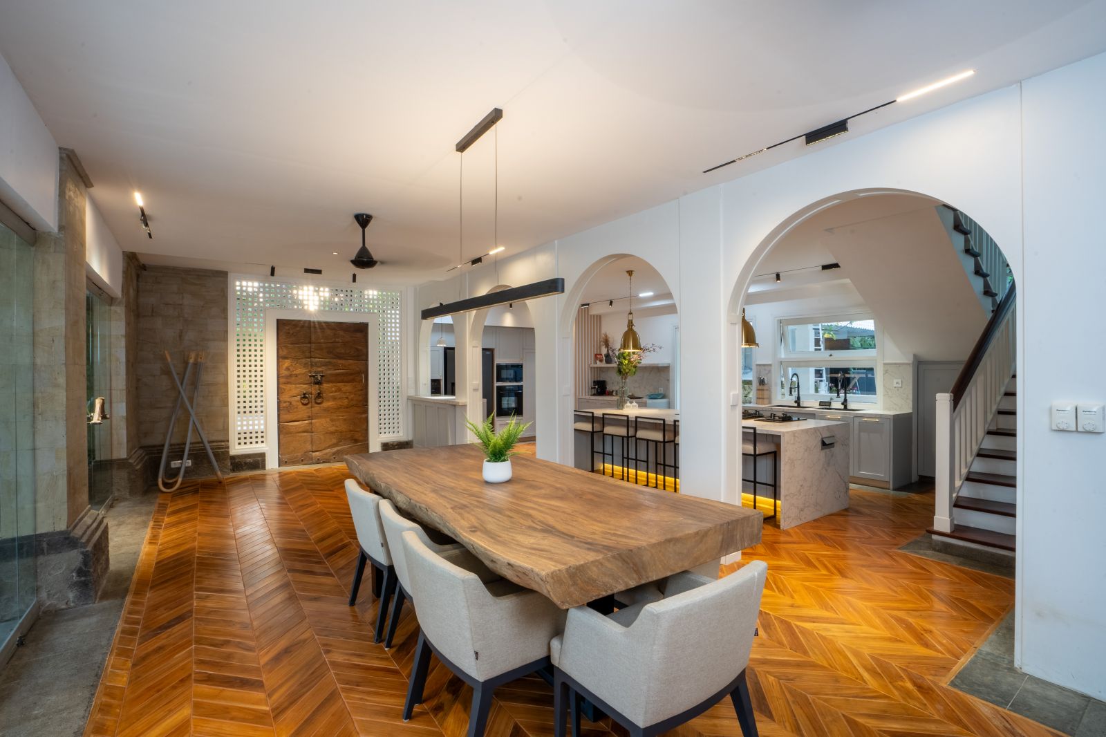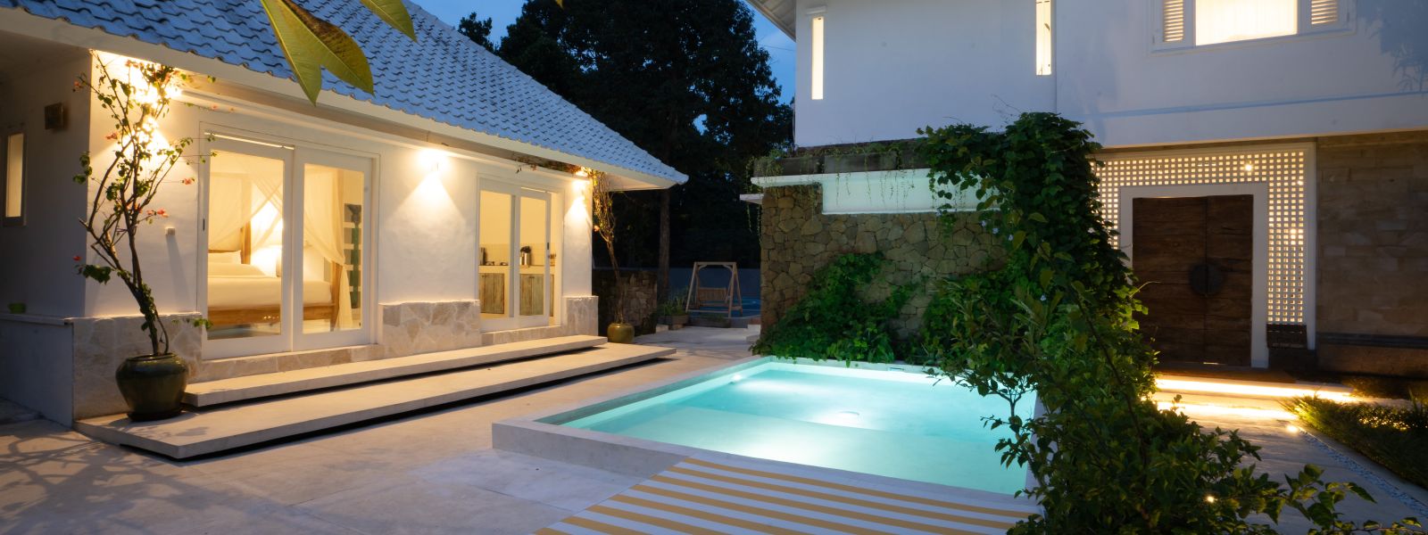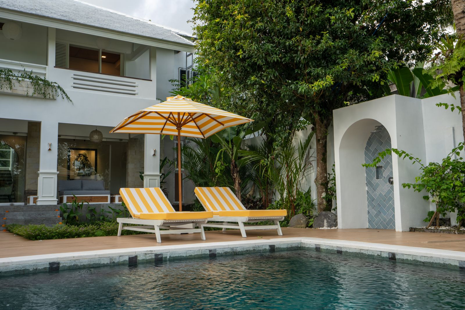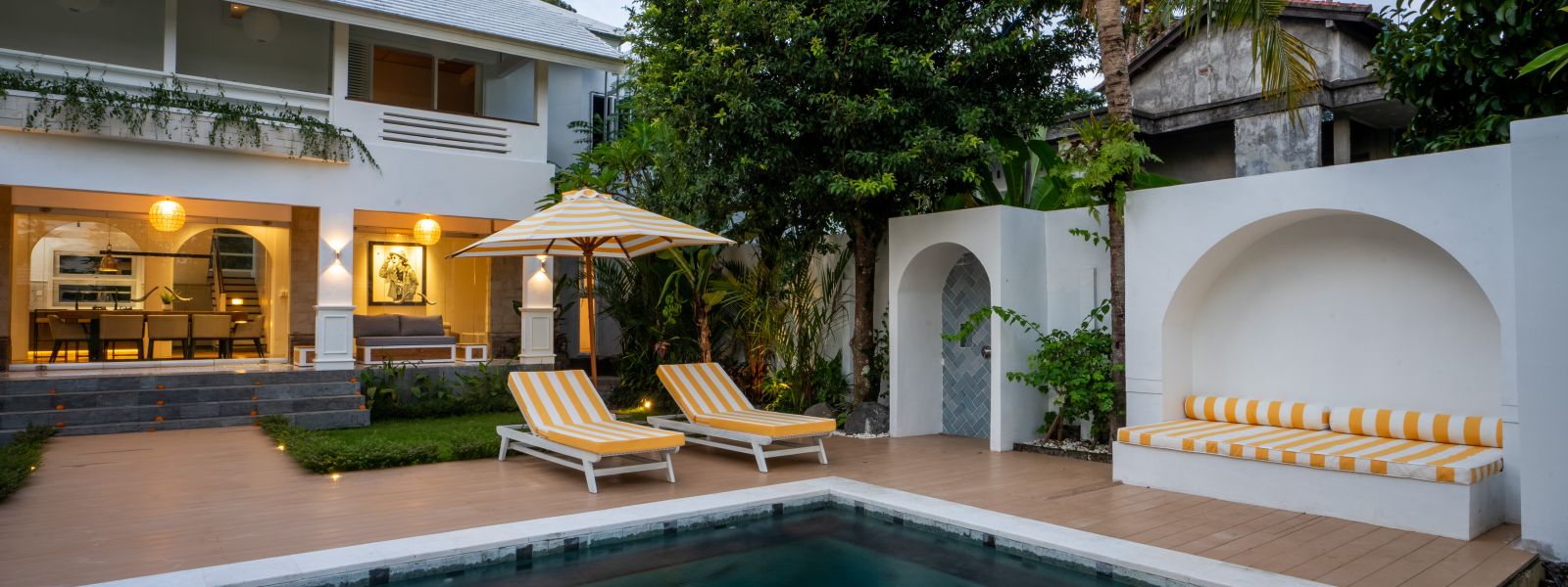 Designed for both comfort and entertaining, the villa includes an elegant living and dining area, a fully equipped kitchen, and two swimming pools, one family-friendly and one overlooking lush rice field views. Additional features such as a private spa room, gym, and basketball court complete the lifestyle experience.