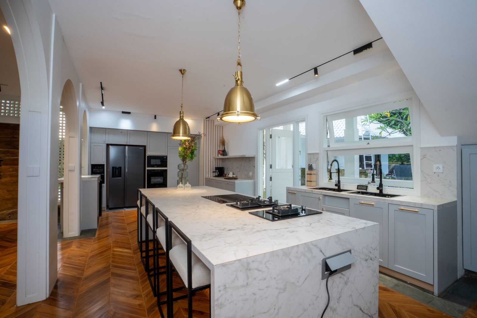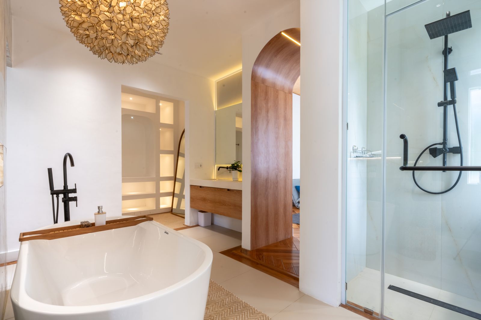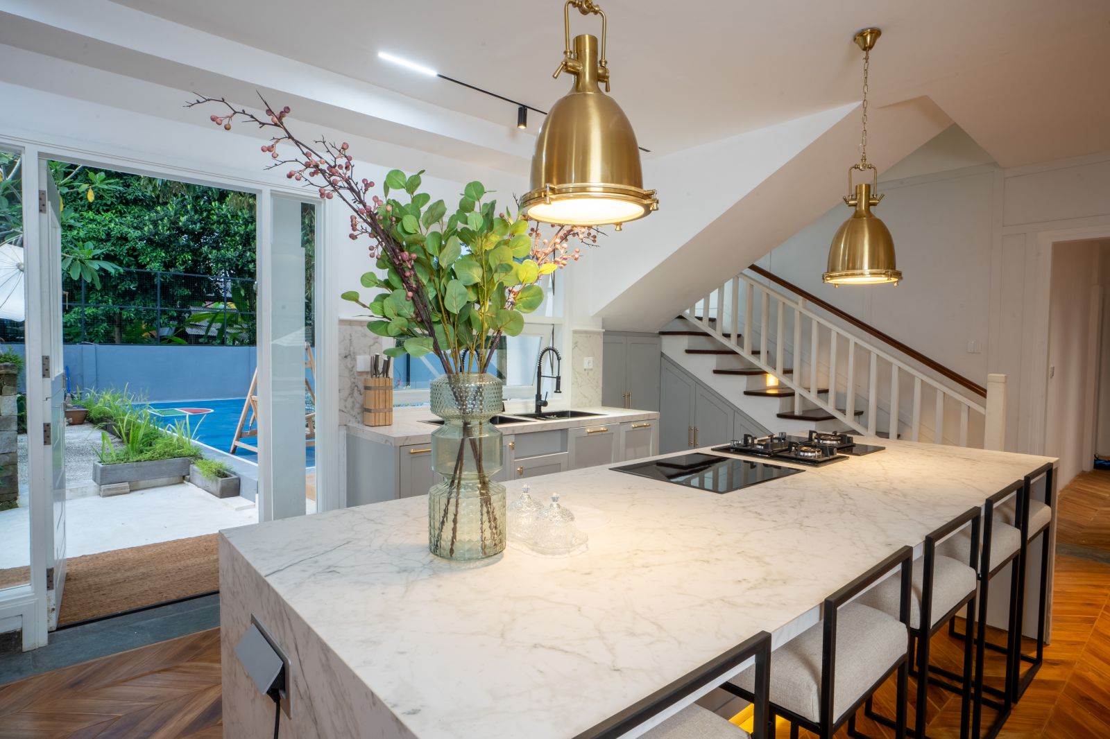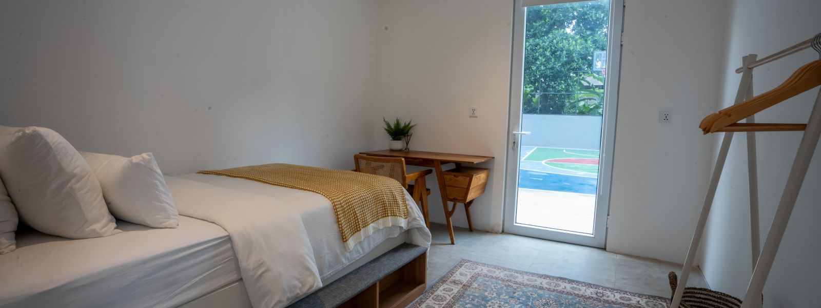 Designed for both comfort and entertaining, the villa includes an elegant living and dining area, a fully equipped kitchen, and two swimming pools, one family-friendly and one overlooking lush rice field views. Additional features such as a private spa room, gym, and basketball court complete the lifestyle experience.