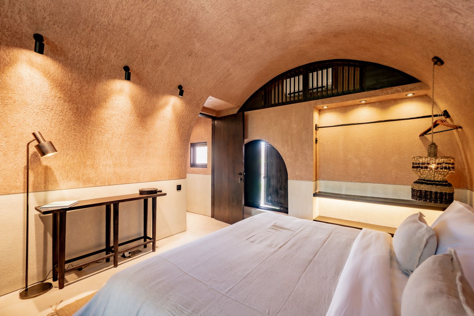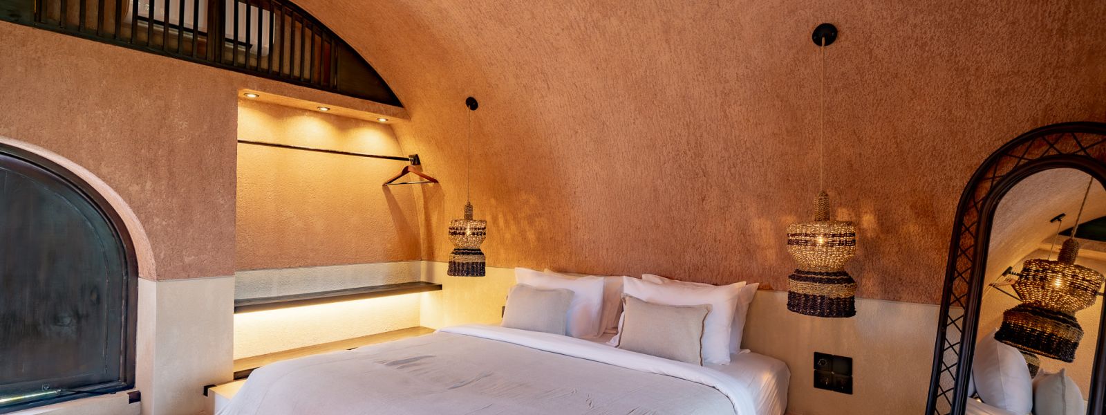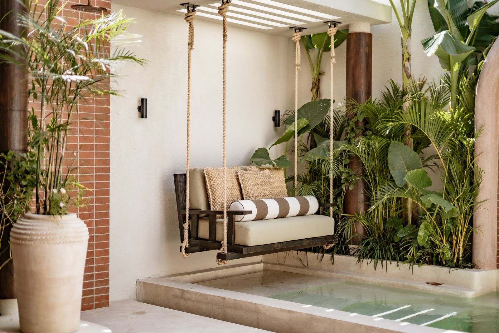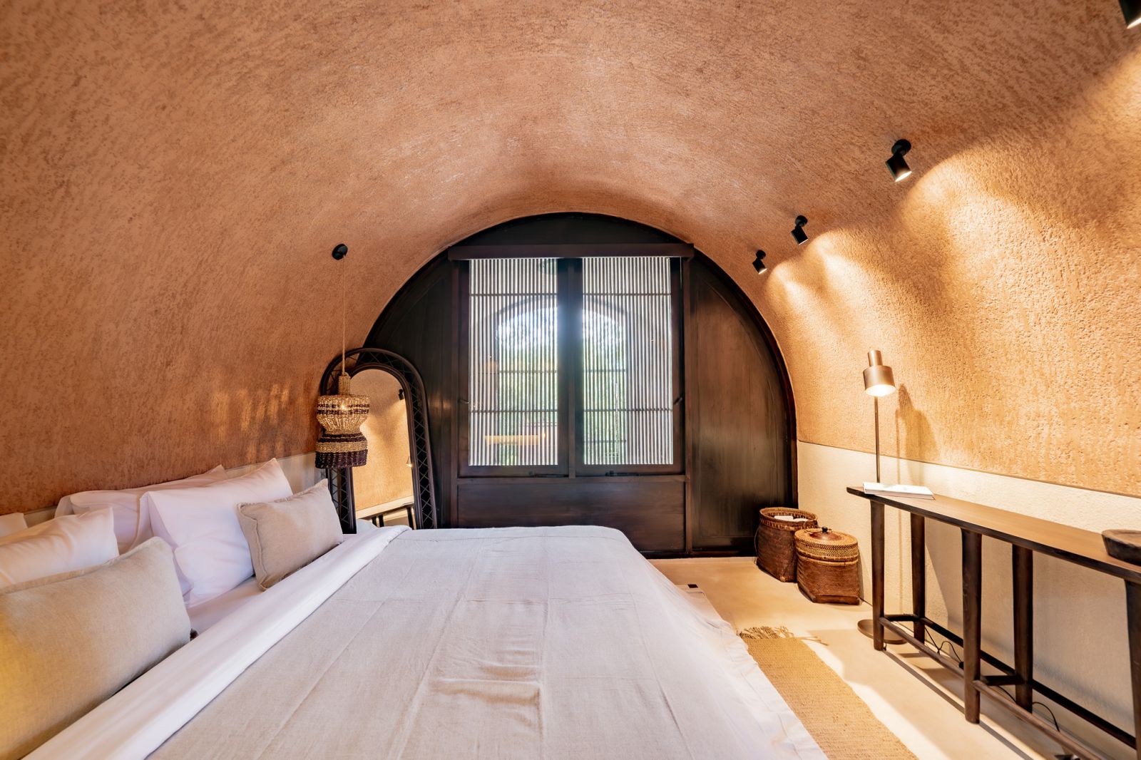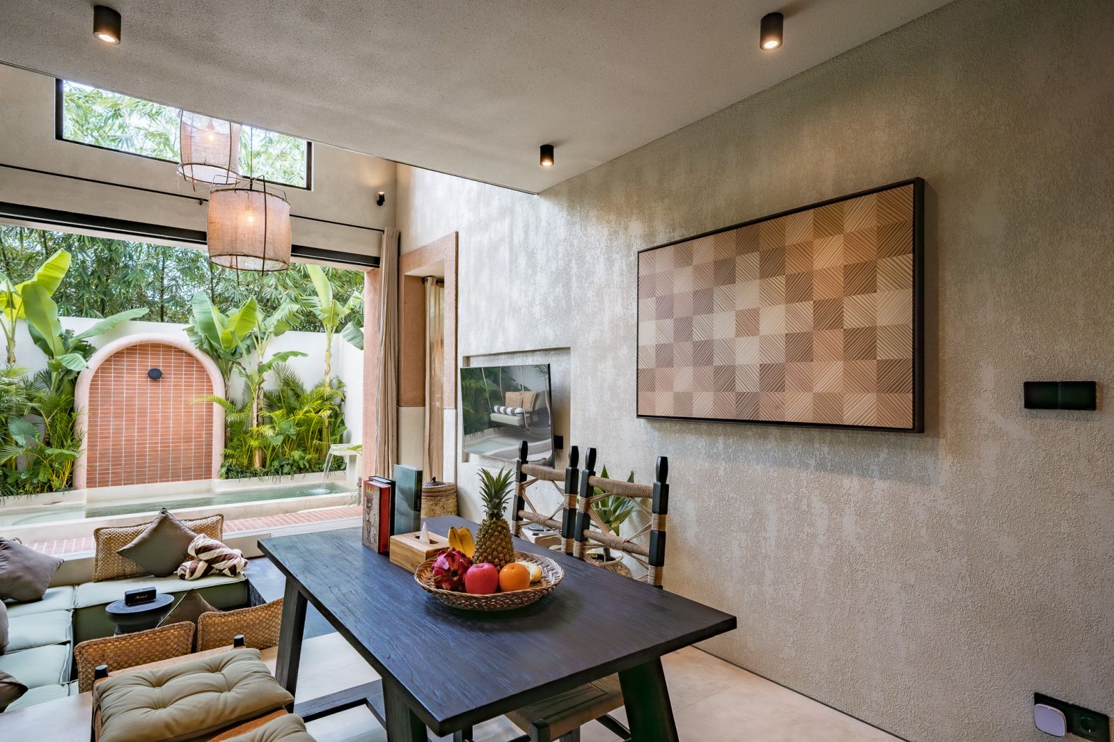 Designed in an Organic Mediterranean style, the loft showcases soft curves, earthy textures, and a calming tropical ambiance throughout. Inside, the space features 1 cozy bedroom, 1 stylish bathroom with a double rain shower, and a thoughtfully arranged kitchen, dining, and enclosed living area that flows seamlessly toward the swimming pool.