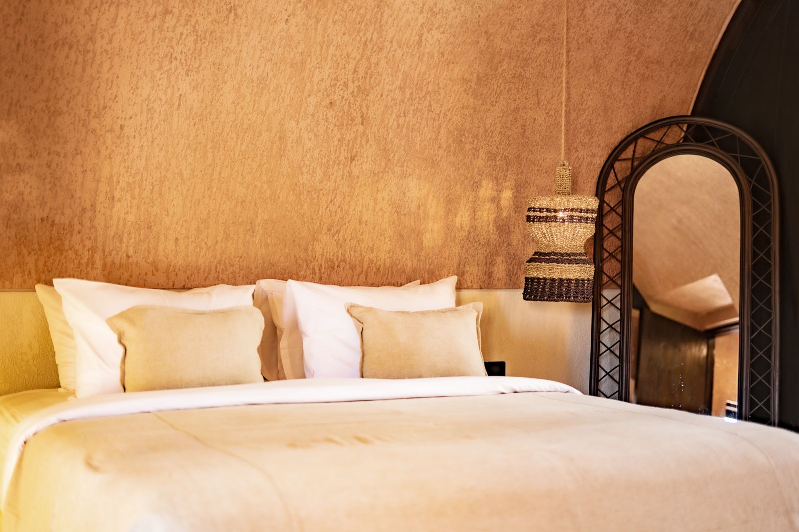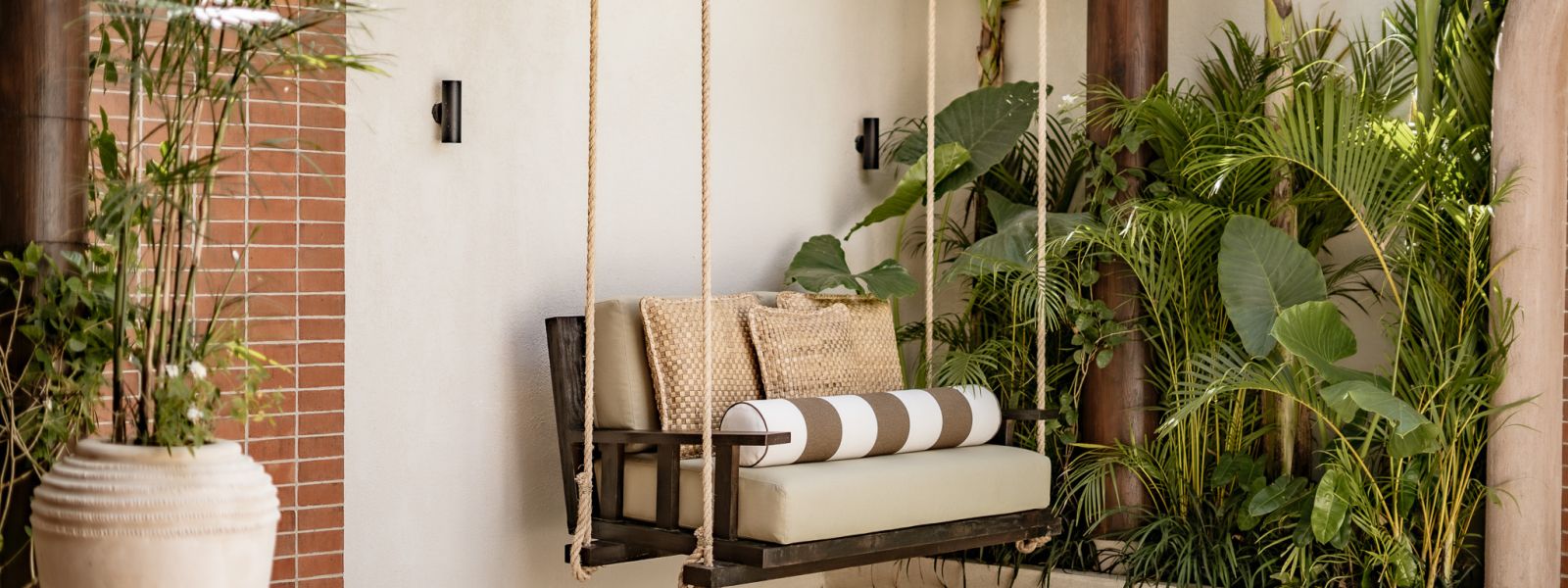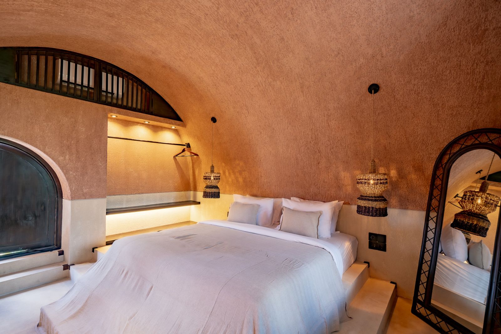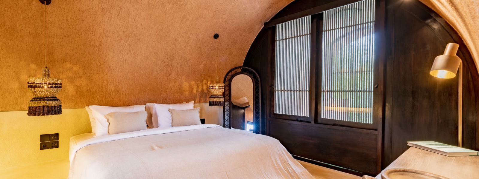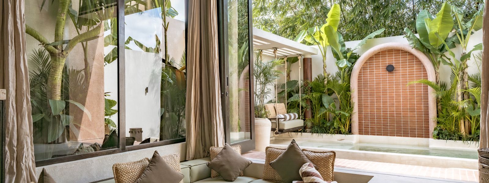 Designed in an Organic Mediterranean style, the loft showcases soft curves, earthy textures, and a calming tropical ambiance throughout. Inside, the space features 1 cozy bedroom, 1 stylish bathroom with a double rain shower, and a thoughtfully arranged kitchen, dining, and enclosed living area that flows seamlessly toward the swimming pool.