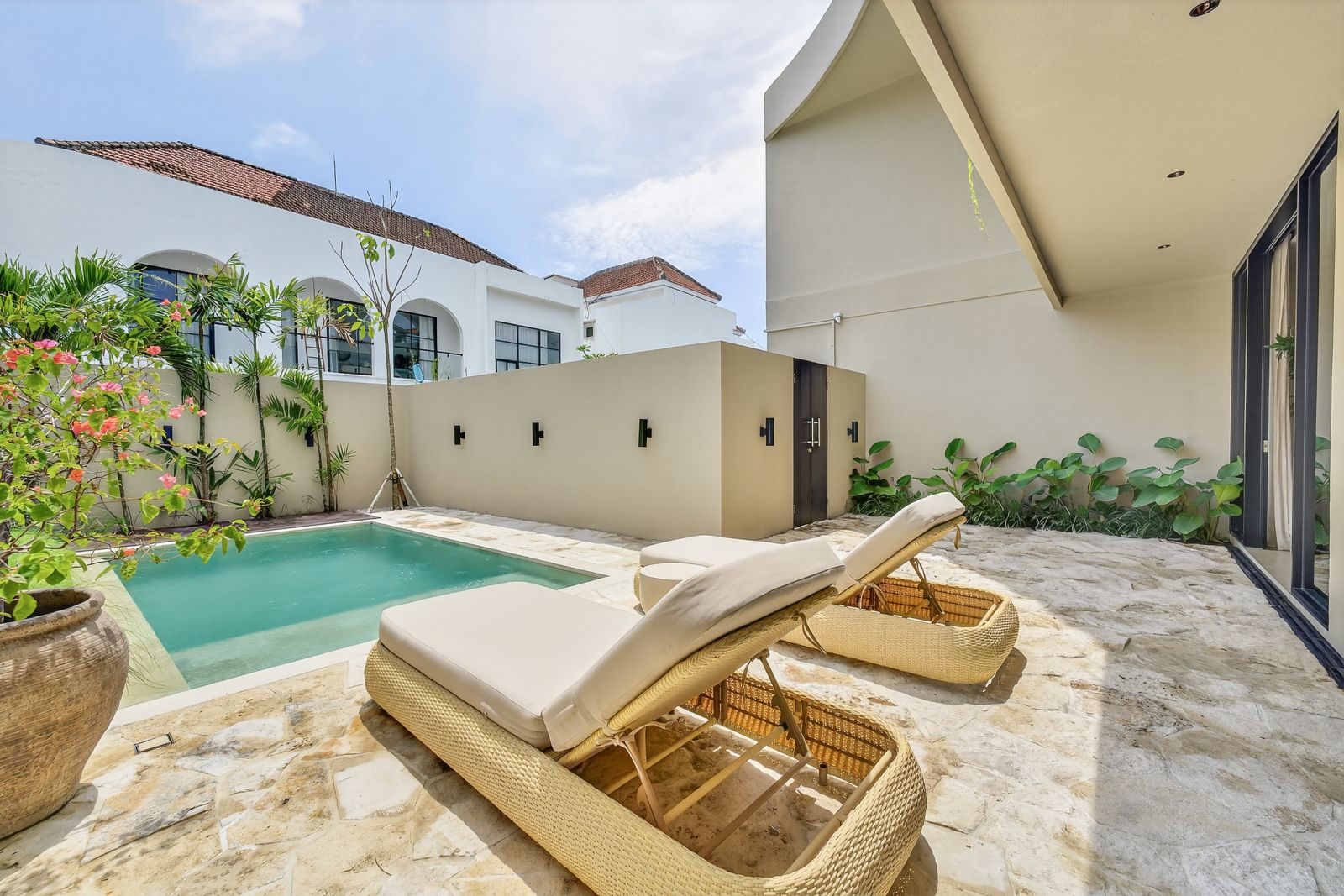 Located in a serene private neighborhood of Padonan. It takes only a 10-minute drive to the Pererenan dan Batu Bolong beach and 5 minutes to Jalan Raya Canggu & Jalan Pantai Berawa.