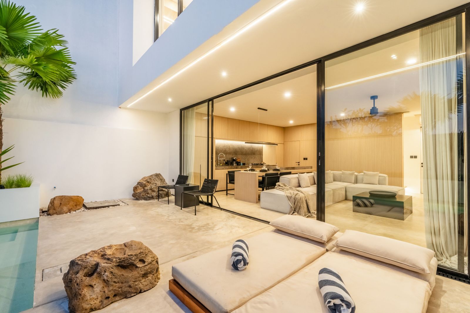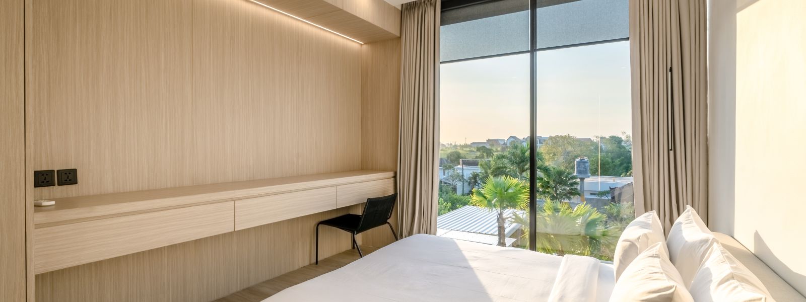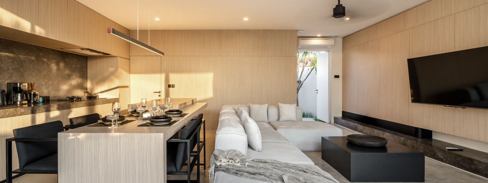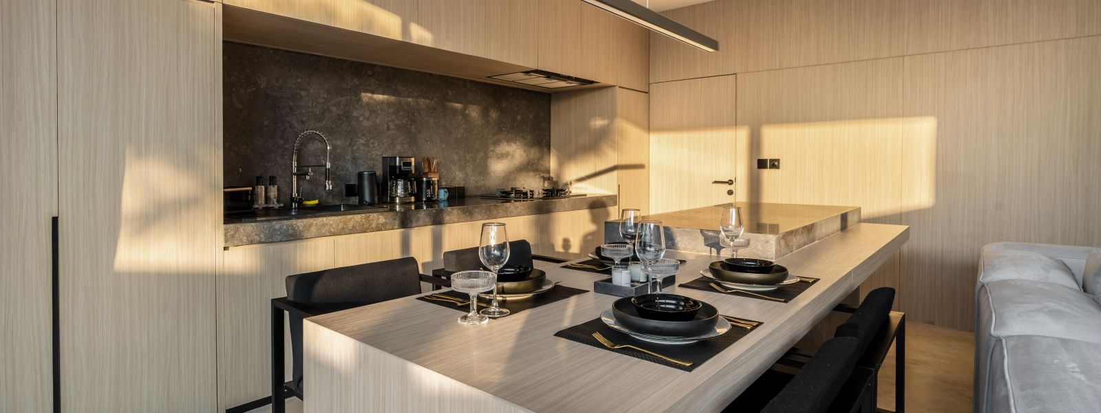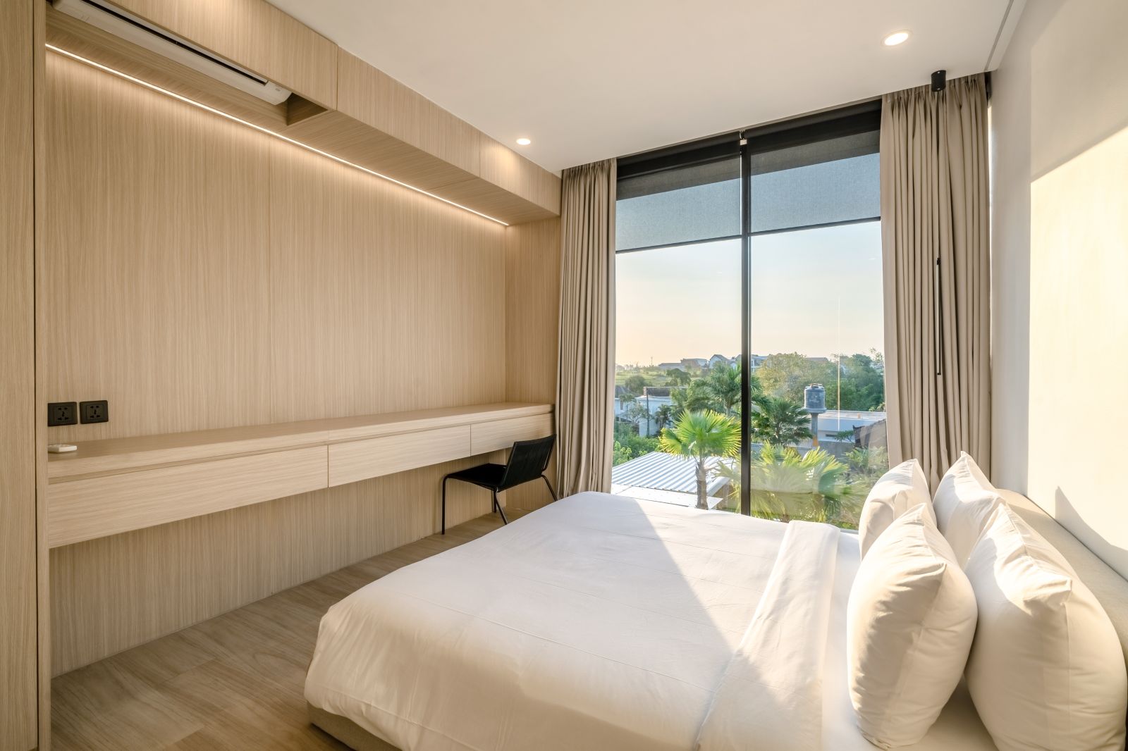 This property offers a neutral, modern decor that embodies a minimalist aesthetic. Its design is ideal for individuals seeking to express themselves stylishly without the clutter of superfluous details. These minimalist dwellings demonstrate how a homey atmosphere can be achieved through a thoughtful selection of quality contemporary furniture instead of an extensive collection.