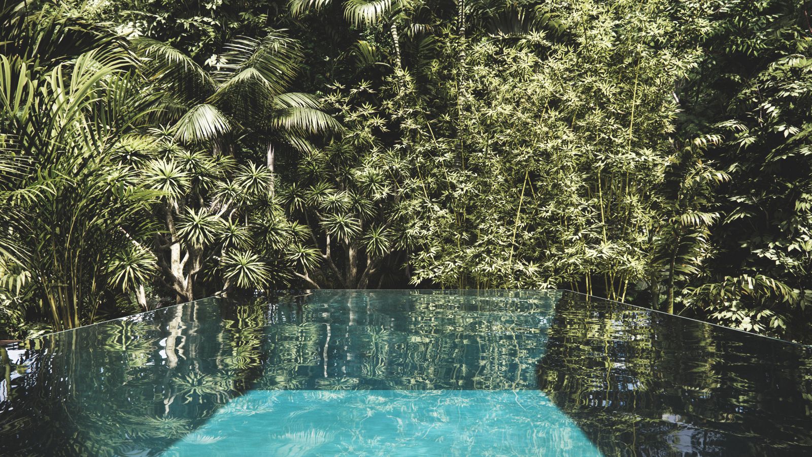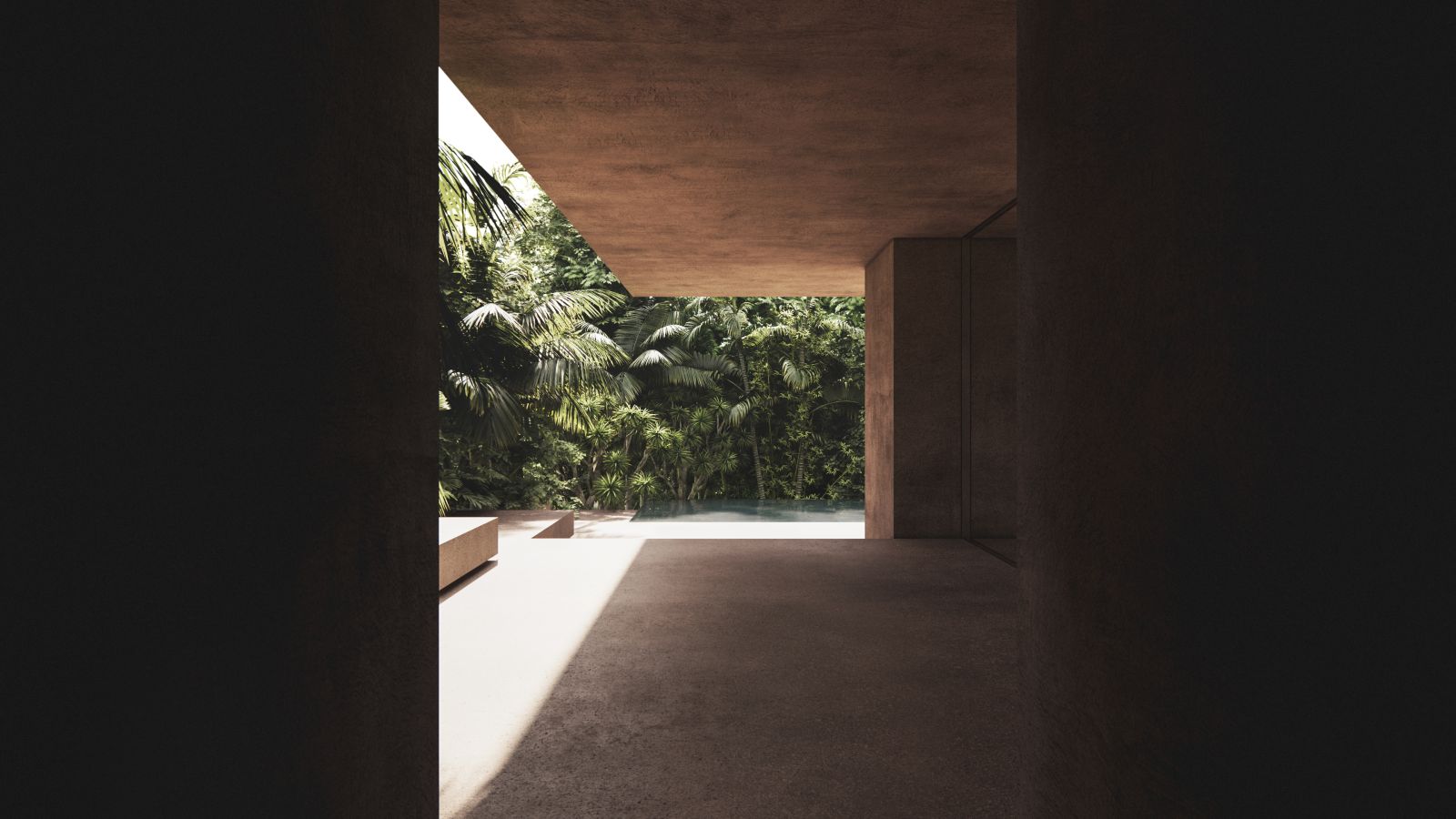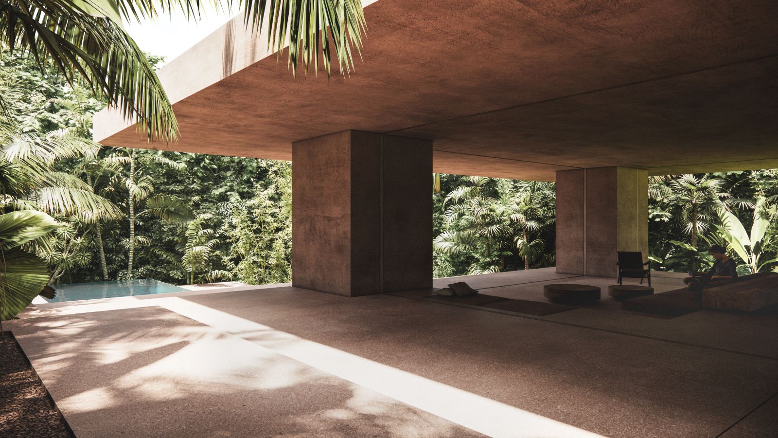 The house embodies the Balinese lifestyle with innovative sliding doors that seamlessly integrate with the walls, providing both climate control and a direct link to the surrounding landscape. The ground floor is designed for socializing and follows the slope of the land, while the upper levels have a taller design to minimize impact on the existing vegetation. This creates open and connected living spaces that blend with the landscape, while the bedrooms offer carefully framed views of the surroundings. Using earthy-toned render externally and internally exudes a timeless allure, complementing the understated yet sophisticated architectural lines. The cementitious flooring in earthy tones adds a robust and organic touch while incorporating natural timber inbuilt joinery completes the material palette. The house integrates into the lush vegetation and stands out as an intriguing abstract structure.