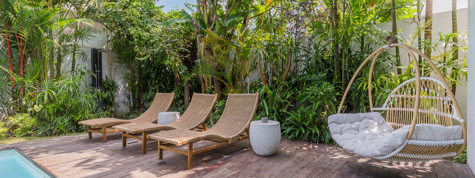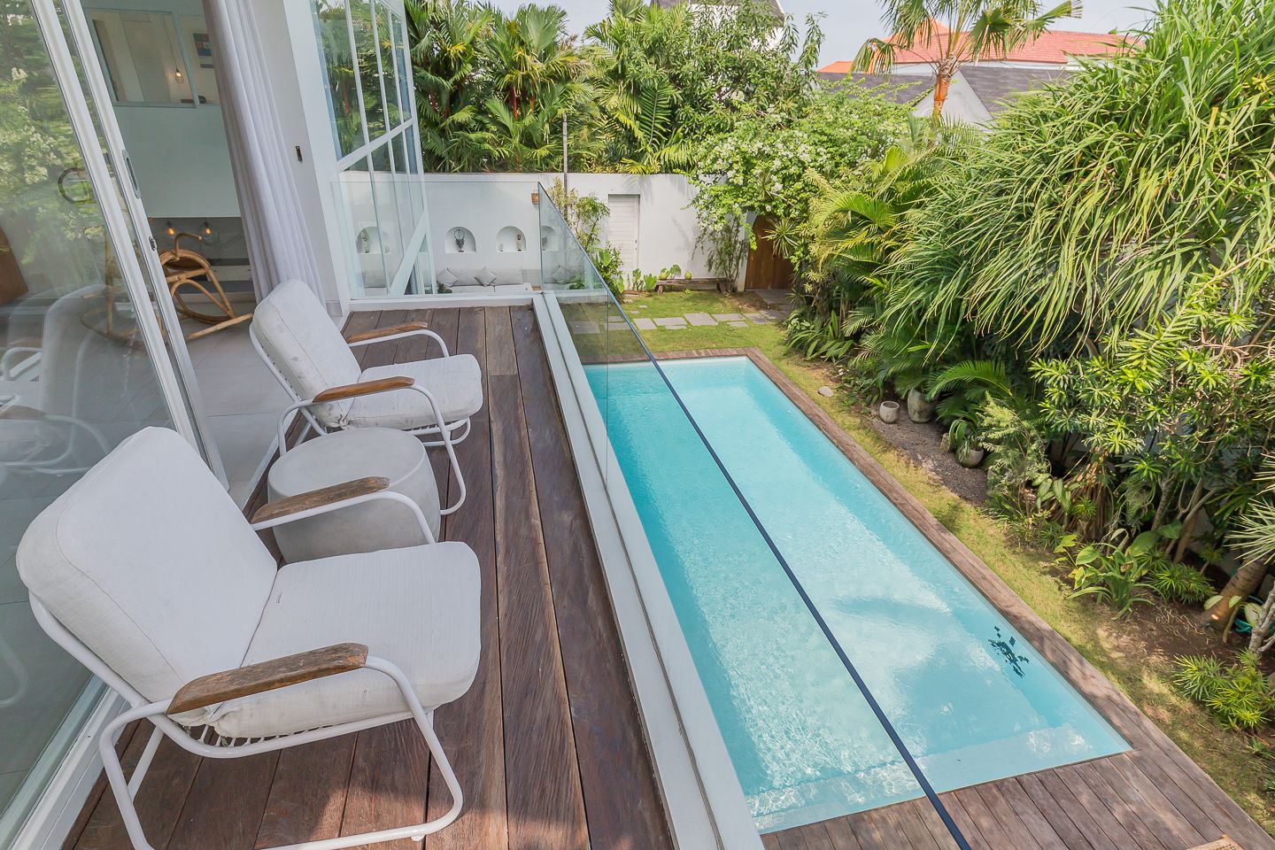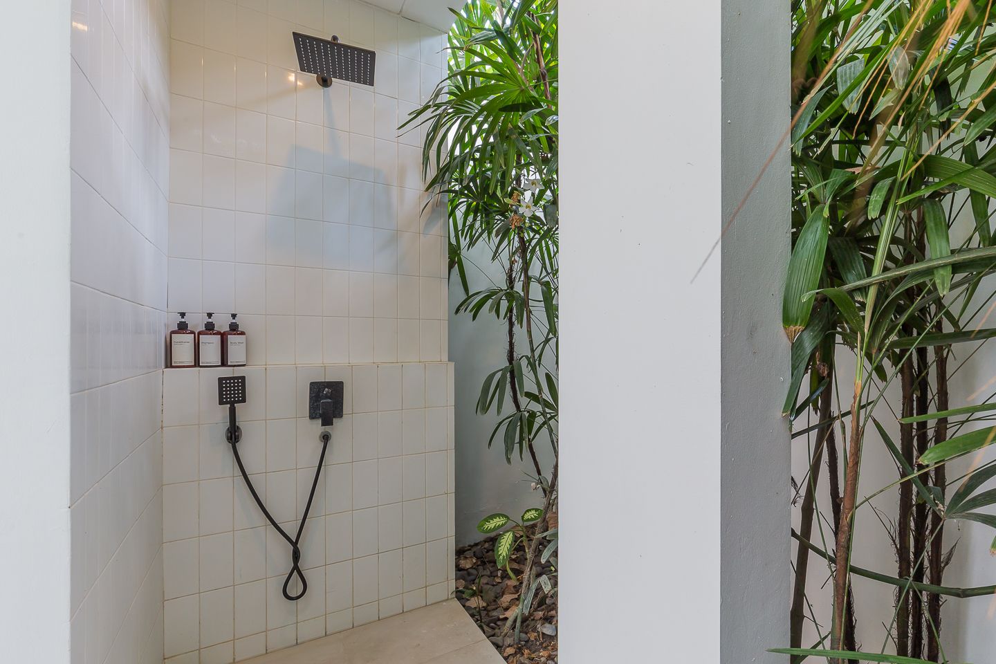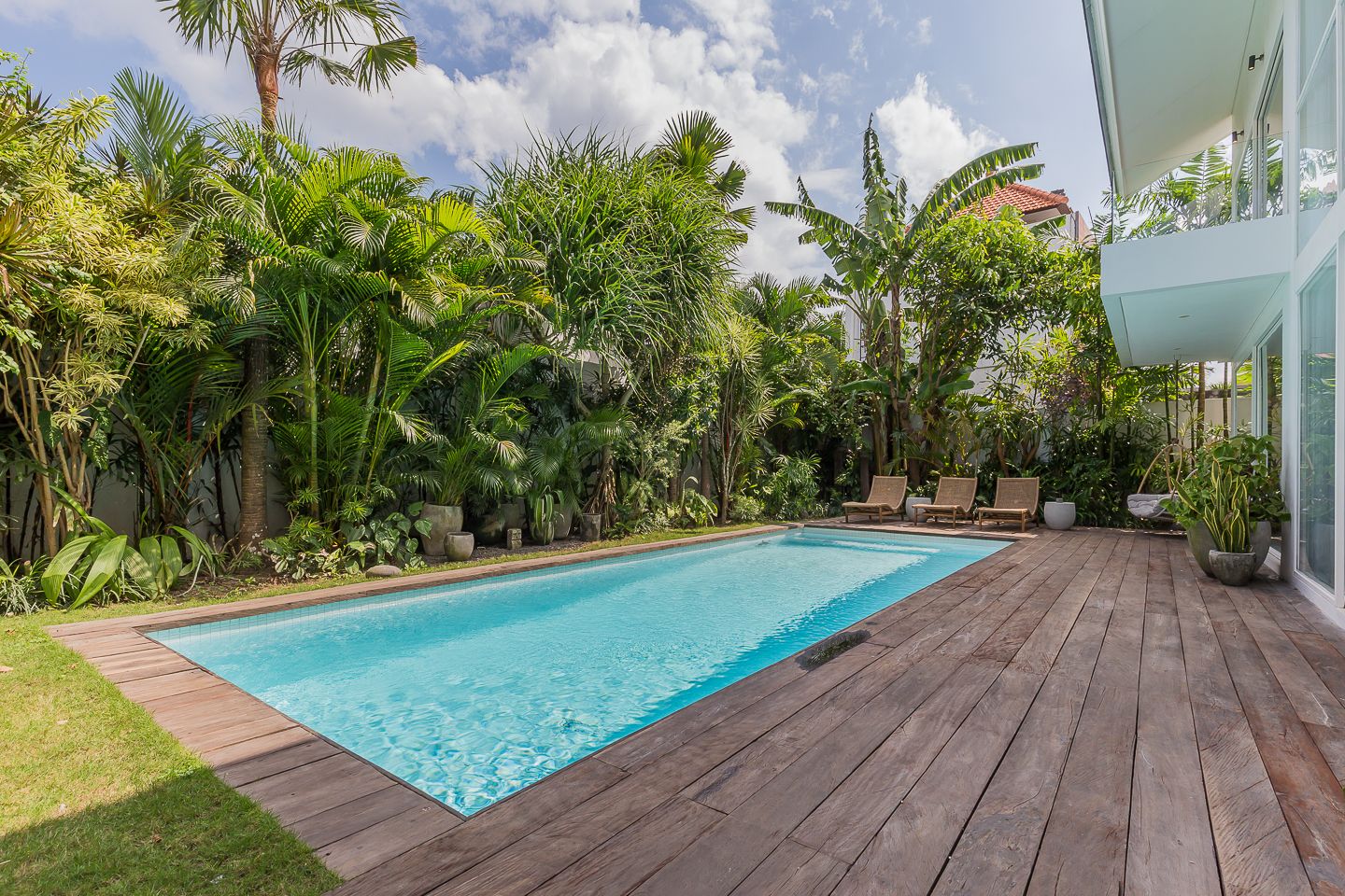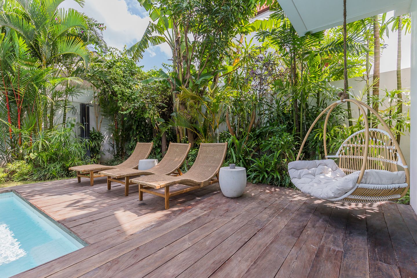 Relax and unwind in the 9-meter long and 3.5-meter wide swimming pool, with sun loungers and an outdoor sofa. Or, stroll through the luxurious tropical garden, which features different kinds of palm trees, a bougainvillea, and even a mango tree.