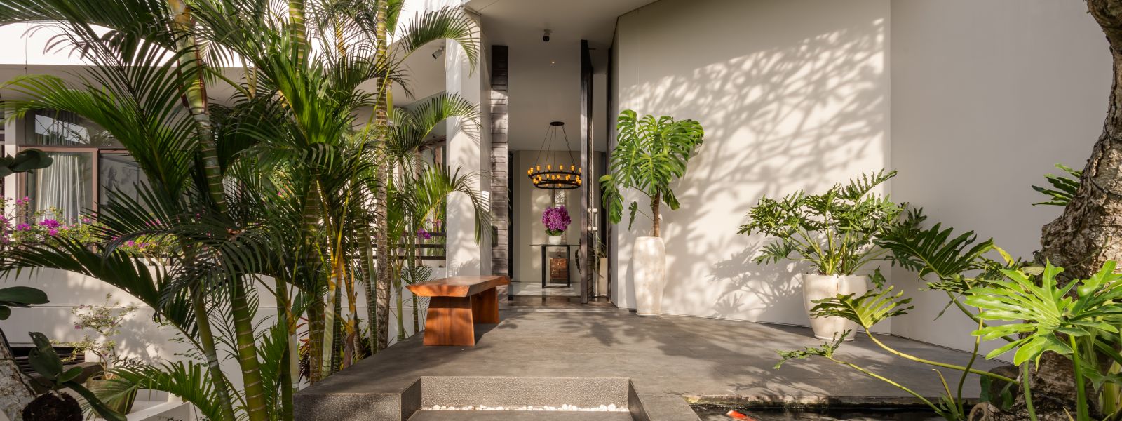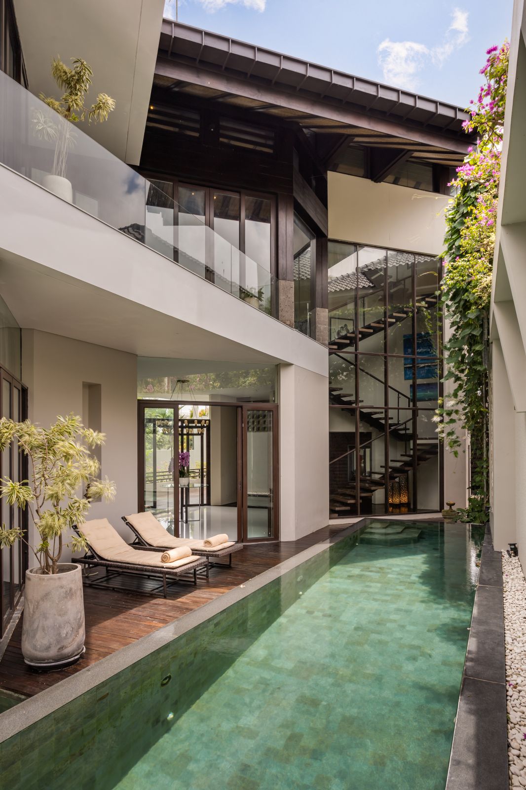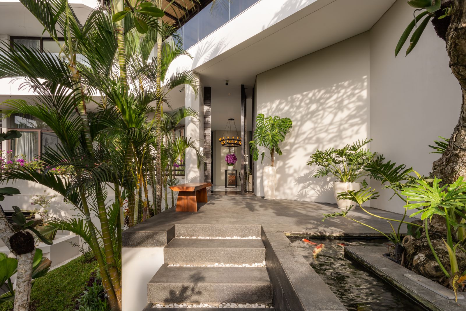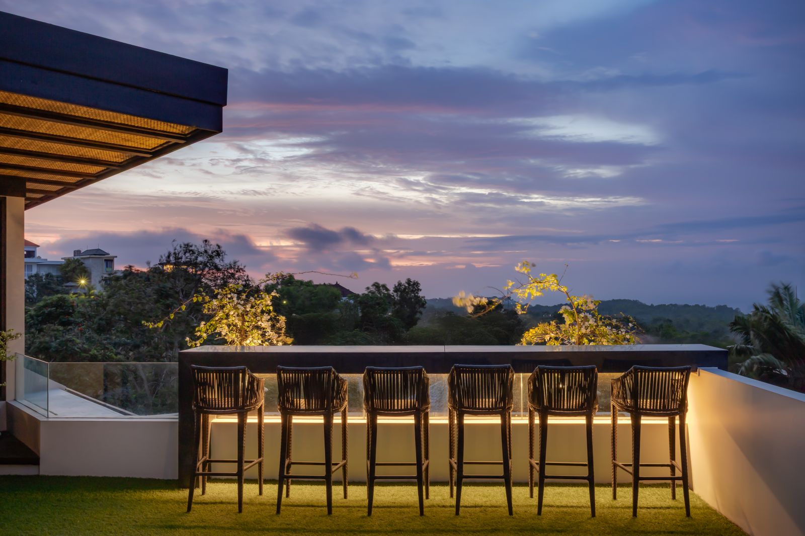 Nestled in an exclusive compound in Pecatu with a golf course, this stunning villa blends contemporary Balinese architecture with a resort-style ambiance. Designed by A2Kreasitama, the home takes inspiration from its triangular land, resulting in a striking octagonal foyer as its central focal point. Elevated positioning and clever design maximize natural airflow, keeping the villa cool and breezy.