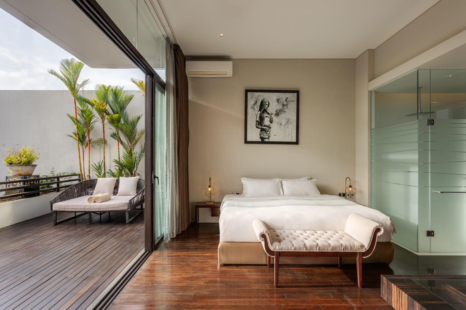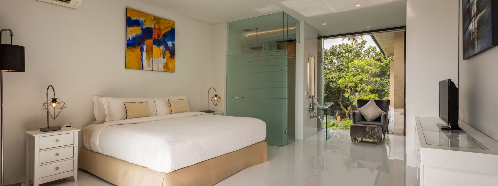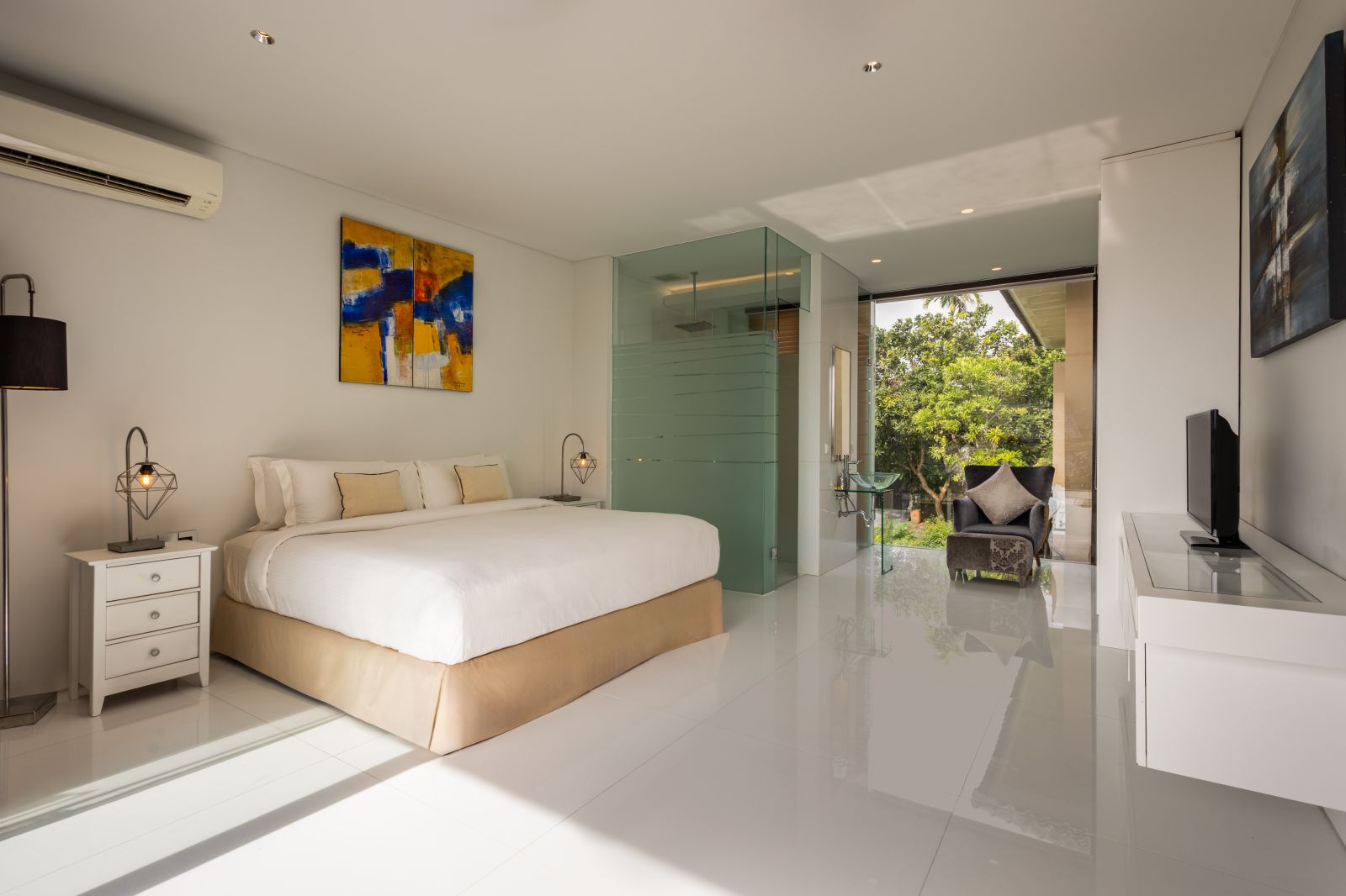Above, the attic serves as a cozy retreat leading to the rooftop terrace with breathtaking views of Jimbaran Bay. A hidden lower ground houses the service area, laundry, and garage, ensuring functionality without compromising style. This villa is a perfect harmony of thoughtful design, natural elegance, and resort comfort.