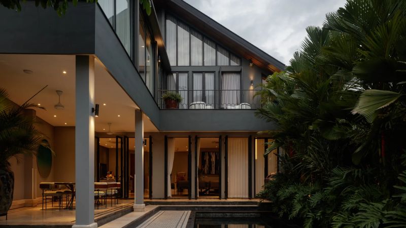 Upon entering, you'll find an open-air living area that connects you with nature. The air-conditioned kitchen and dining area are adjacent to the outdoor living. The design combines Coastal elements with modern comforts, allowing natural light to flow in. The enclosed living areas feature a fully-equipped kitchen, a rectangular dining table for 8, and a cozy entertainment area. Air conditioning and ceiling fans ensure comfort throughout. Outside, the pool area includes lounge seating and an alfresco living space with ceiling fans. The garden is small yet convenient, making this villa an ideal relaxing holiday retreat, including massages or yoga sessions outdoors.