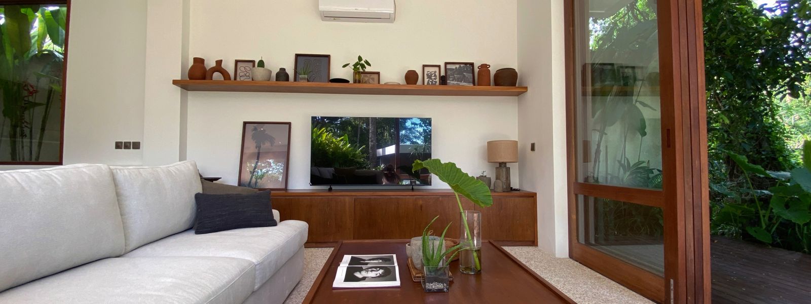 This five-bedroom riverfront villa represents a rare opportunity to secure a substantial family estate in a truly private setting. Positioned at the end of a quiet enclave in Kaba-Kaba, the property overlooks a lush riverbank, framed by towering bamboo that creates a natural screen and a profound sense of seclusion.