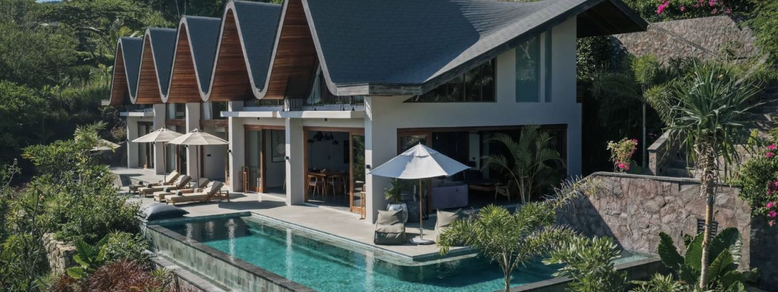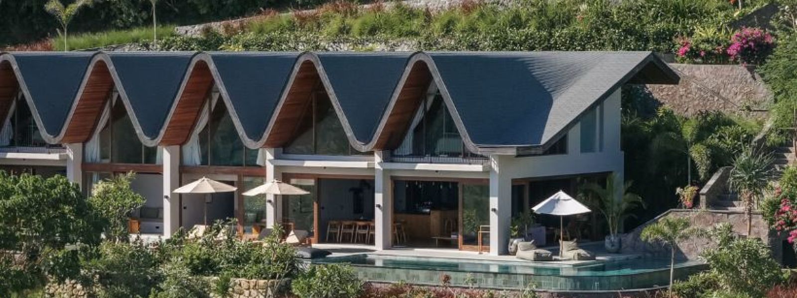 An extravagance private sanctuary located on a 1700 sqm plot in Tampah Hills, this property features a distinctive architectural design inspired by smooth waves, contributing to a surf-inspired aesthetic. It is designed to accommodate creative minds, families, and groups seeking a unique tropical experience.
