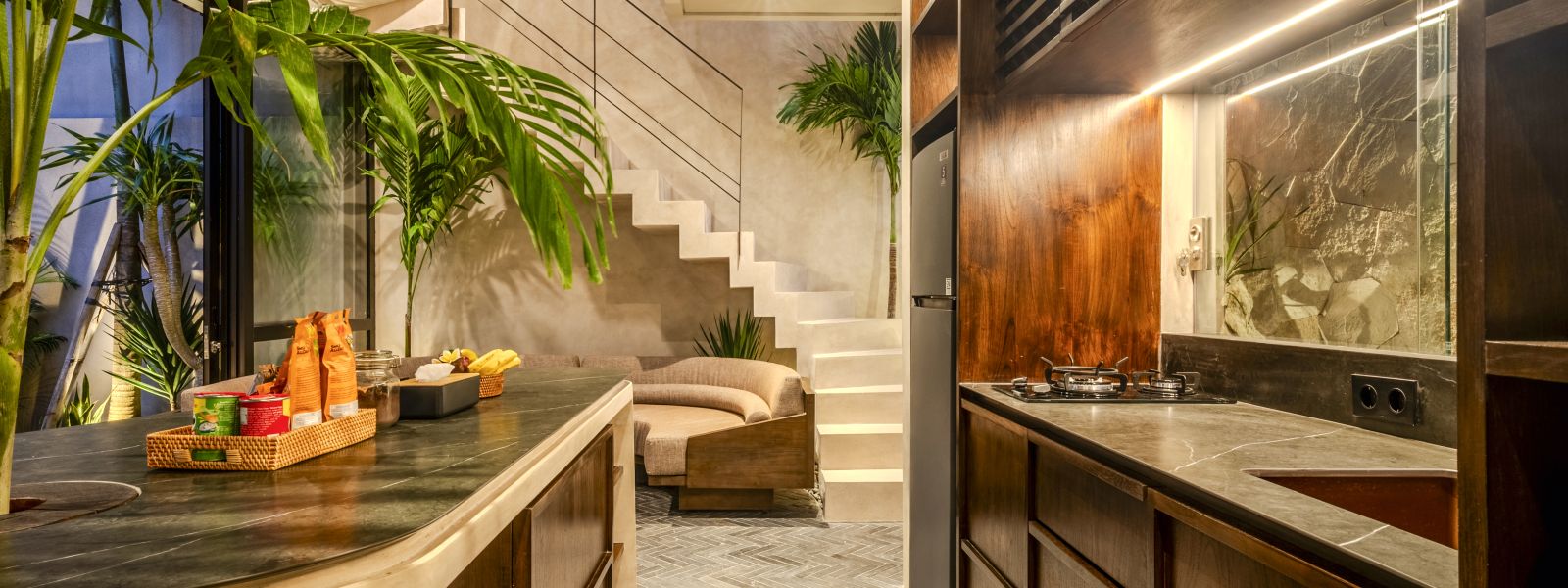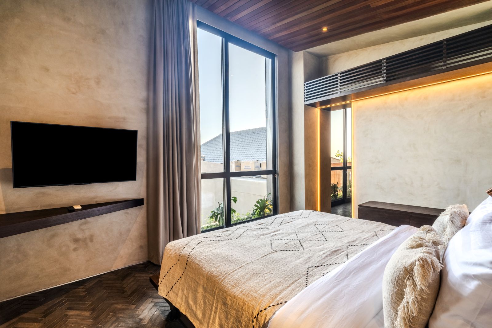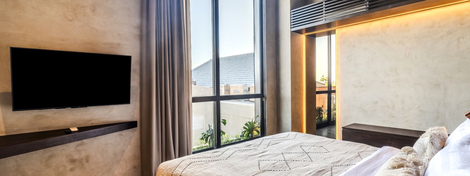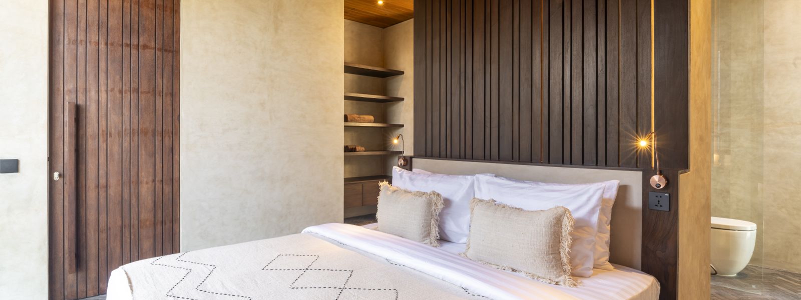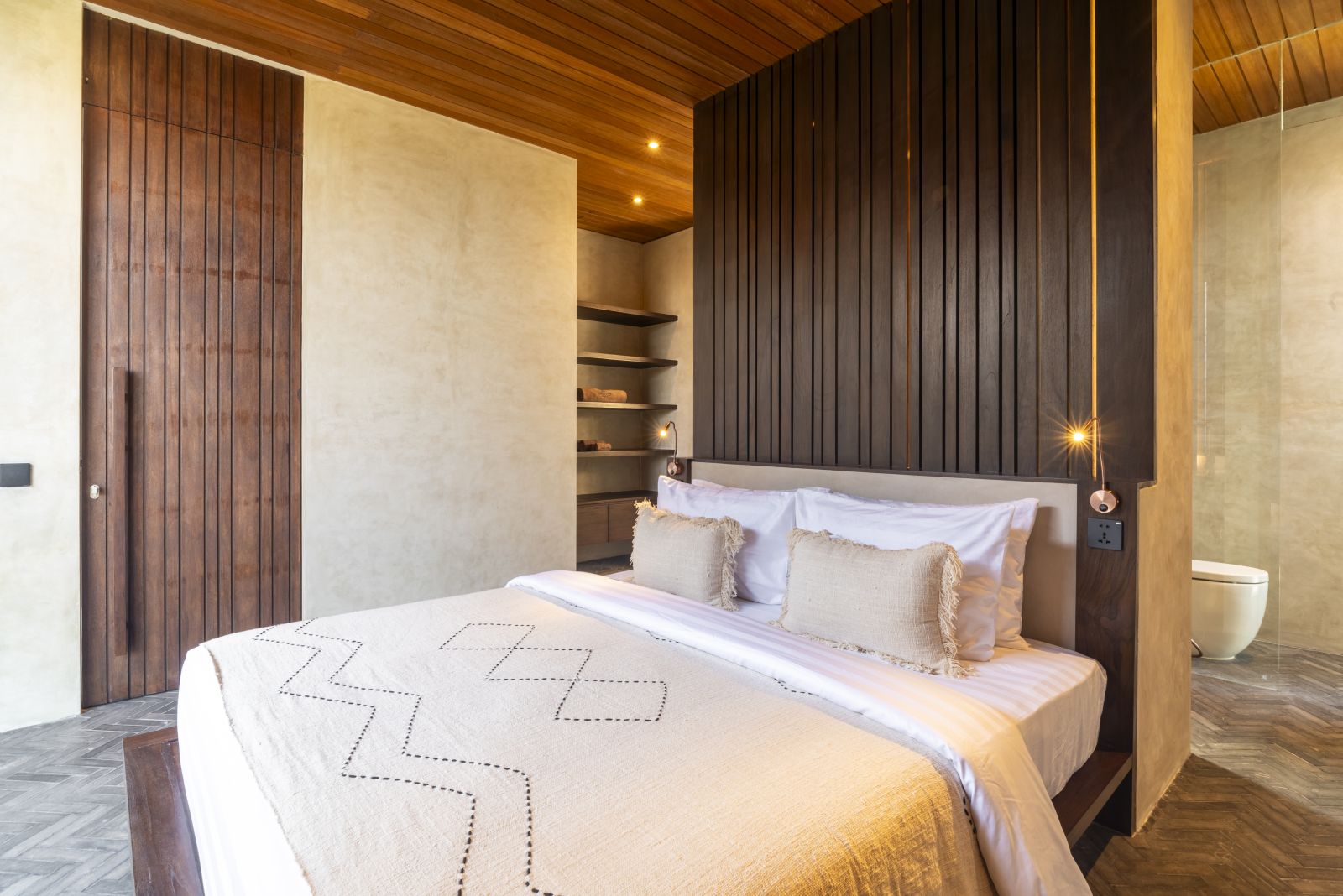The villa features two spacious ensuite bedrooms located on the upper level, design is to aim a peaceful, private, and comfortable experience downsizing.