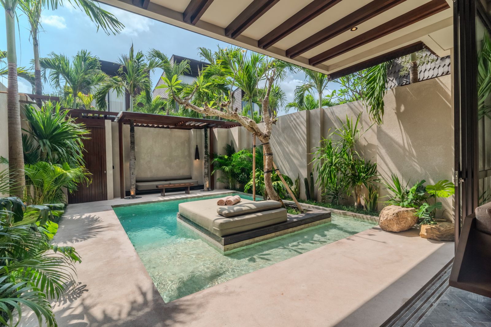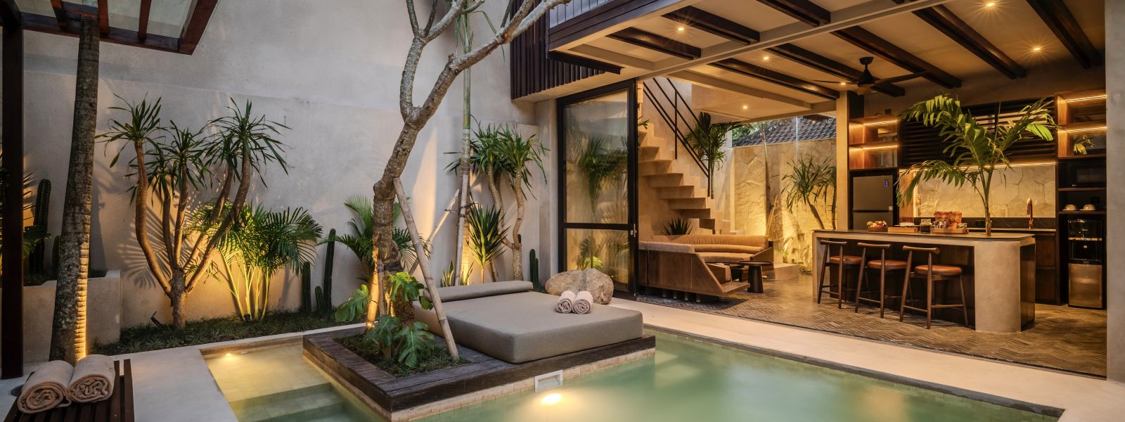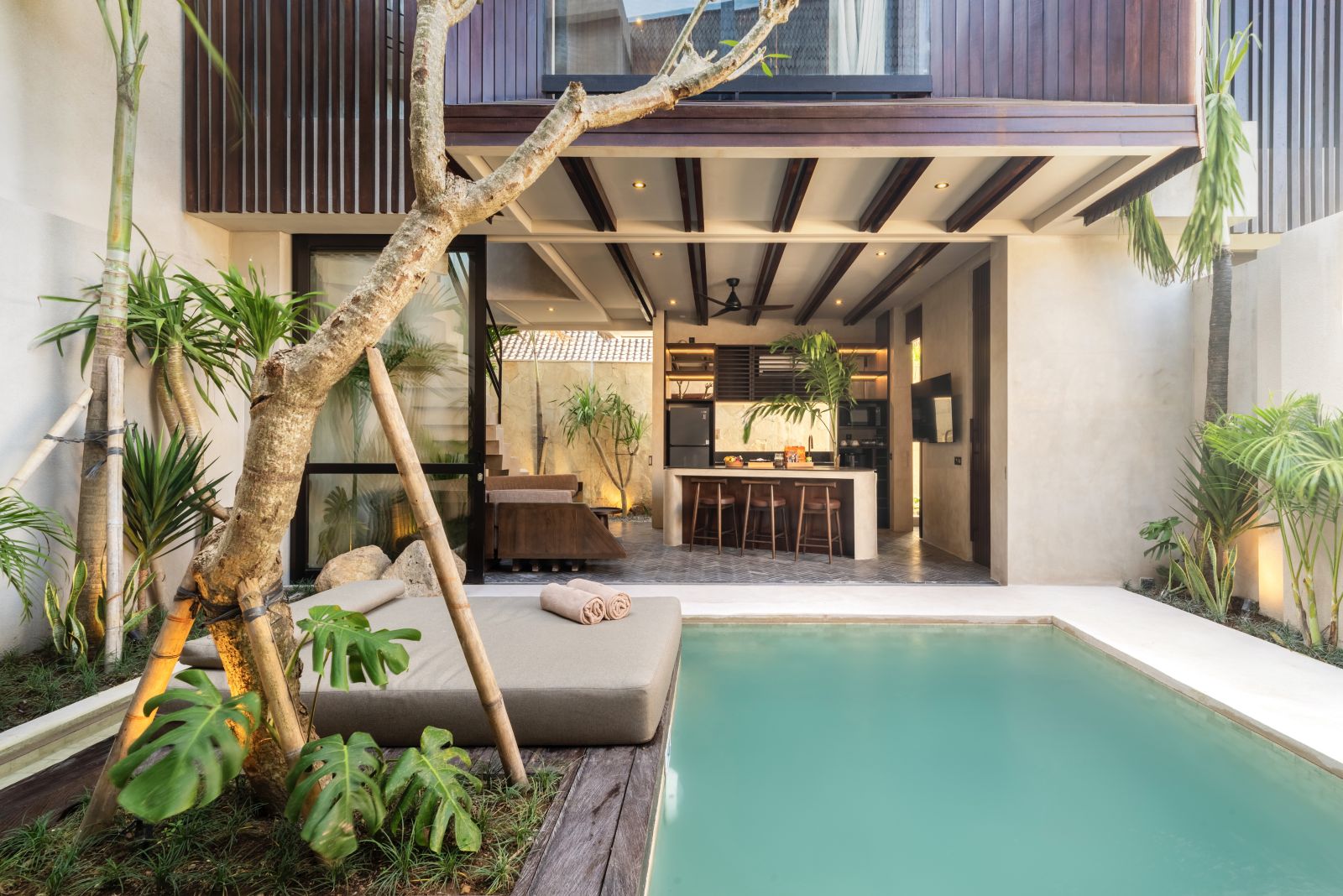 Designed with a contemporary tropical approach, the villa showcases a seamless blend of indoor and outdoor living. The open-plan layout invites natural light throughout the space, connecting the living and dining areas effortlessly to a serene pool and landscaped garden, creating a calm and inviting atmosphere ideal for both relaxing and entertaining.