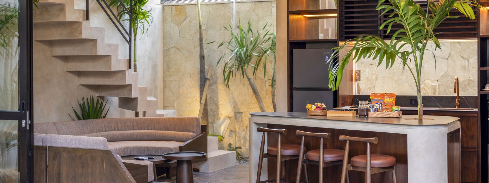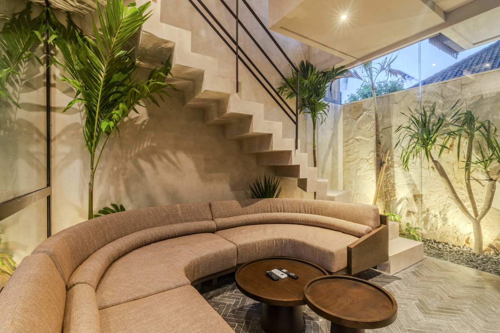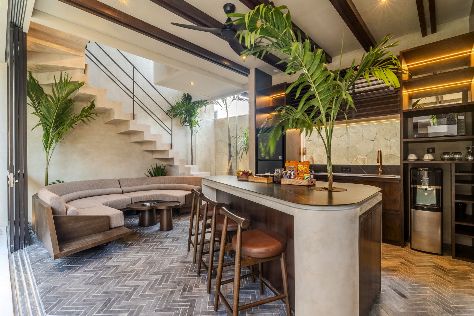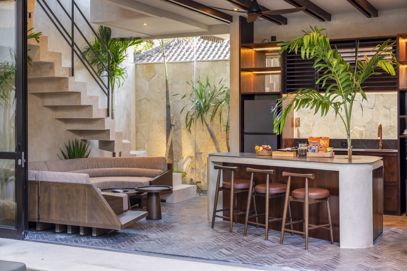 Designed with a contemporary tropical approach, the villa showcases a seamless blend of indoor and outdoor living. The open-plan layout invites natural light throughout the space, connecting the living and dining areas effortlessly to a serene pool and landscaped garden, creating a calm and inviting atmosphere ideal for both relaxing and entertaining.